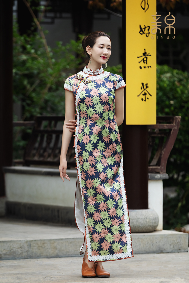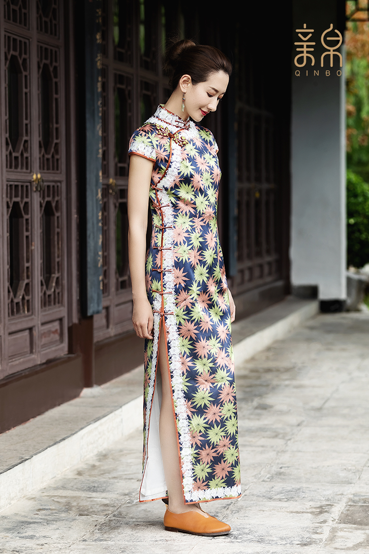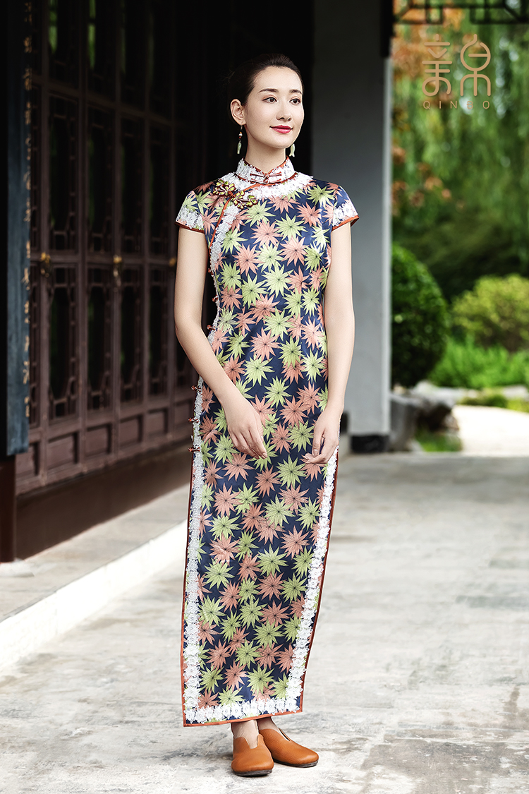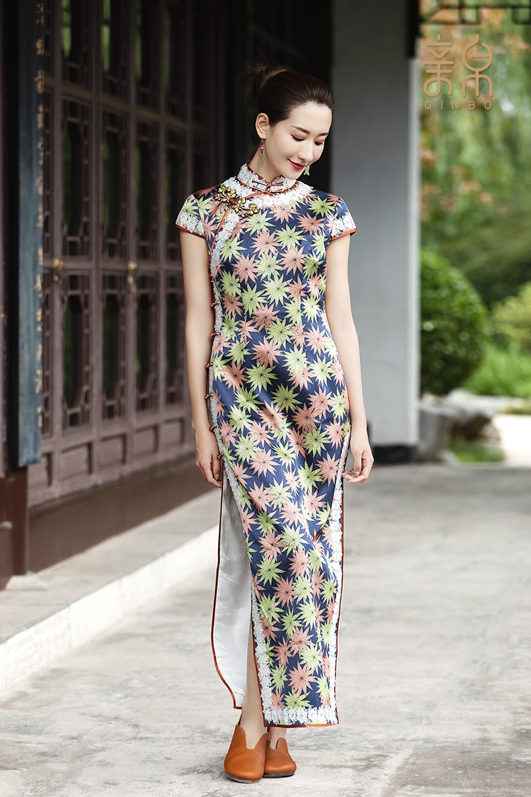 Asaya1466 - Handmade silk cheongsam mulberry silk satin long cheongsam dress