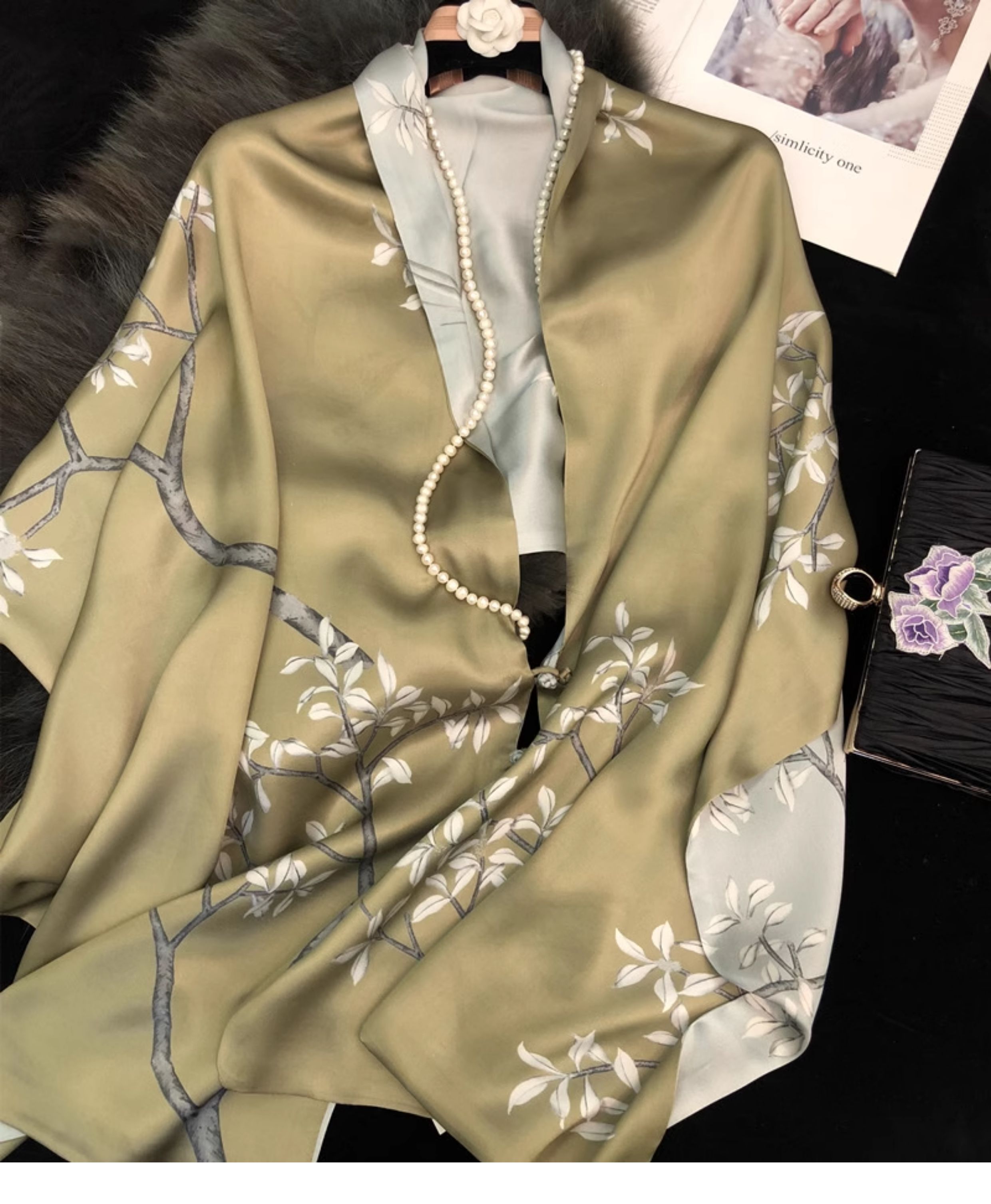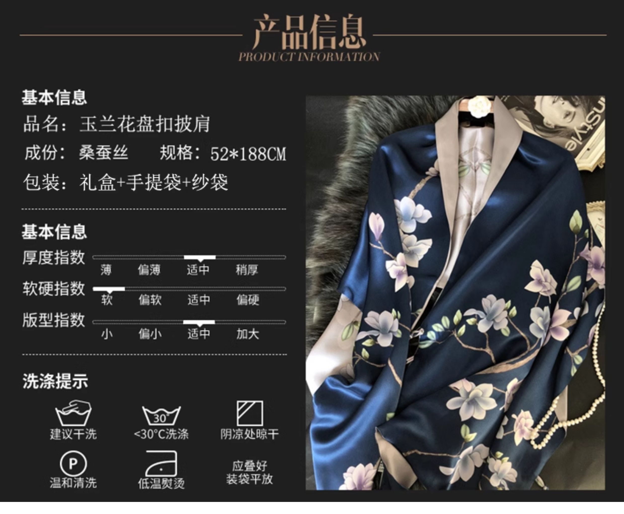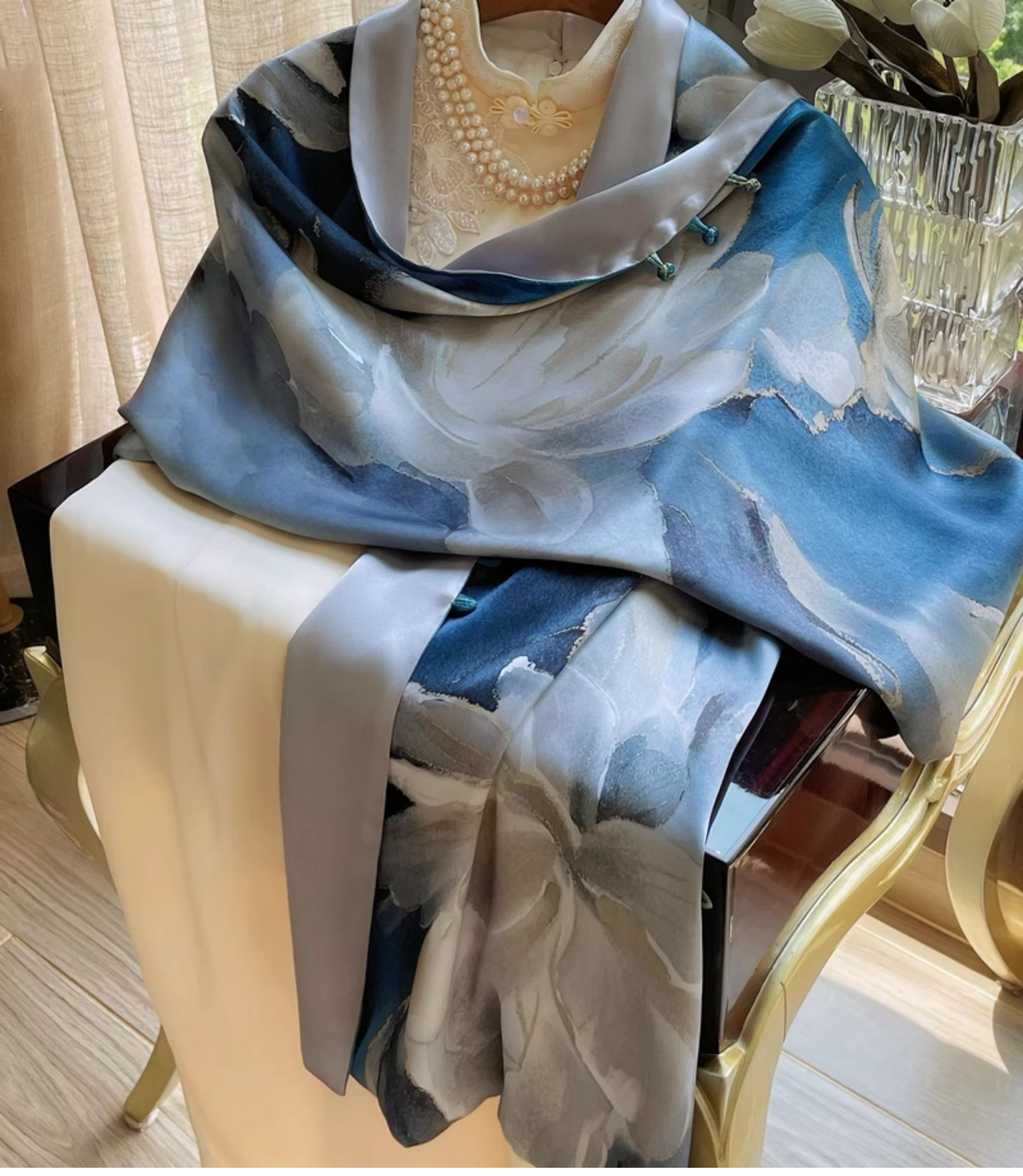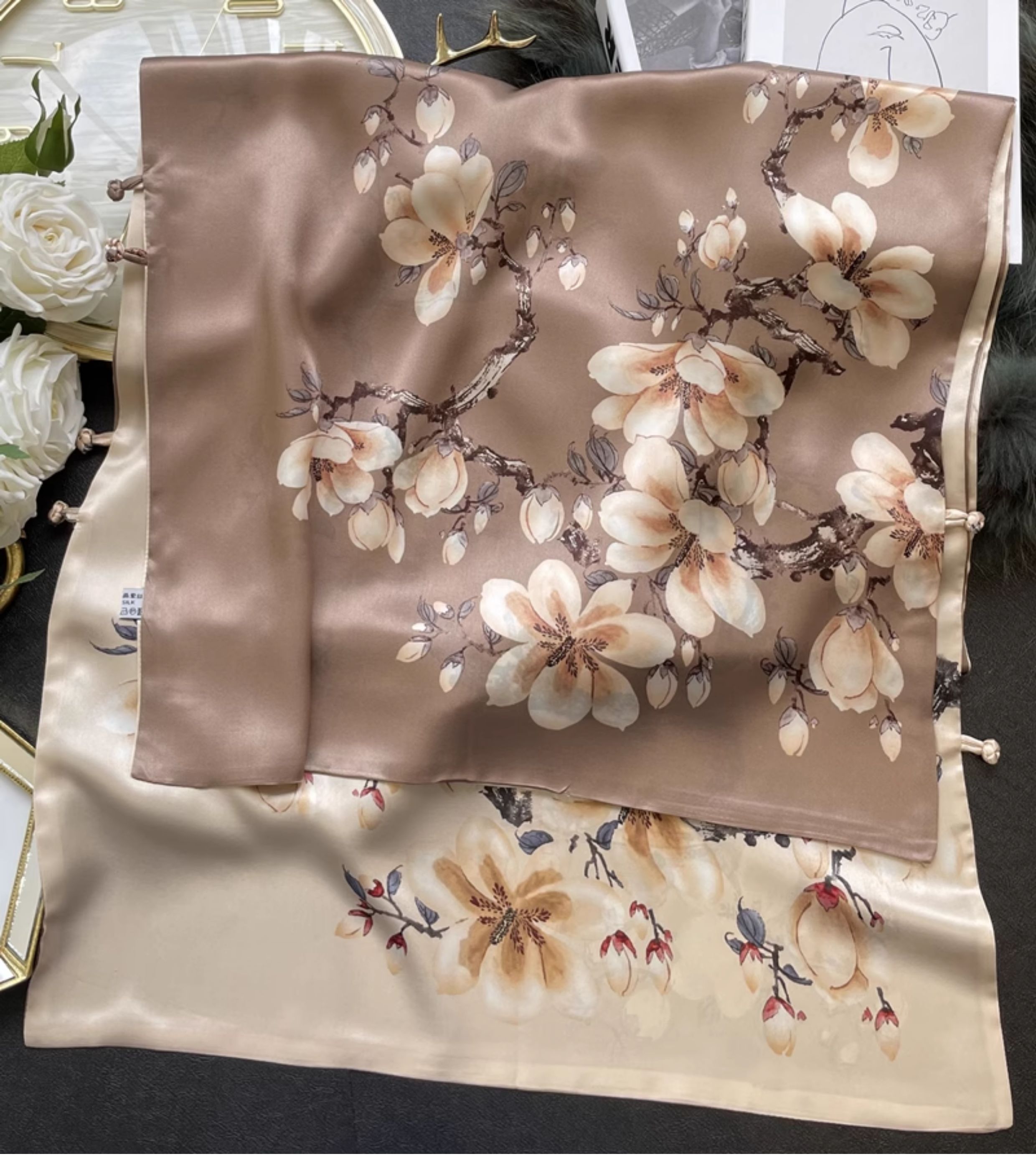 Asaya41 - High end mother s silk scarf with buckle women s versatile long style mulberry silk scarf Hangzhou silk shawl dual use for spring and autumn