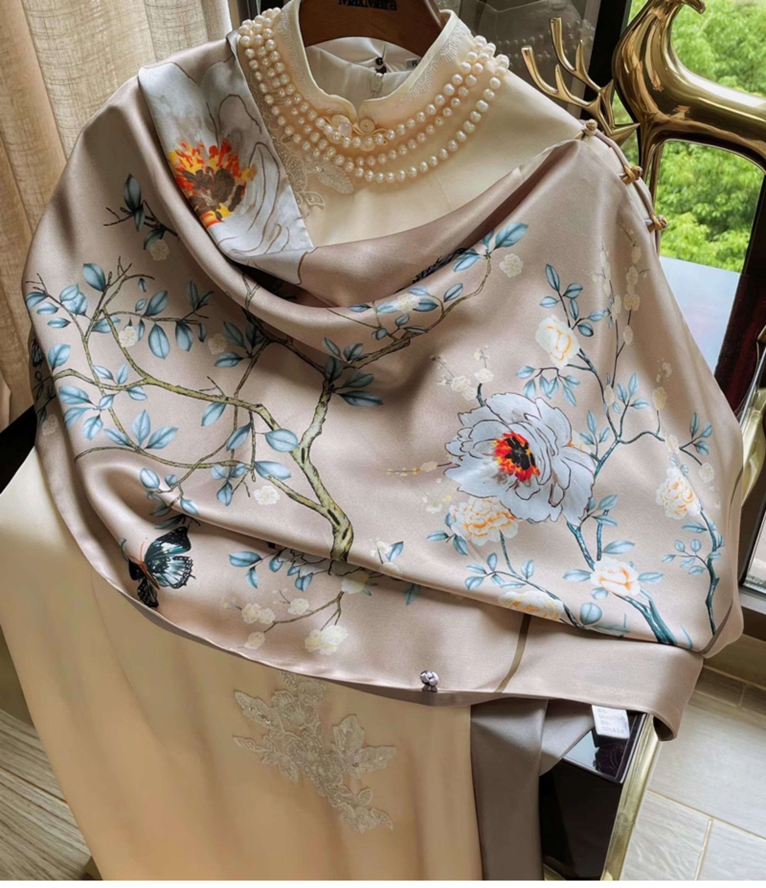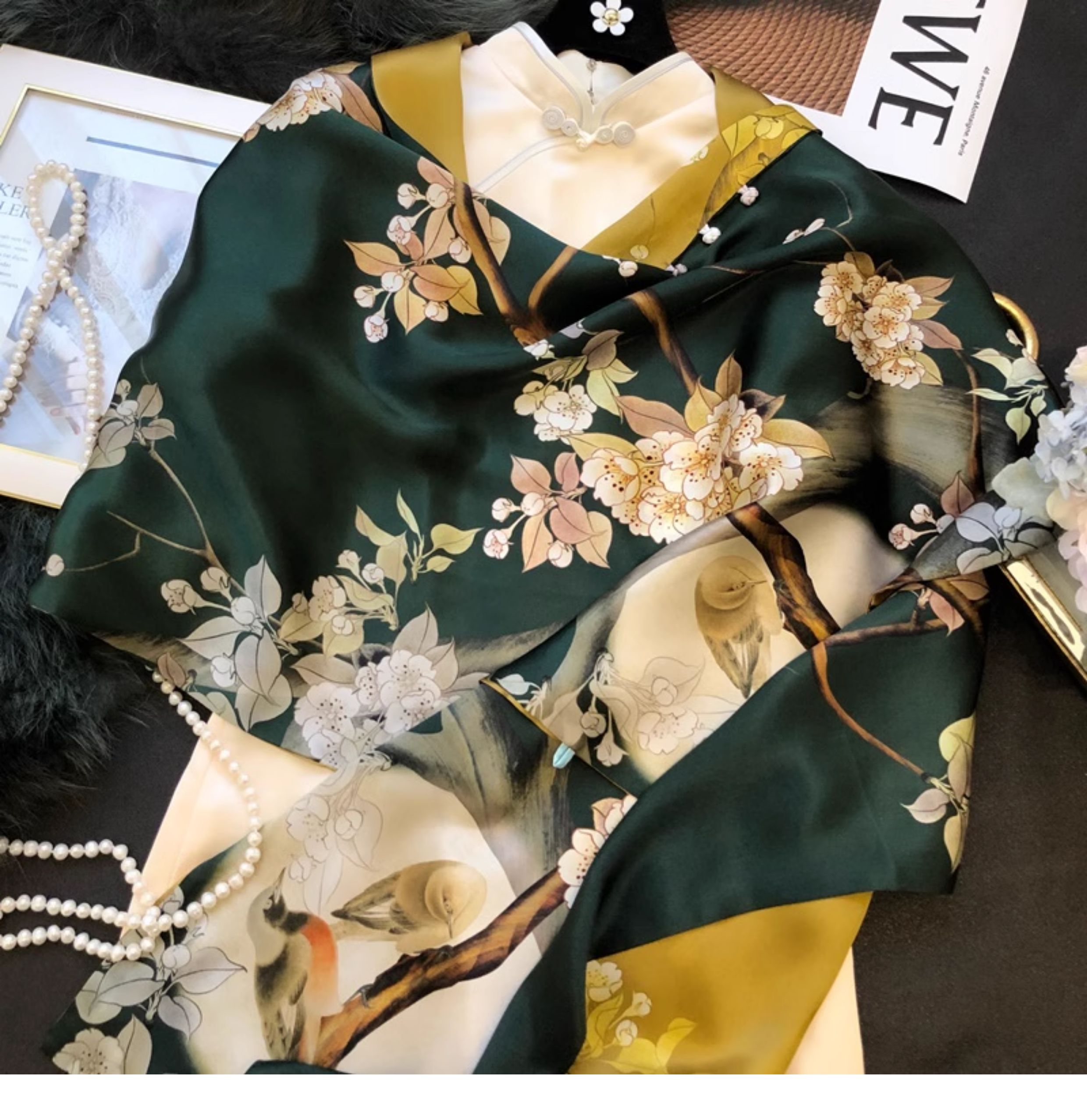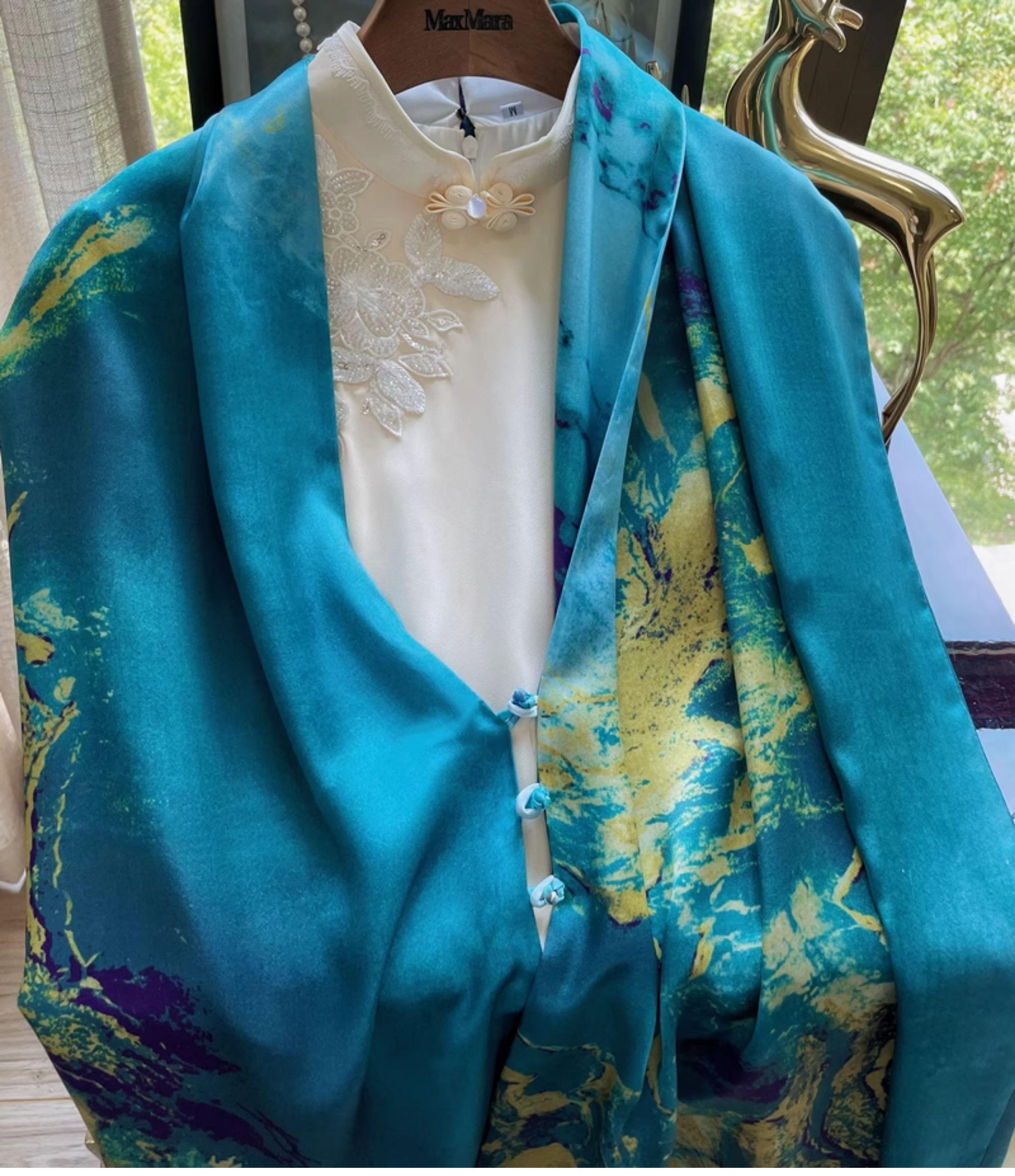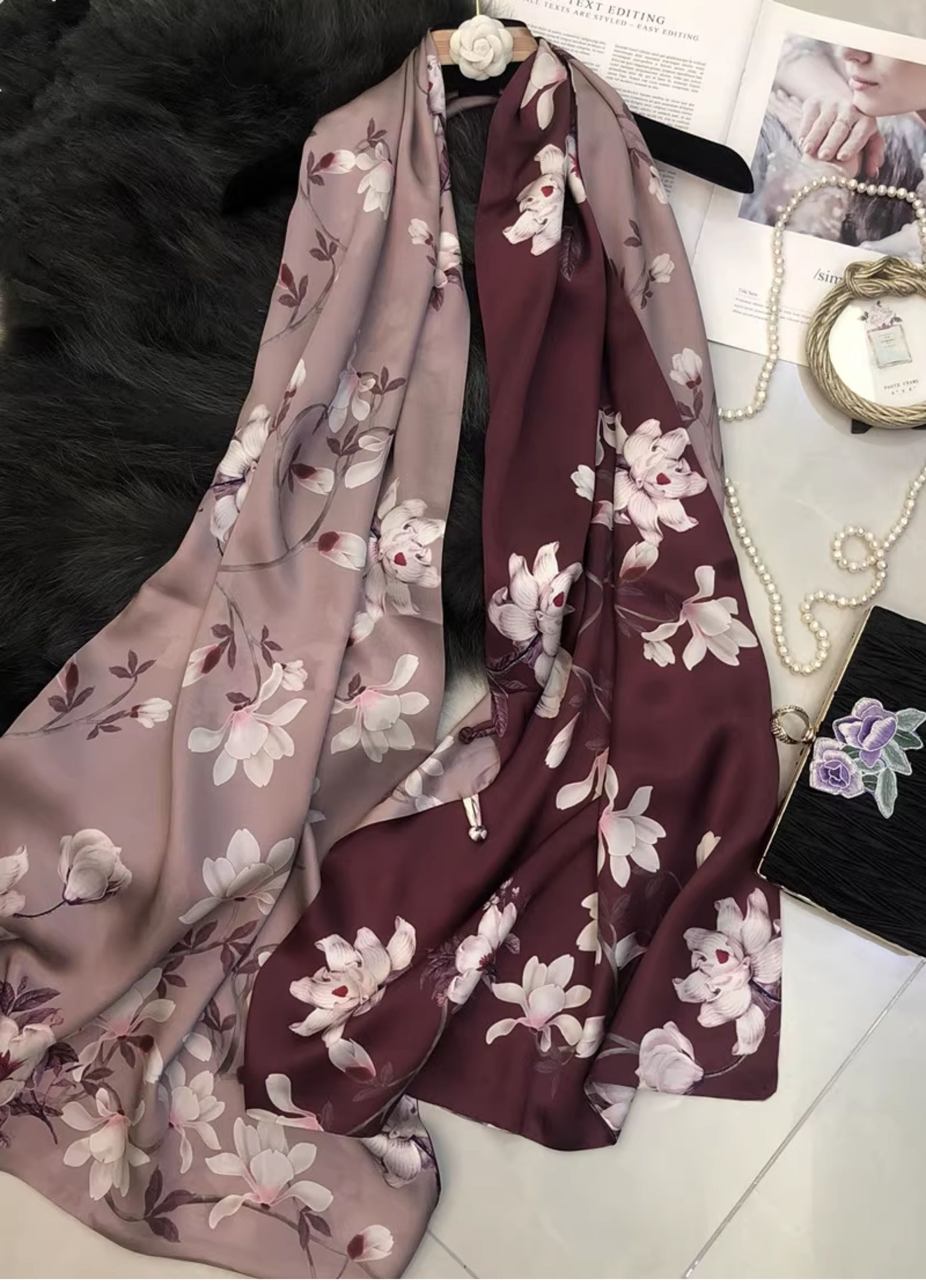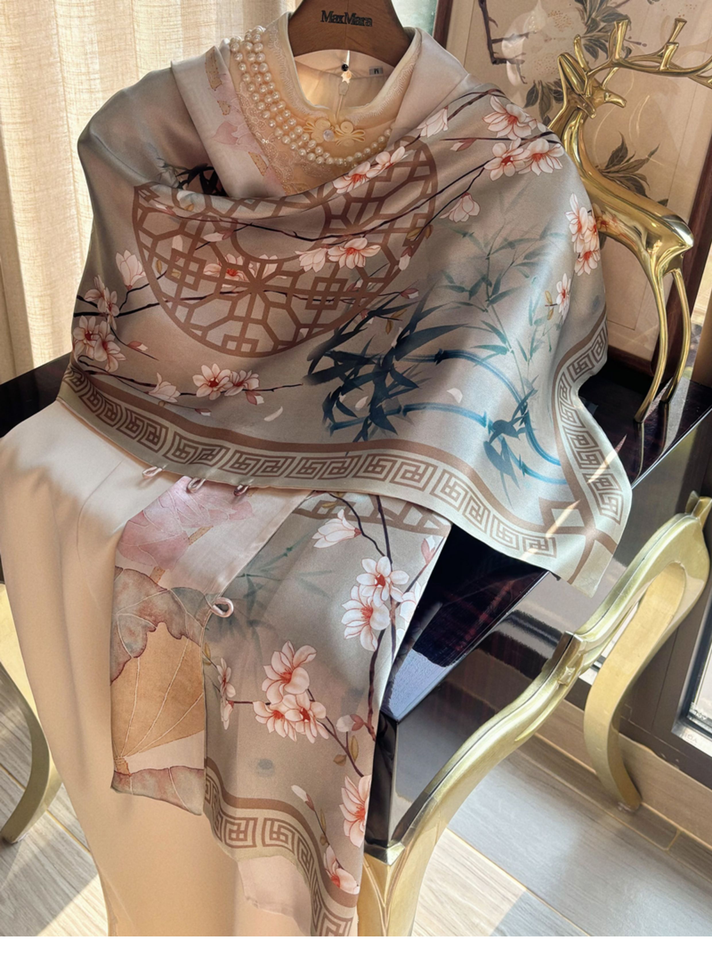 Asaya41 - High end mother s silk scarf with buckle women s versatile long style mulberry silk scarf Hangzhou silk shawl dual use for spring and autumn