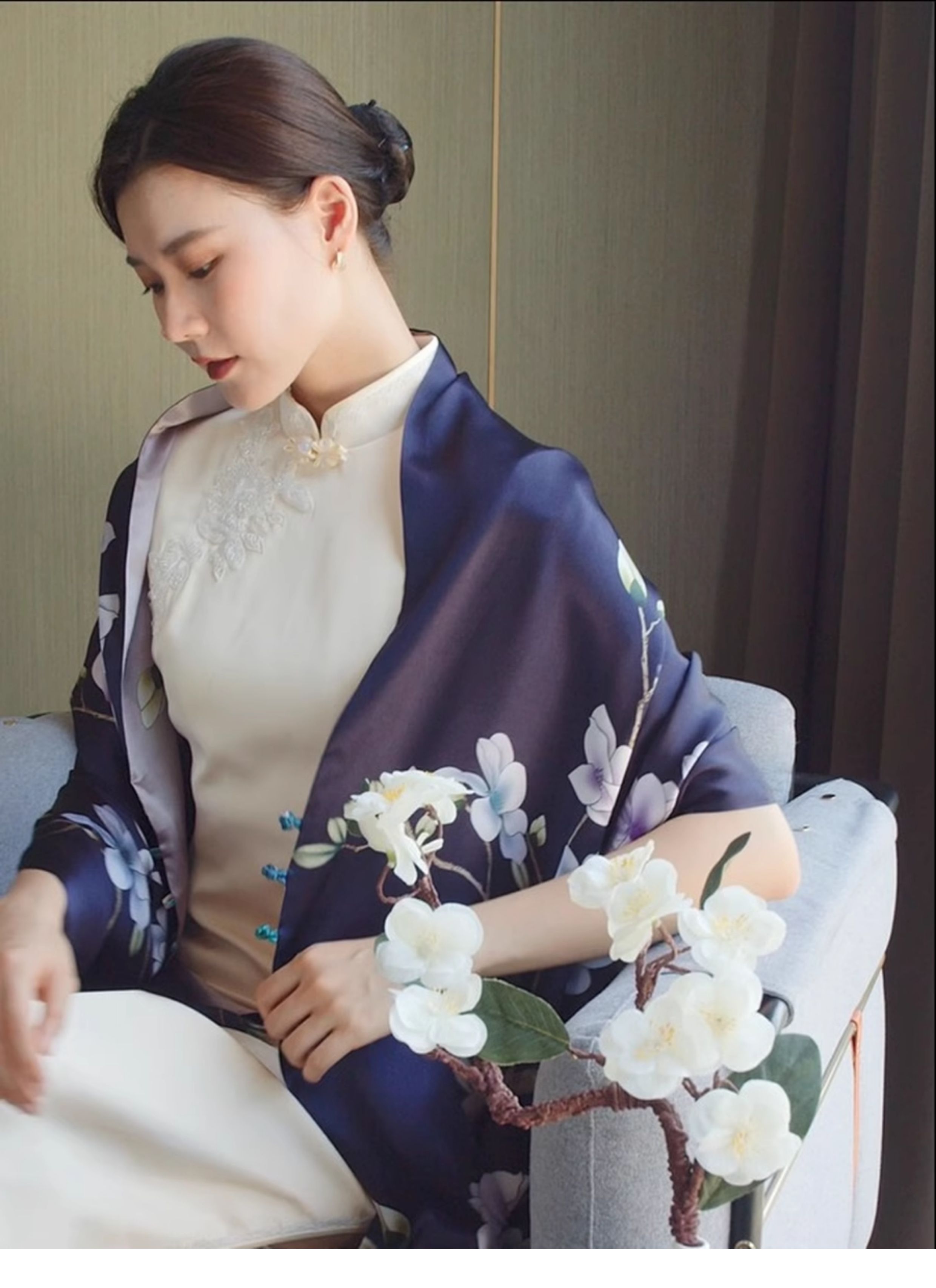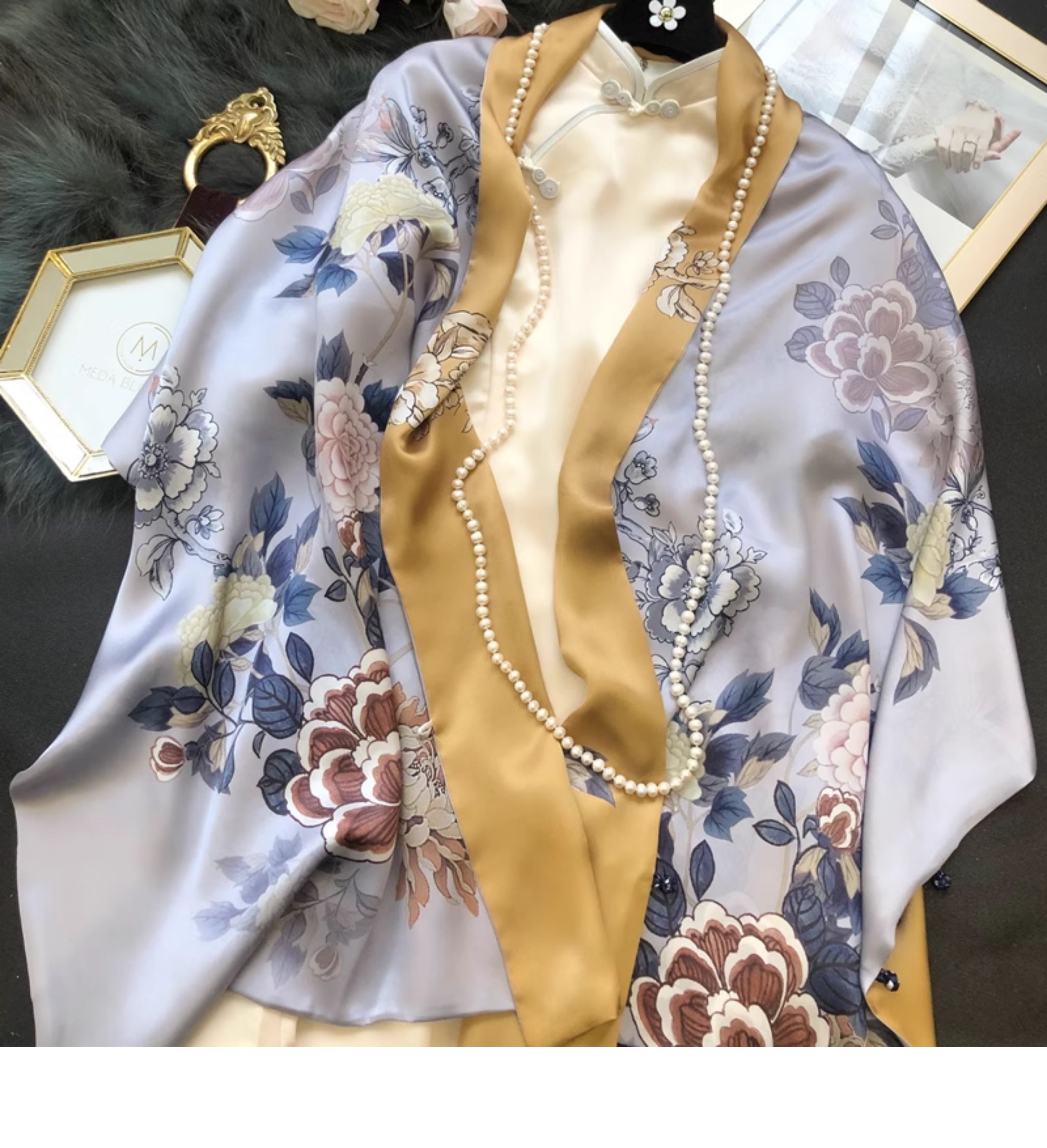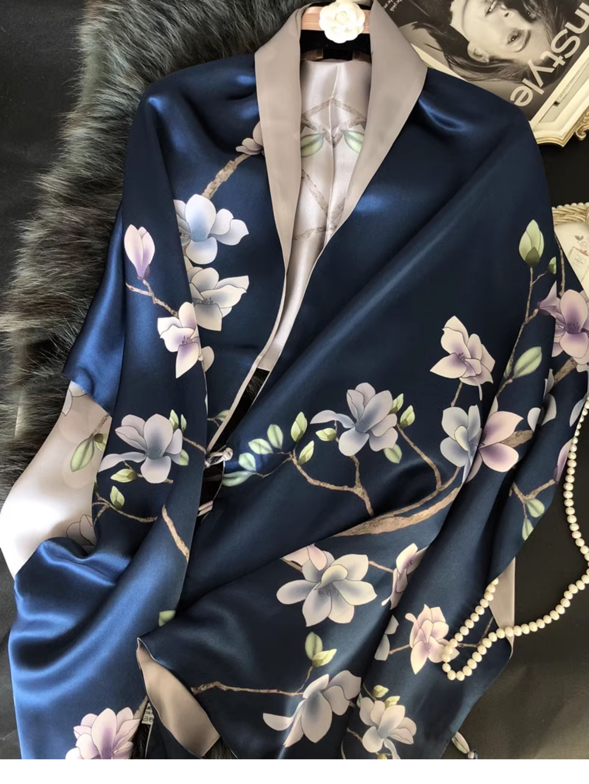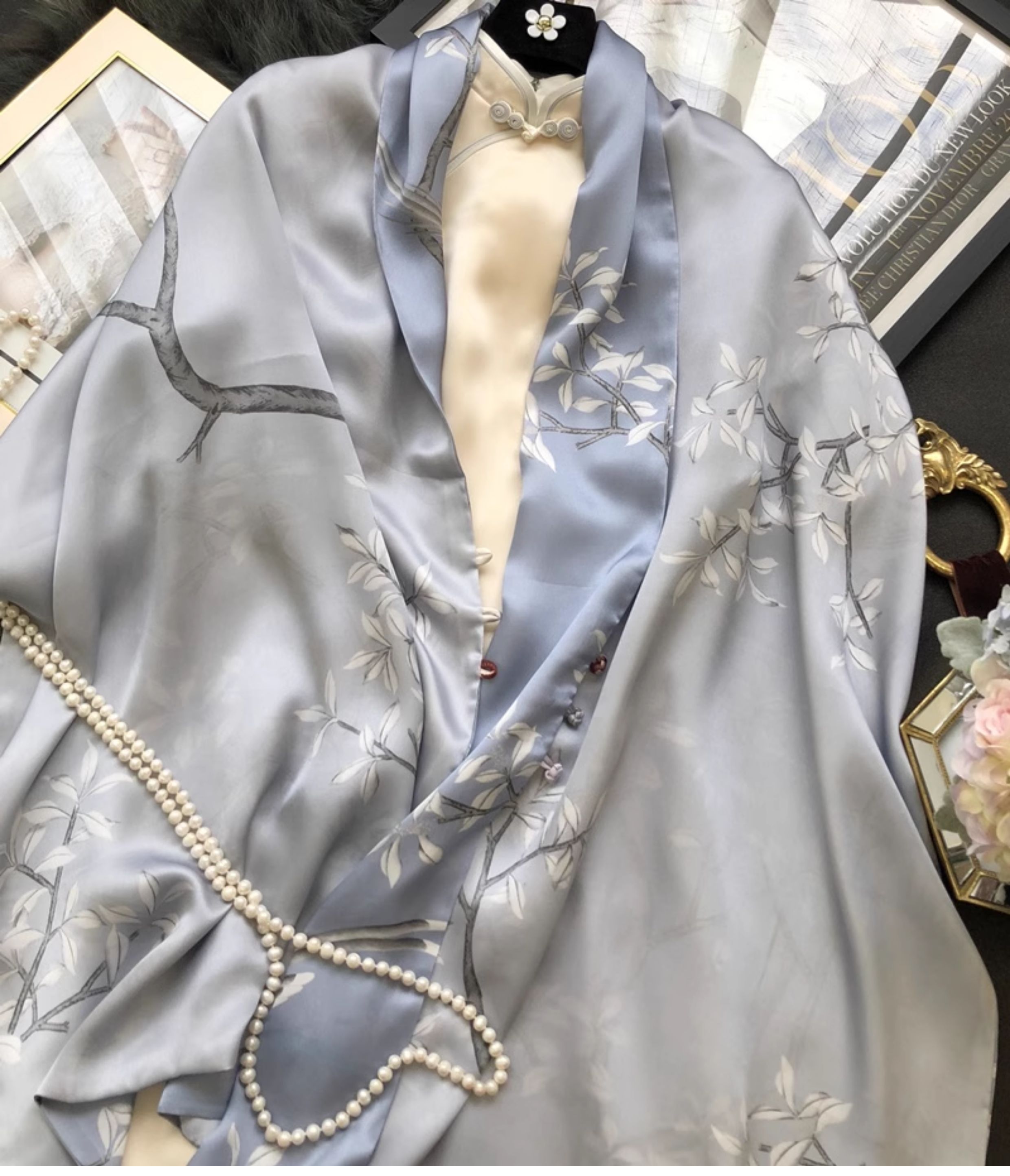 Asaya41 - High end mother s silk scarf with buckle women s versatile long style mulberry silk scarf Hangzhou silk shawl dual use for spring and autumn