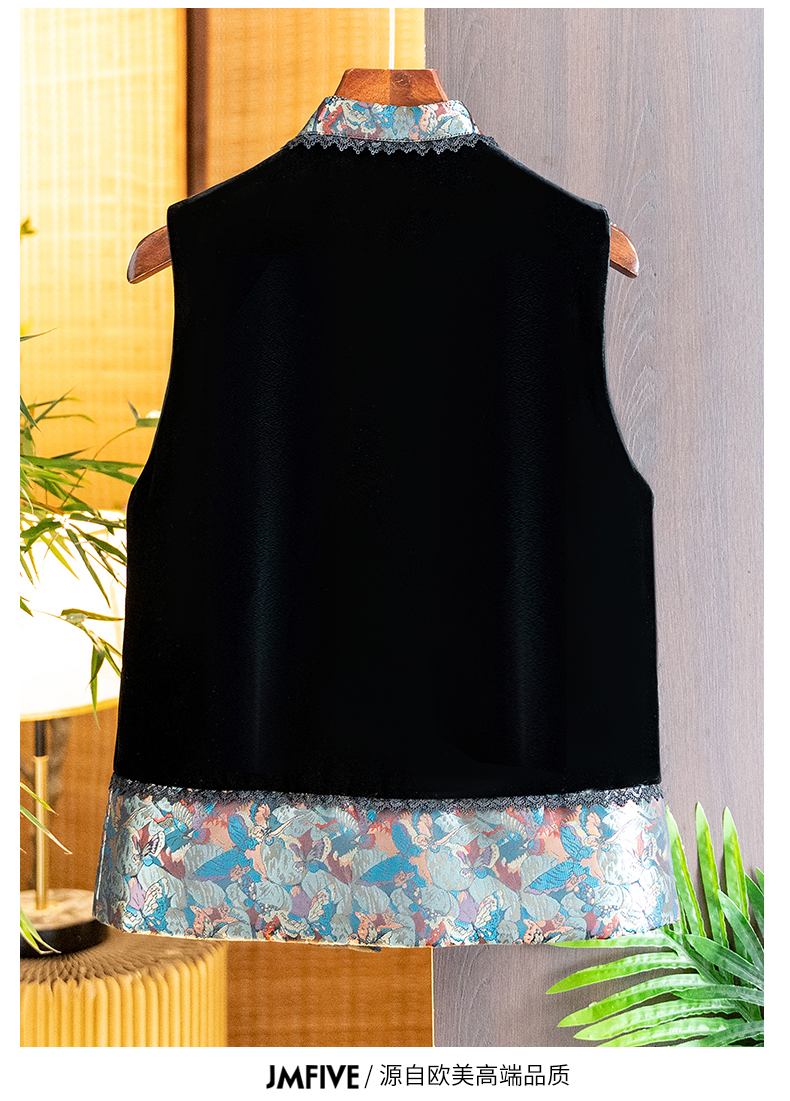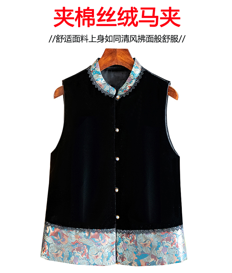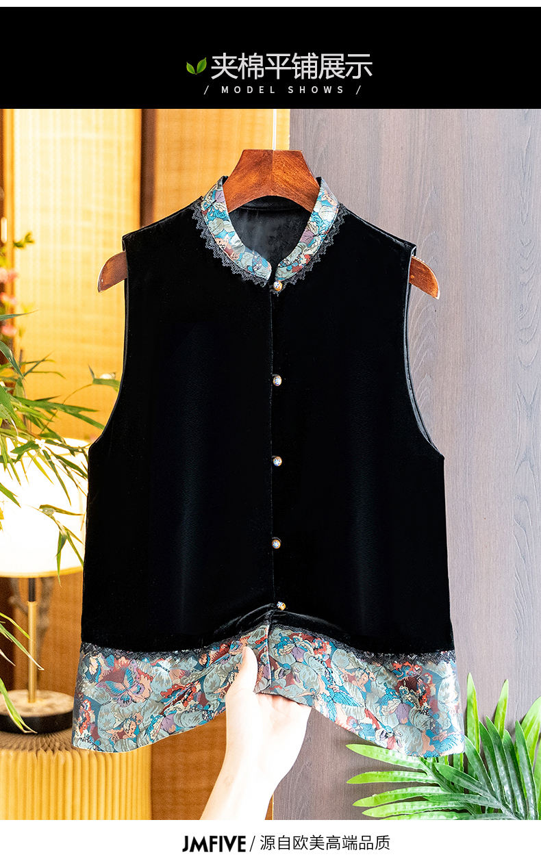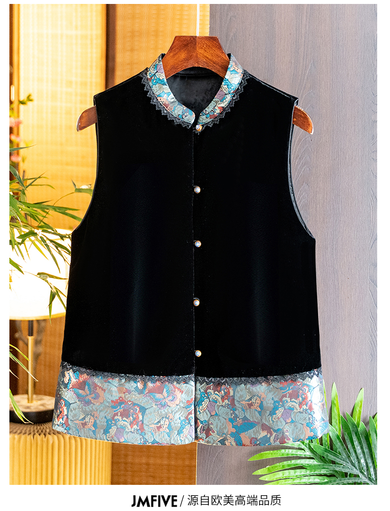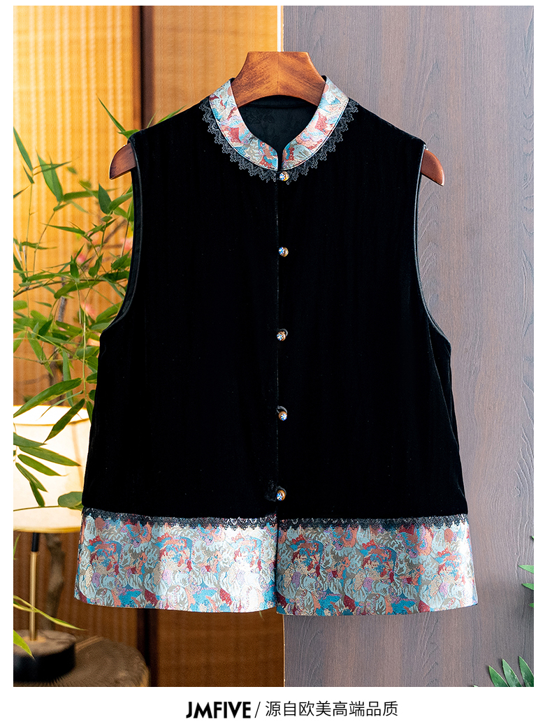Asaya1139 - High grade silk velvet black vest for women 2025 autumn and winter new arrival Chinese style stand collar jacquard lace vest