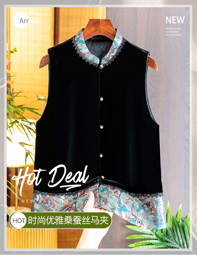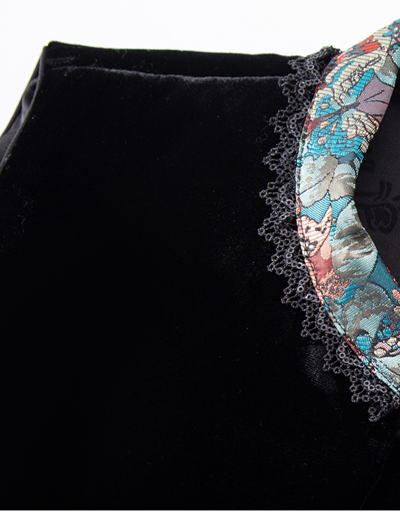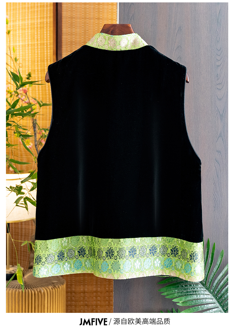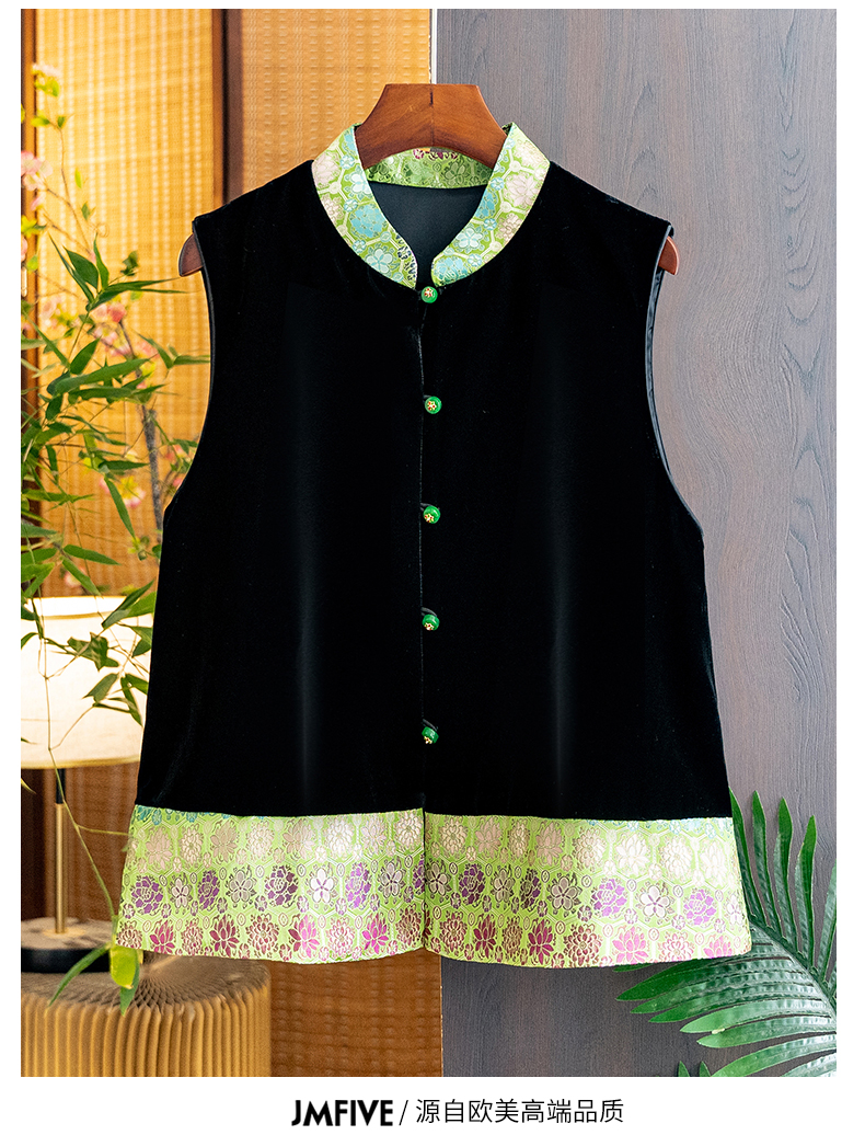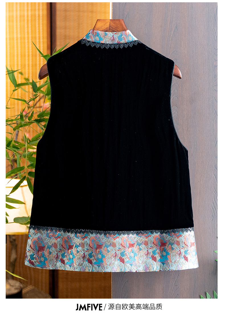 Asaya1139 - High grade silk velvet black vest for women 2025 autumn and winter new arrival Chinese style stand collar jacquard lace vest