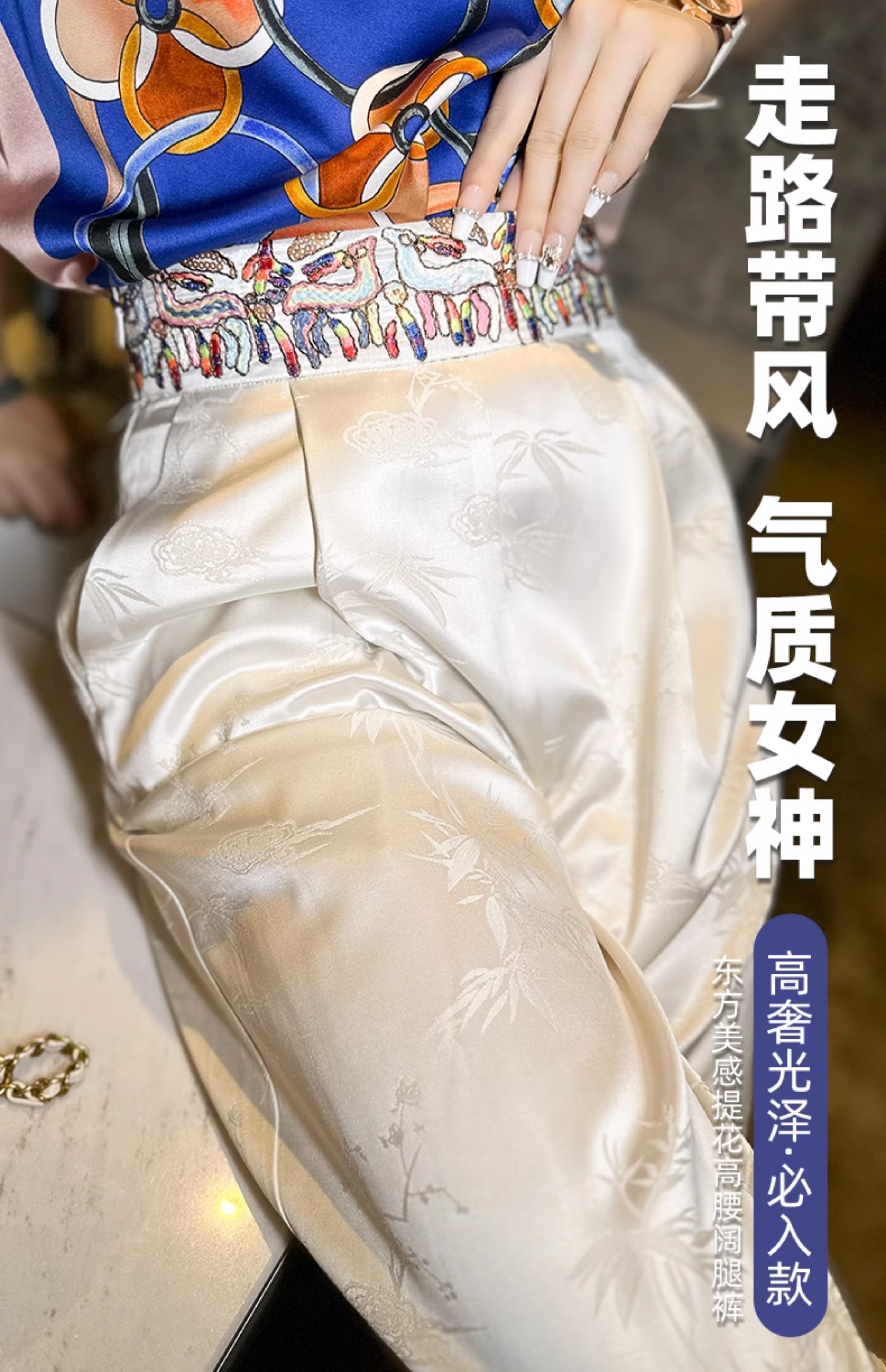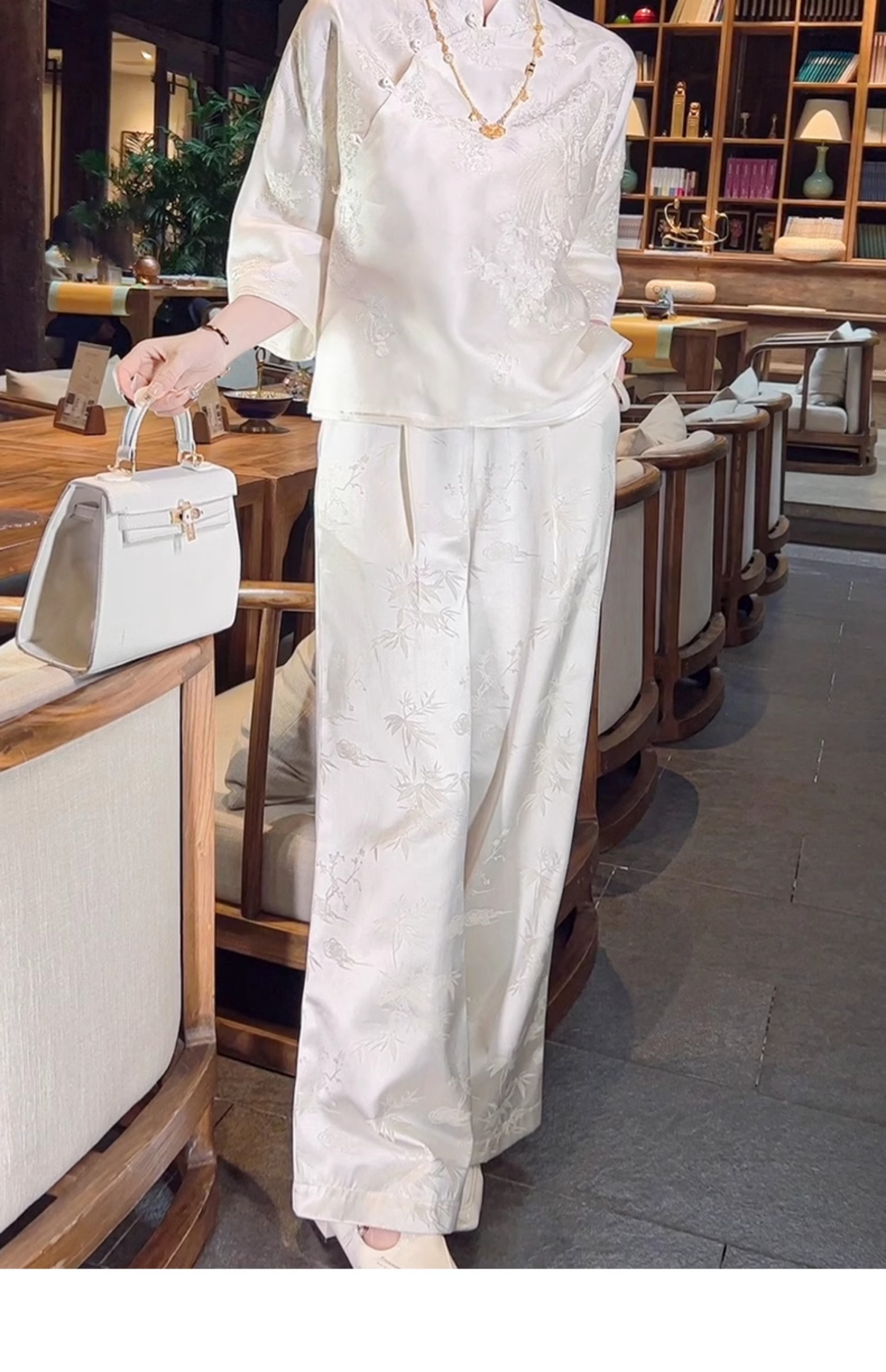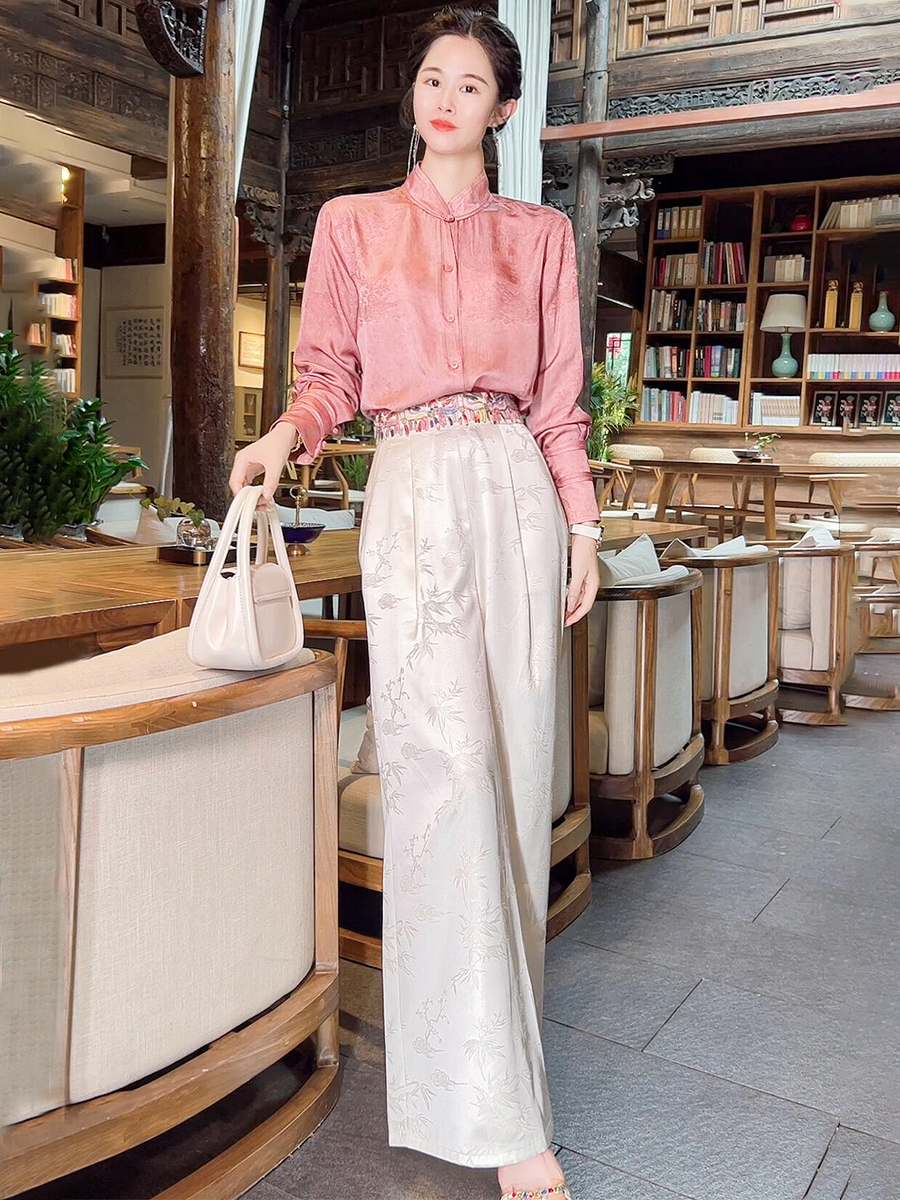 ASAYA2978 Heavy embroidery silk jacquard white new Chinese style national style pants (SILK MATERIAL)