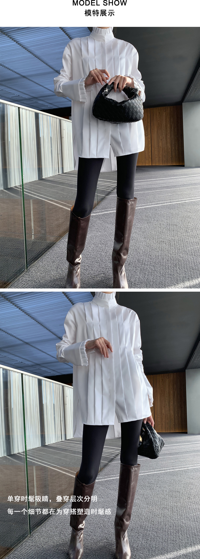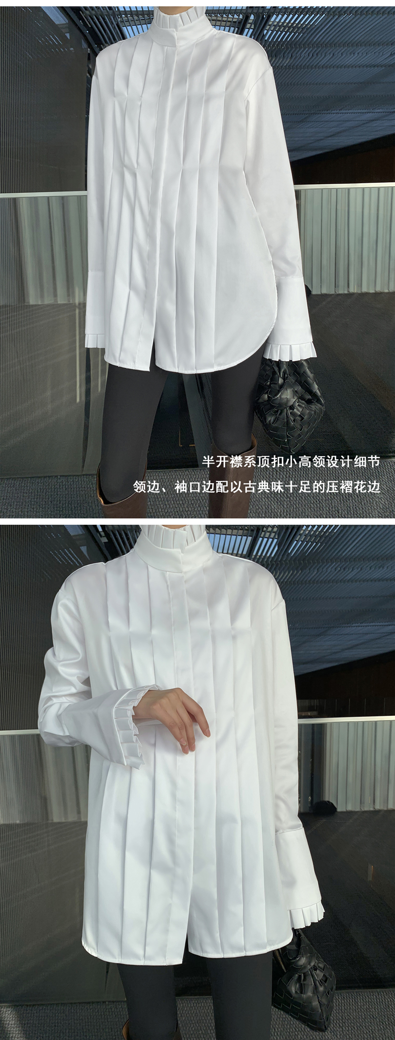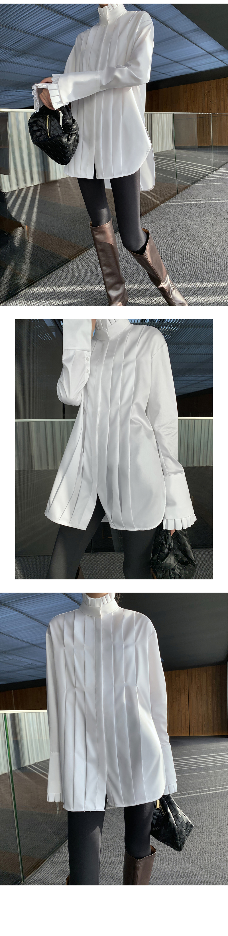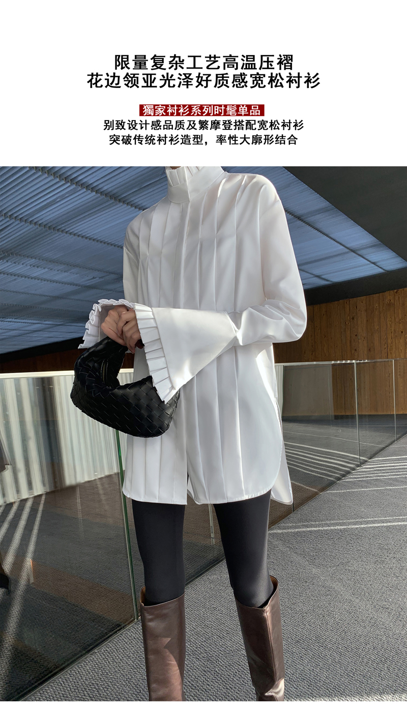 Asaya2096 : High temperature pleated lace collar sub-glossy loose shirt