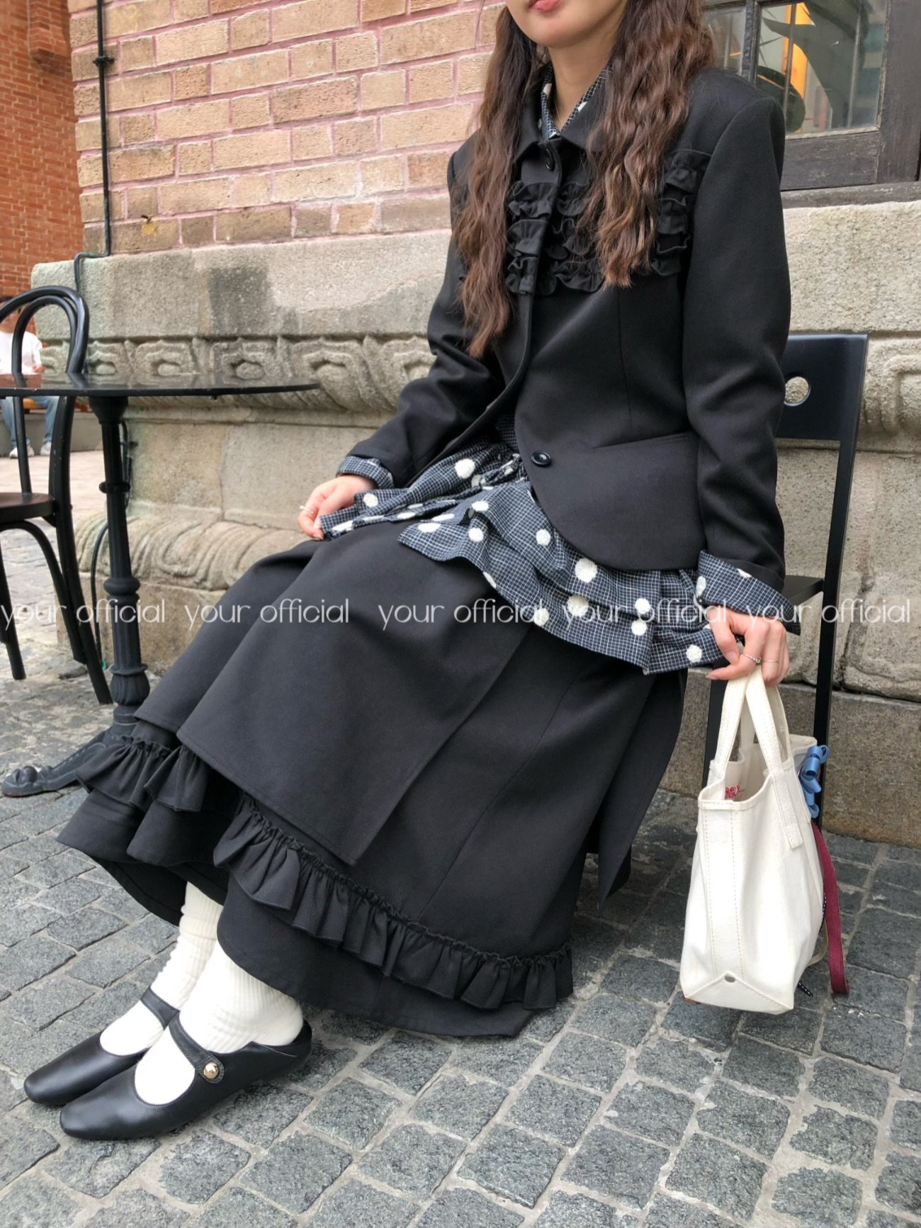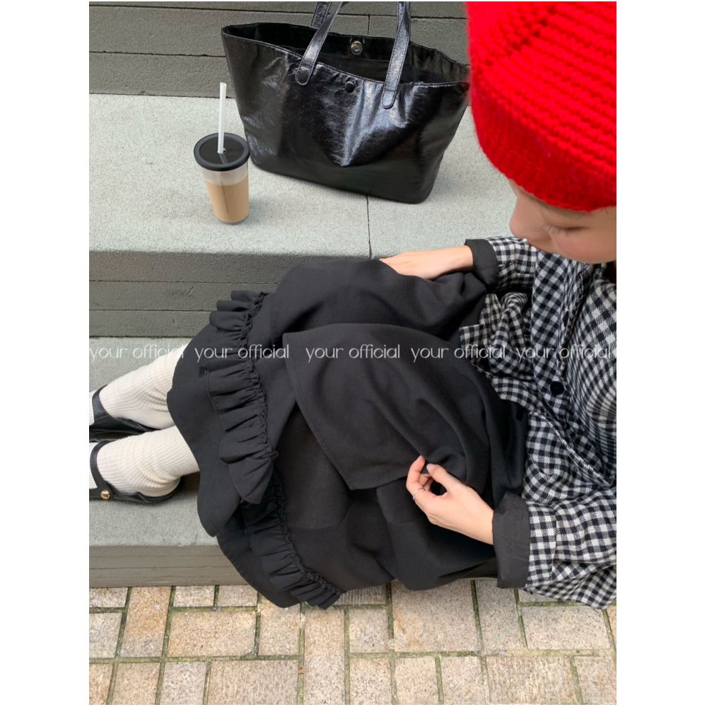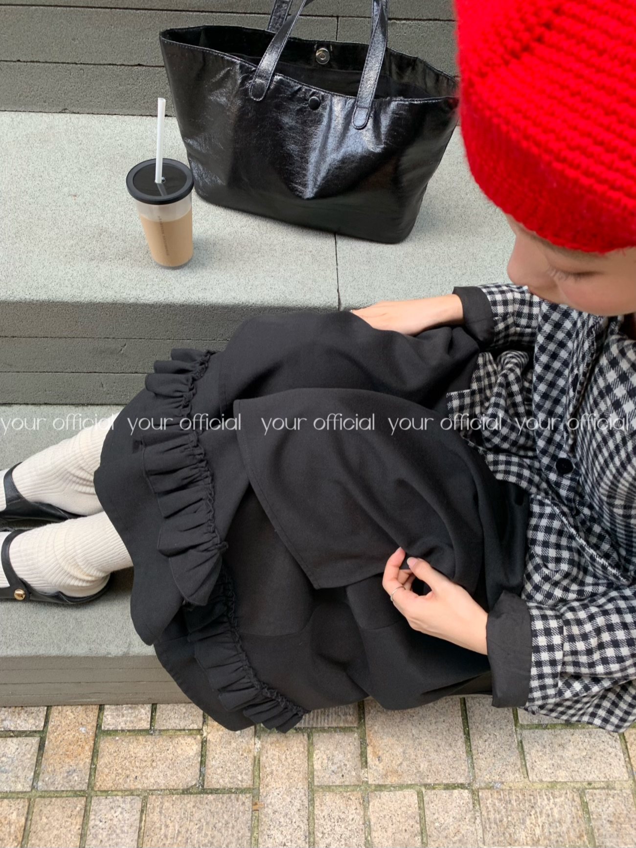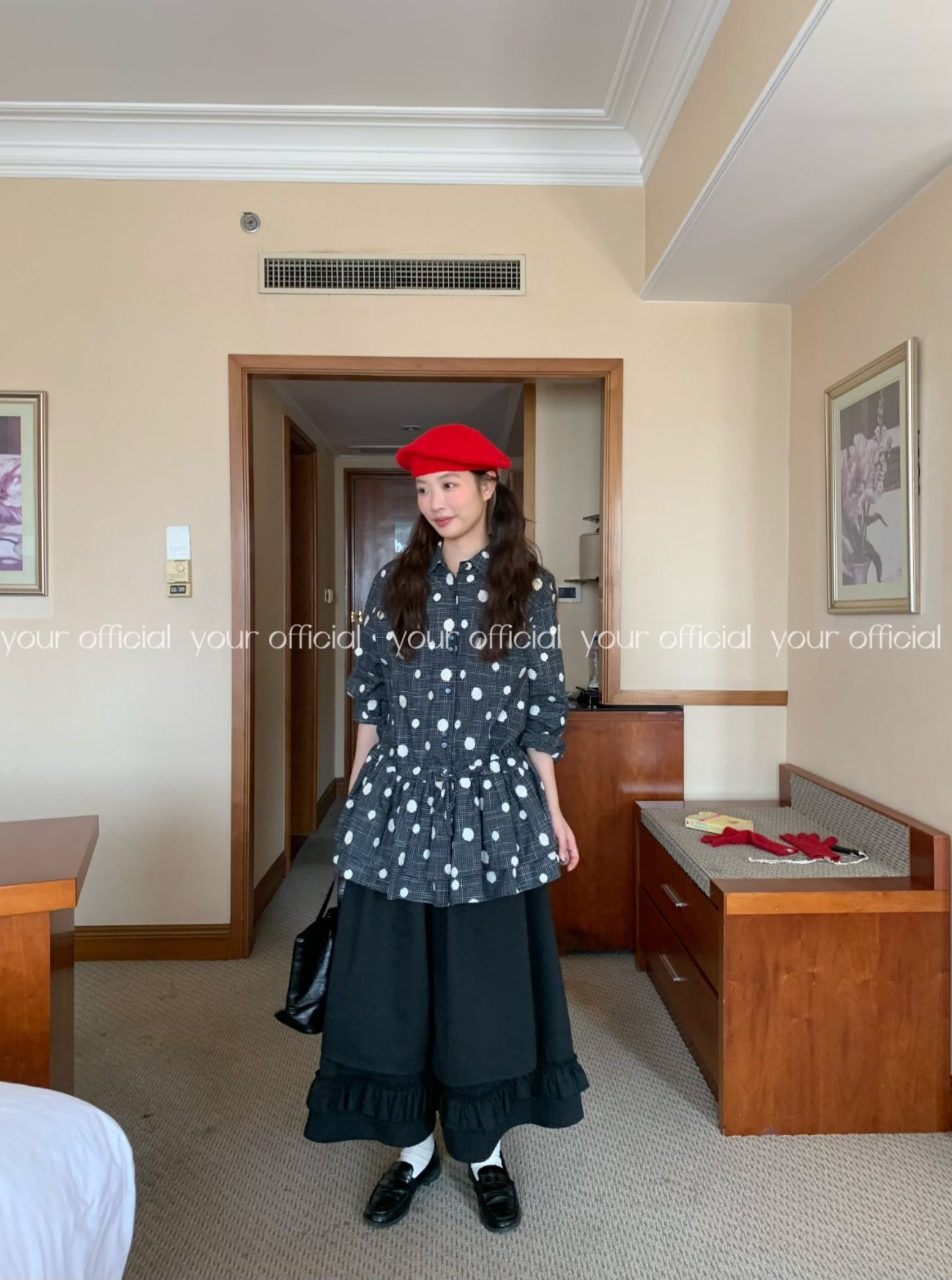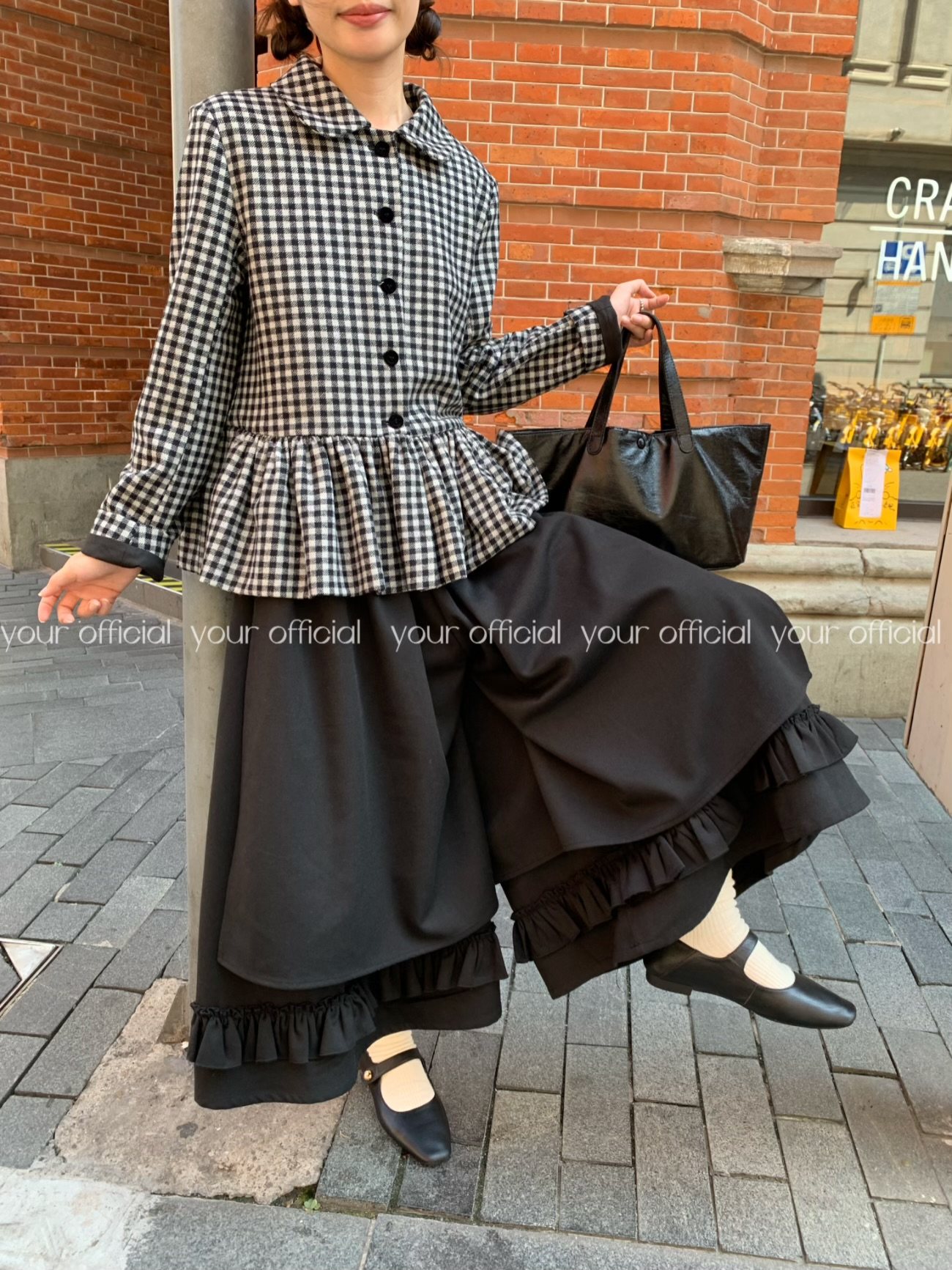 ASAYA5213 – Ruffle Hem Vintage Wide-Leg Skirt 🖤🎀