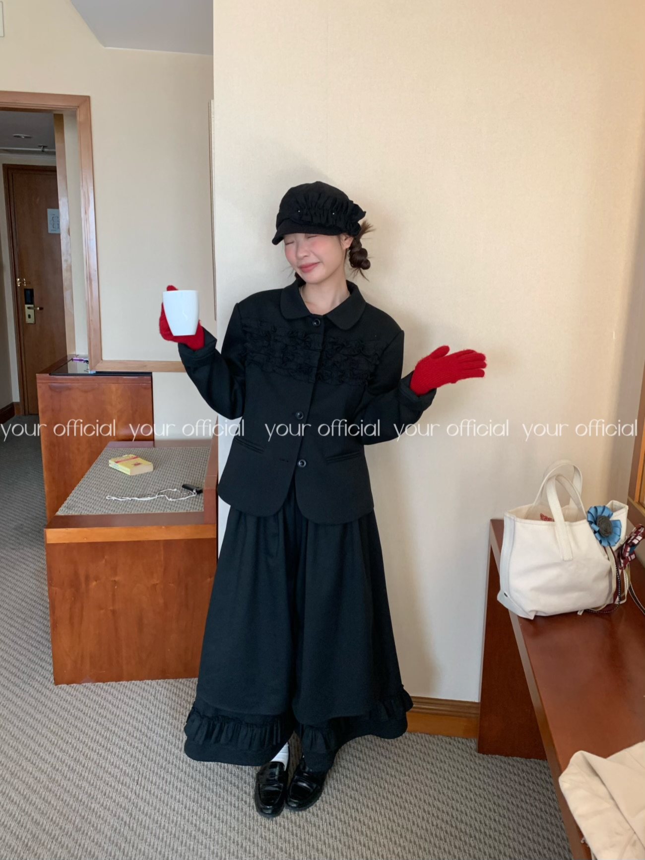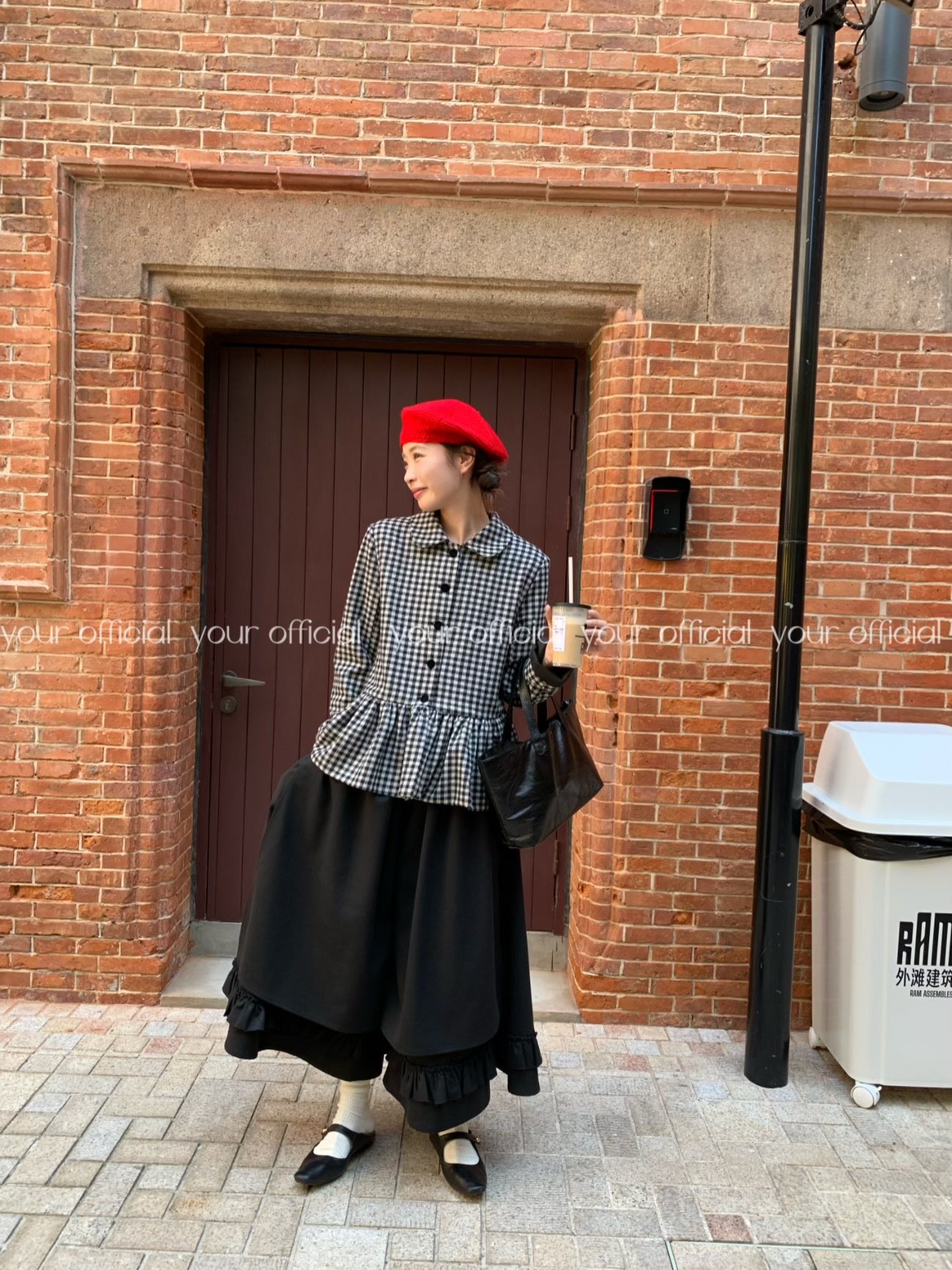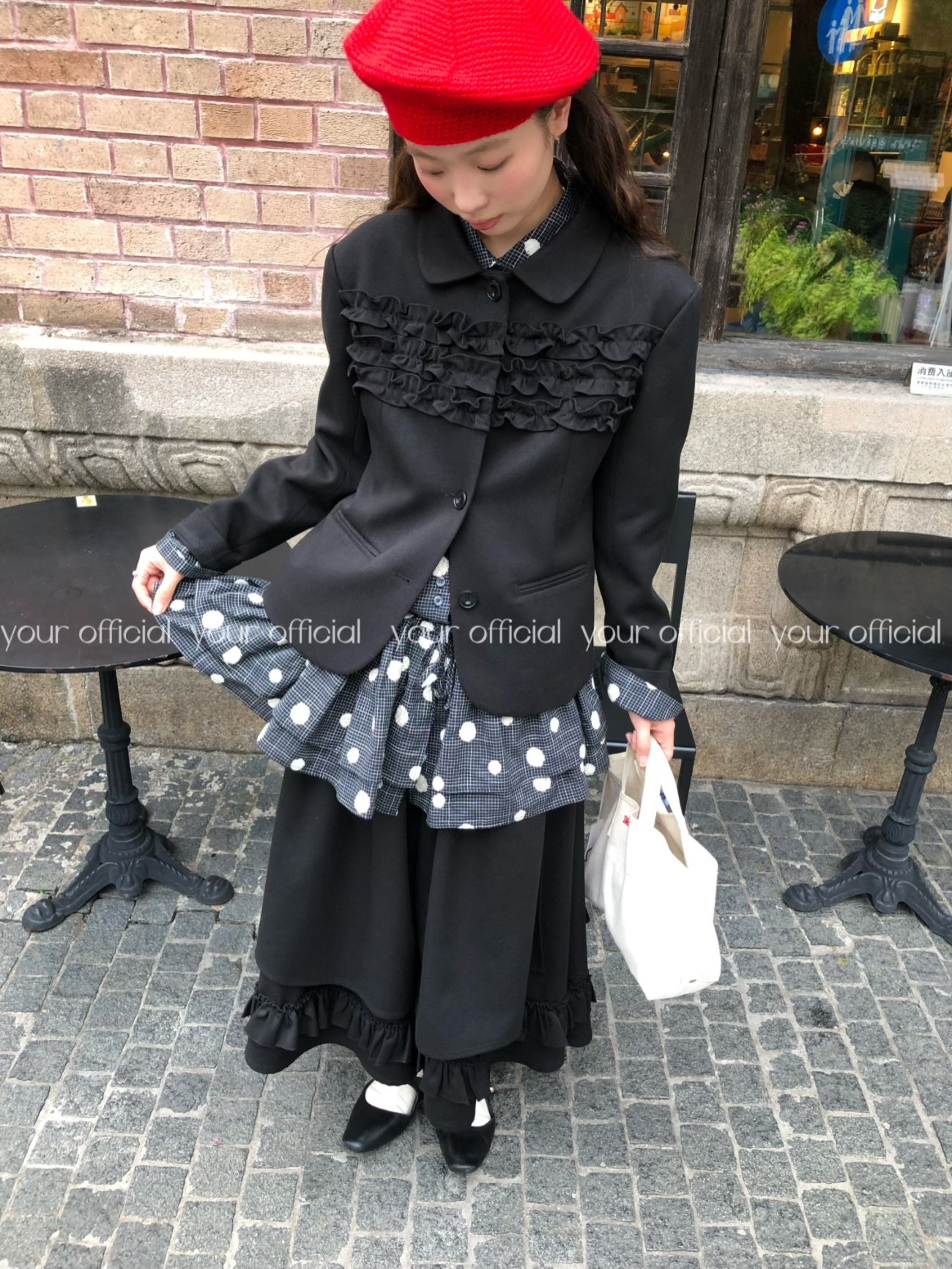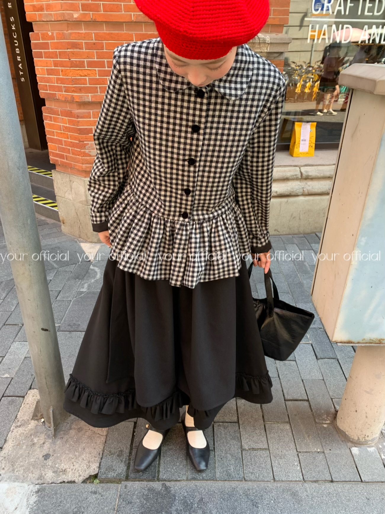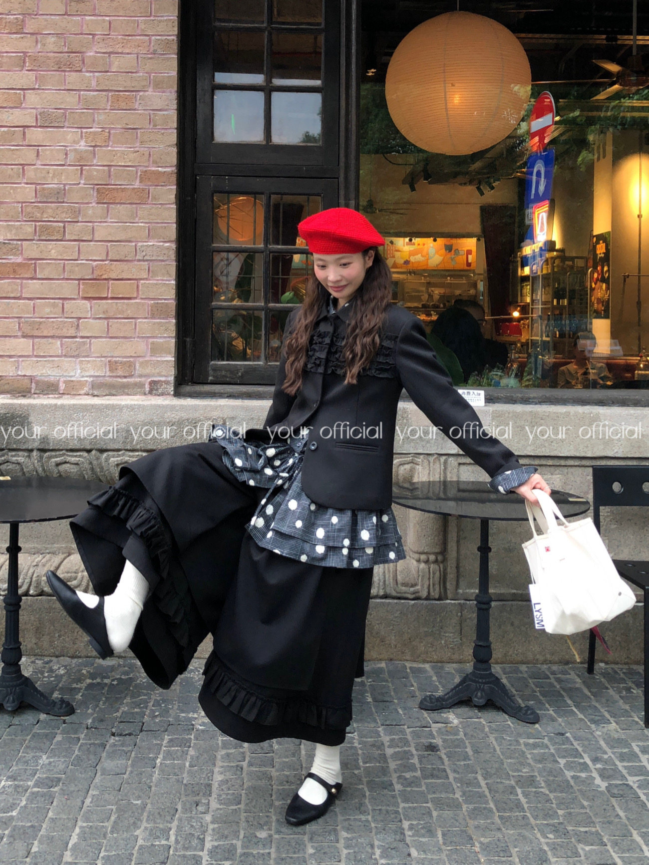 ASAYA5213 – Ruffle Hem Vintage Wide-Leg Skirt 🖤🎀
