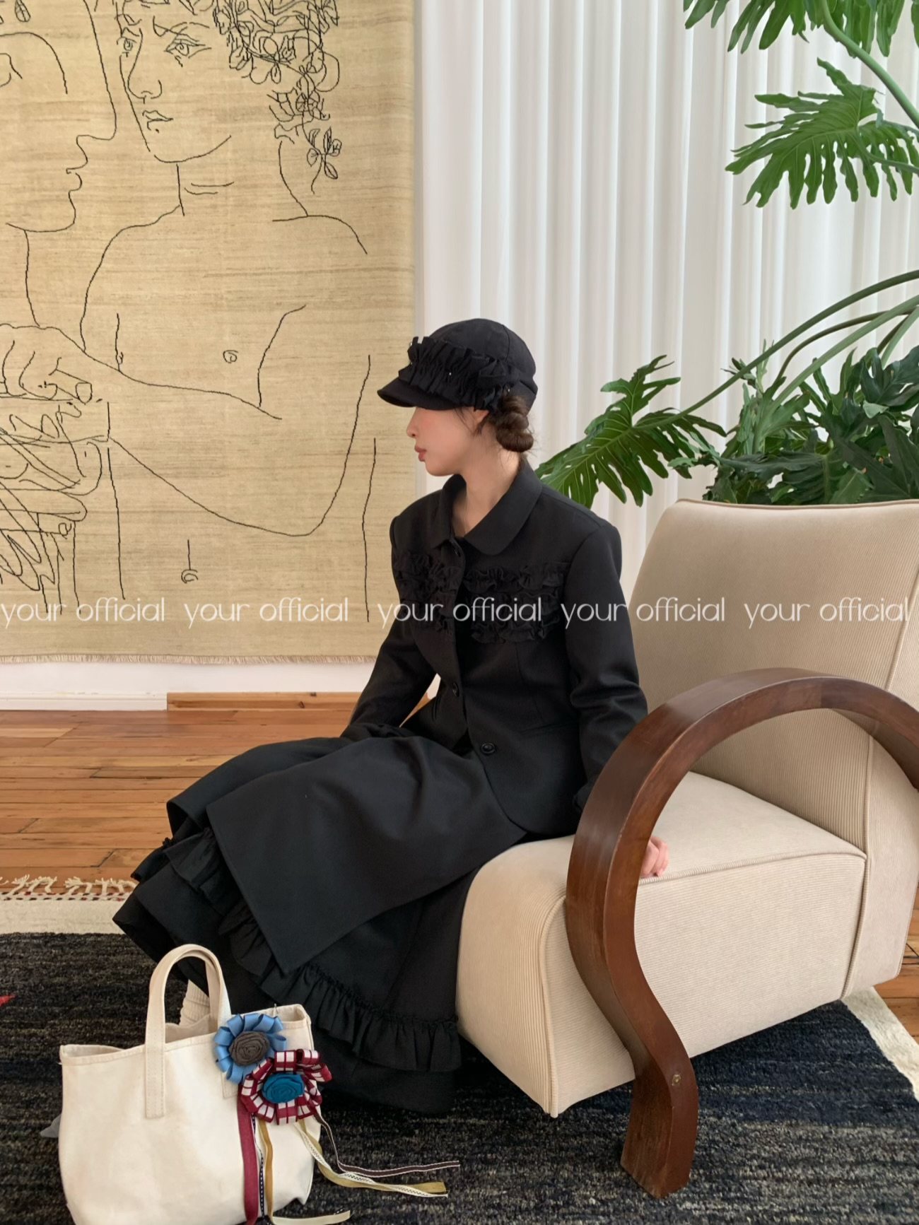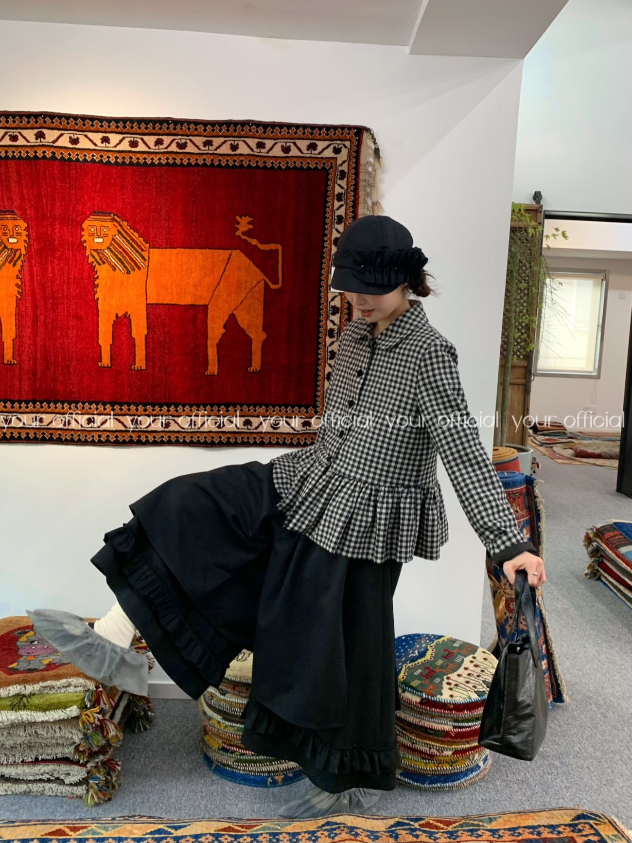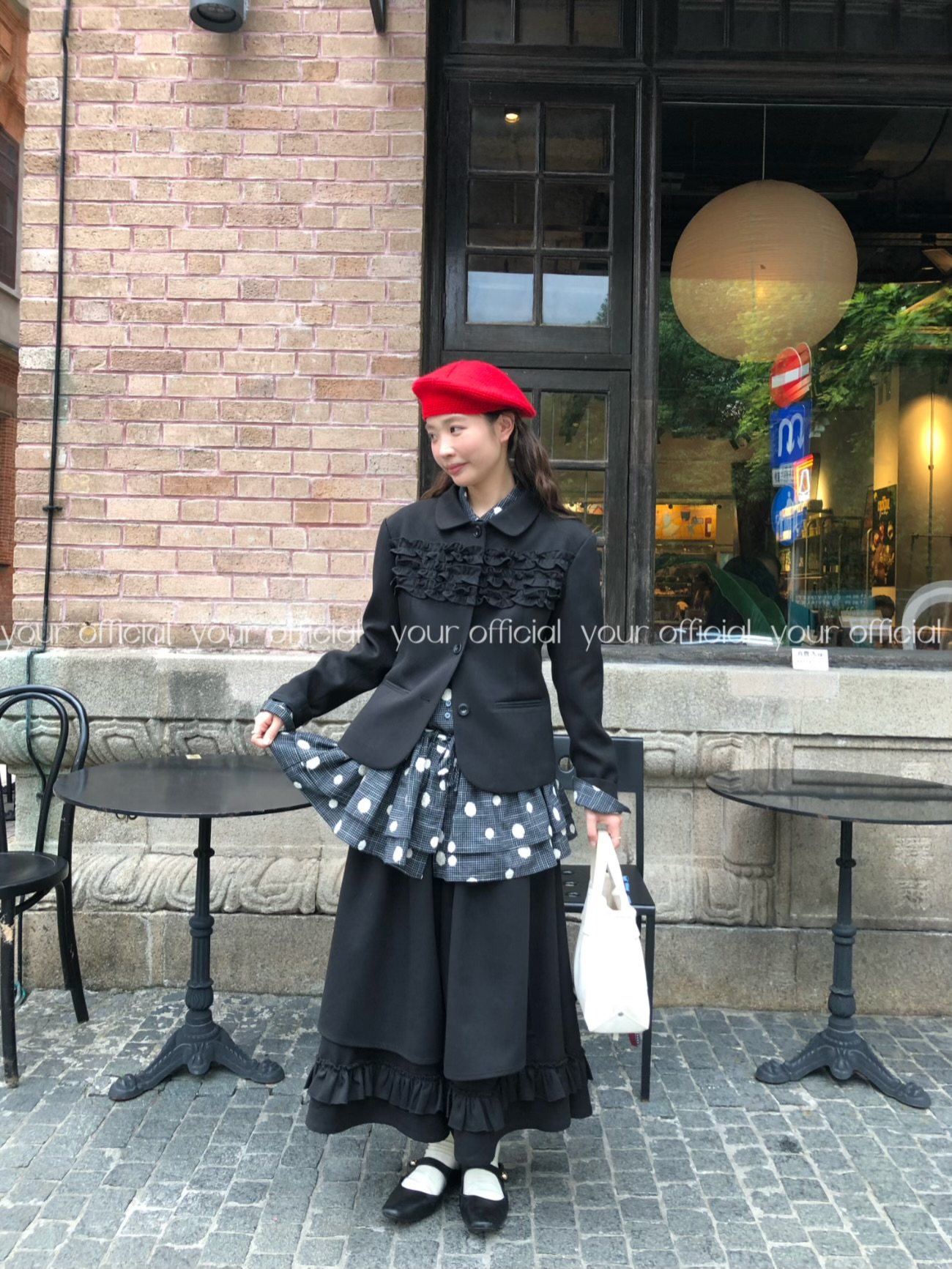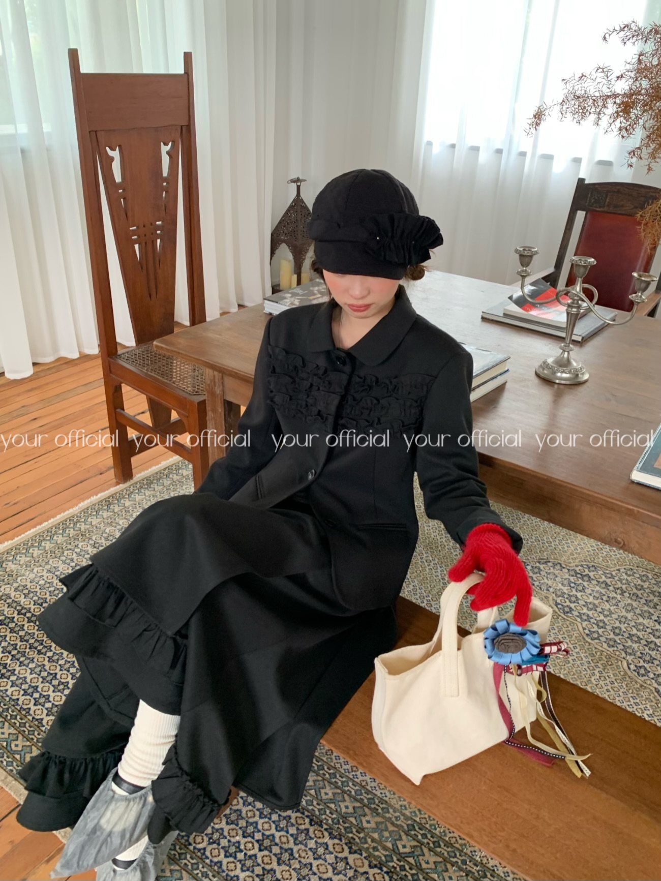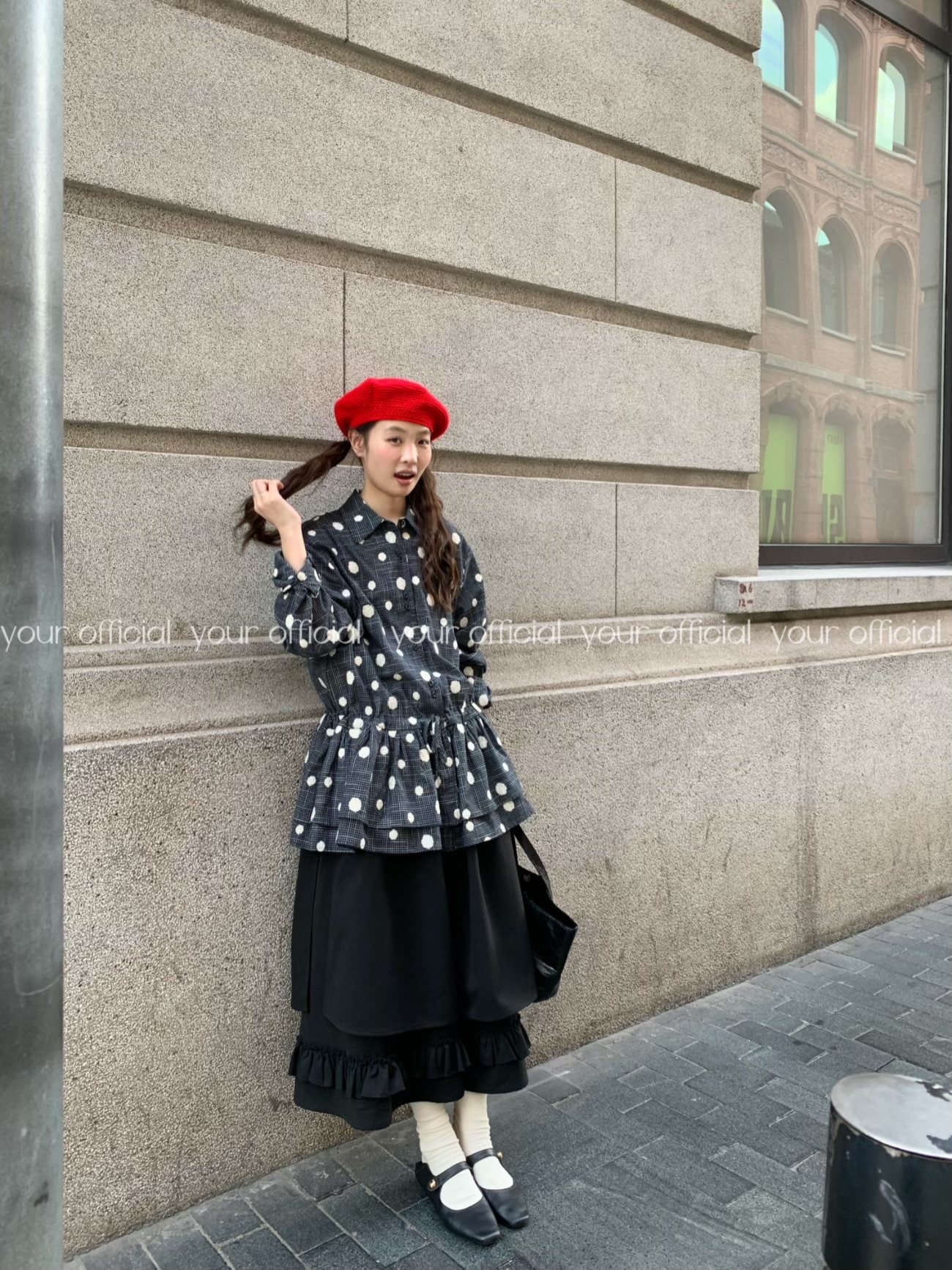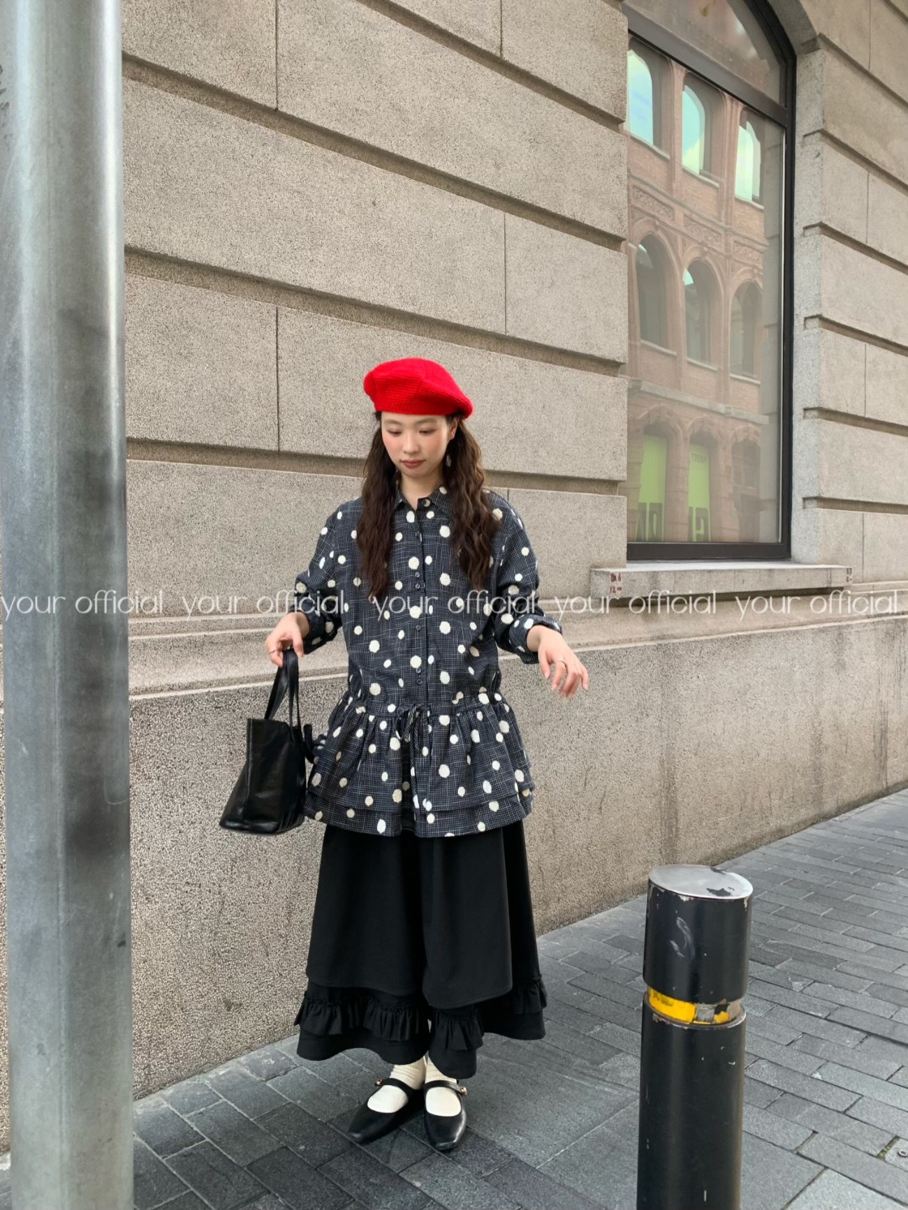ASAYA5213 – Ruffle Hem Vintage Wide-Leg Skirt 🖤🎀
