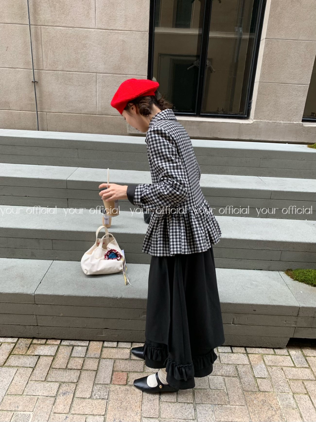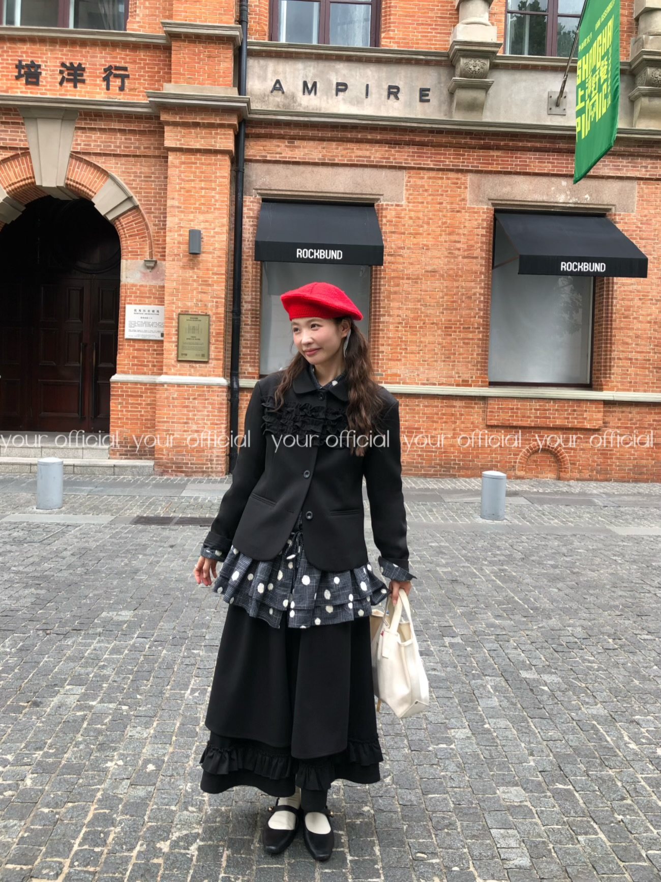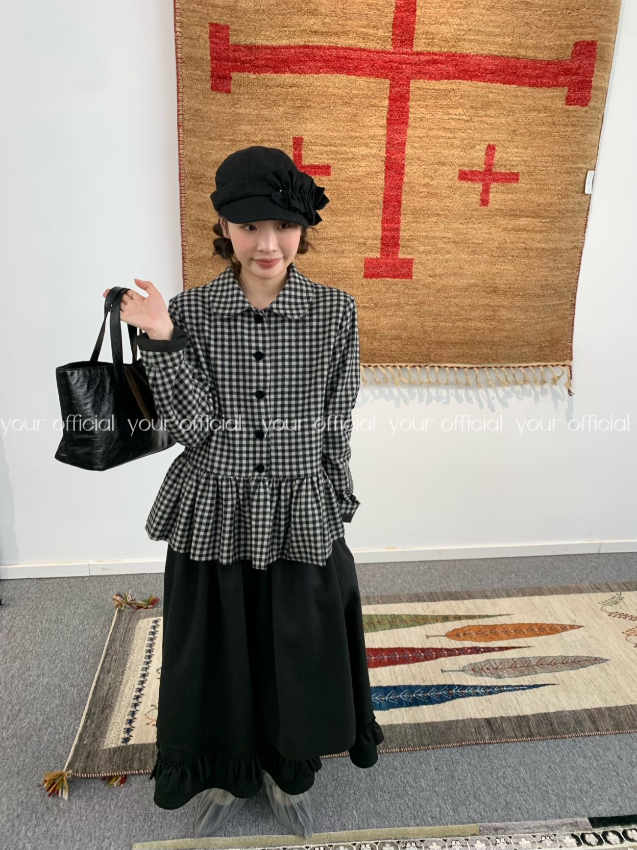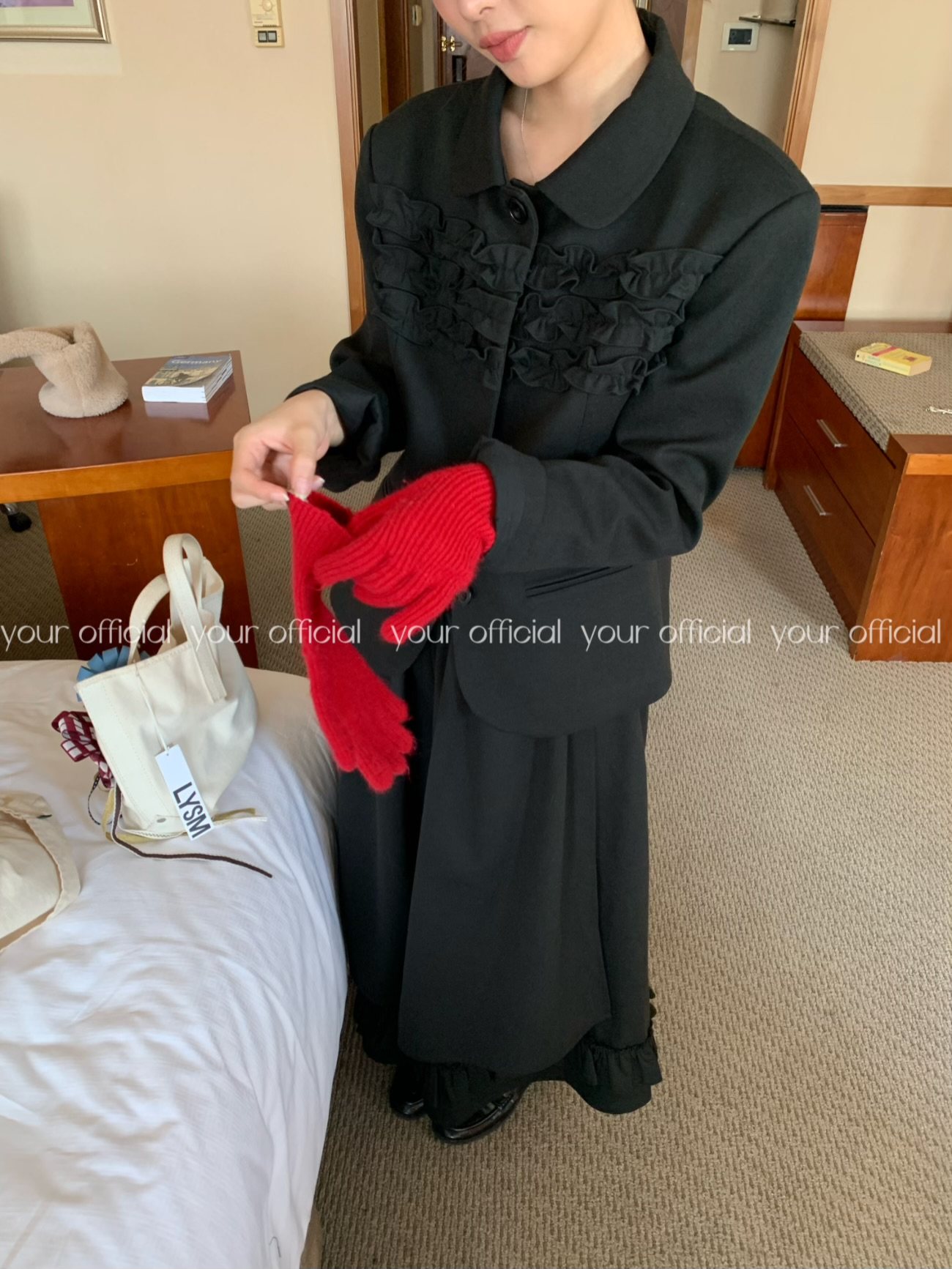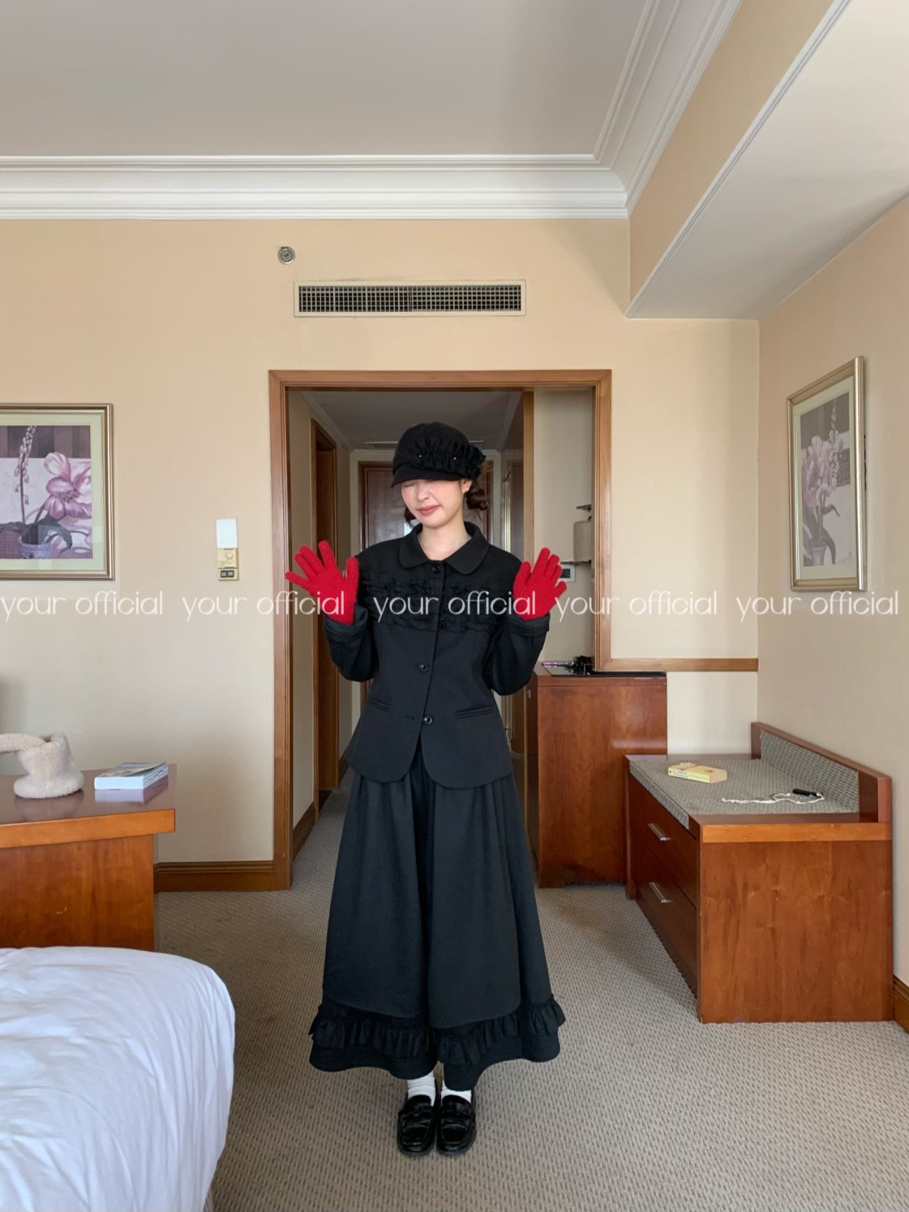 ASAYA5213 – Ruffle Hem Vintage Wide-Leg Skirt 🖤🎀