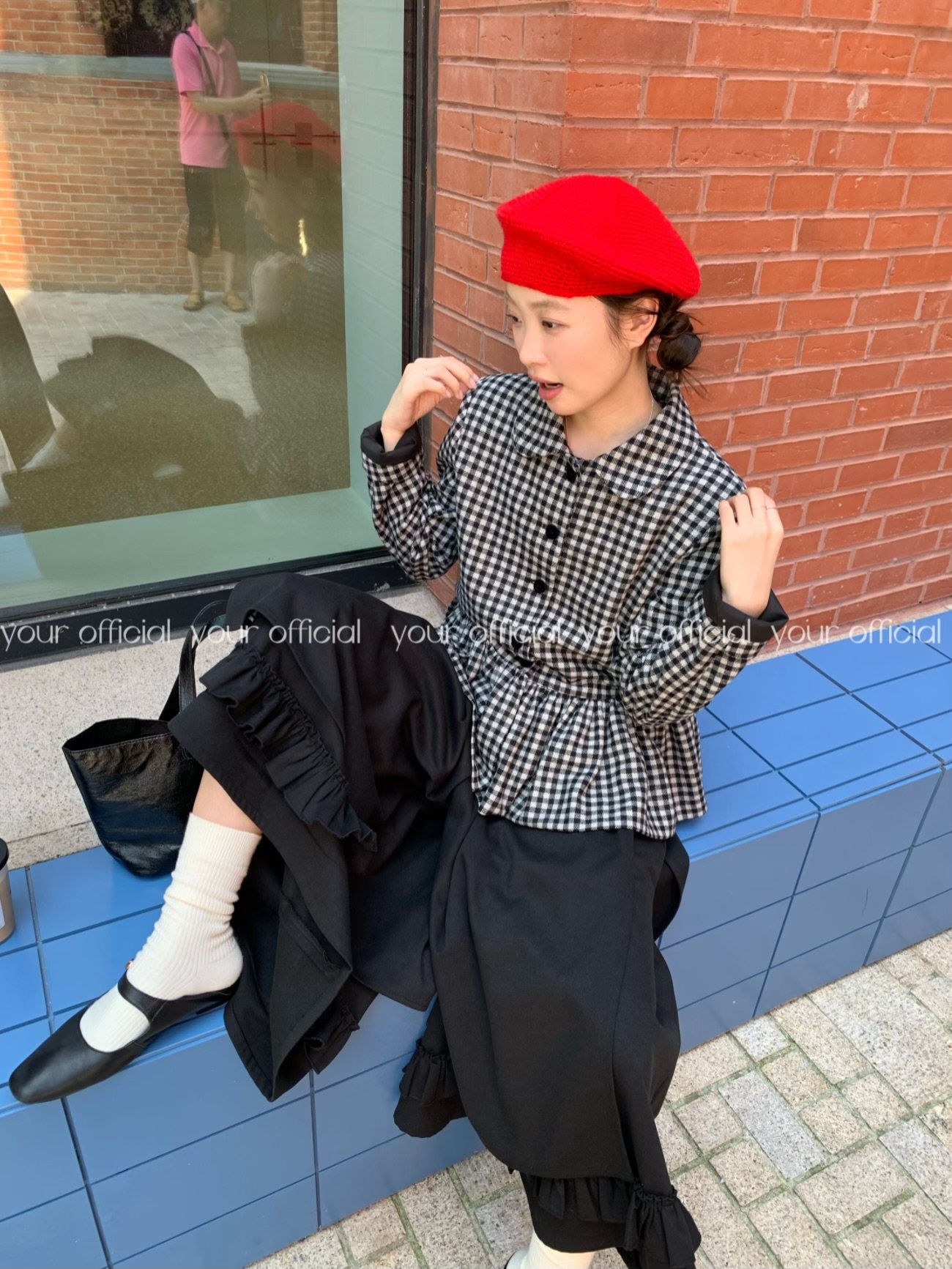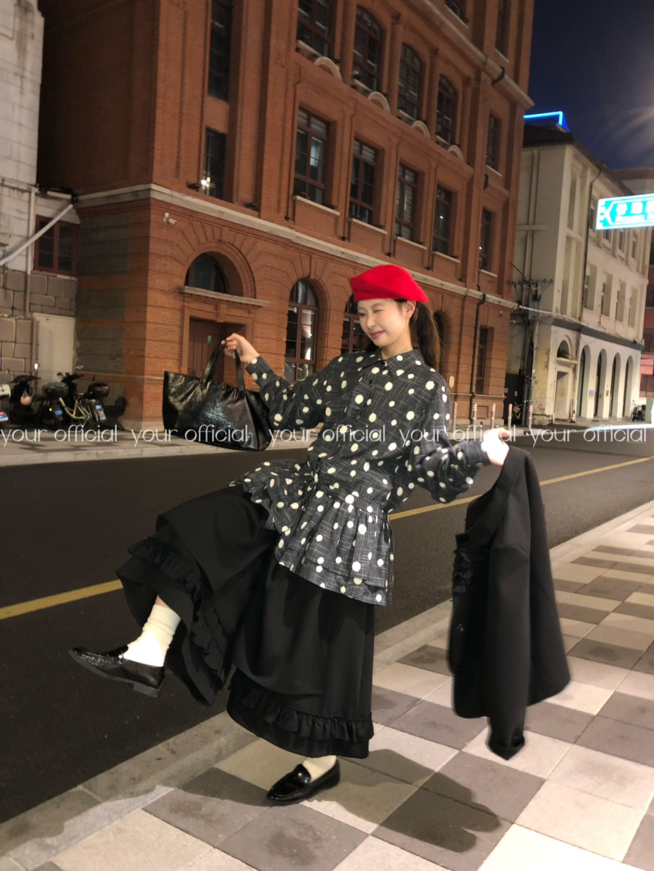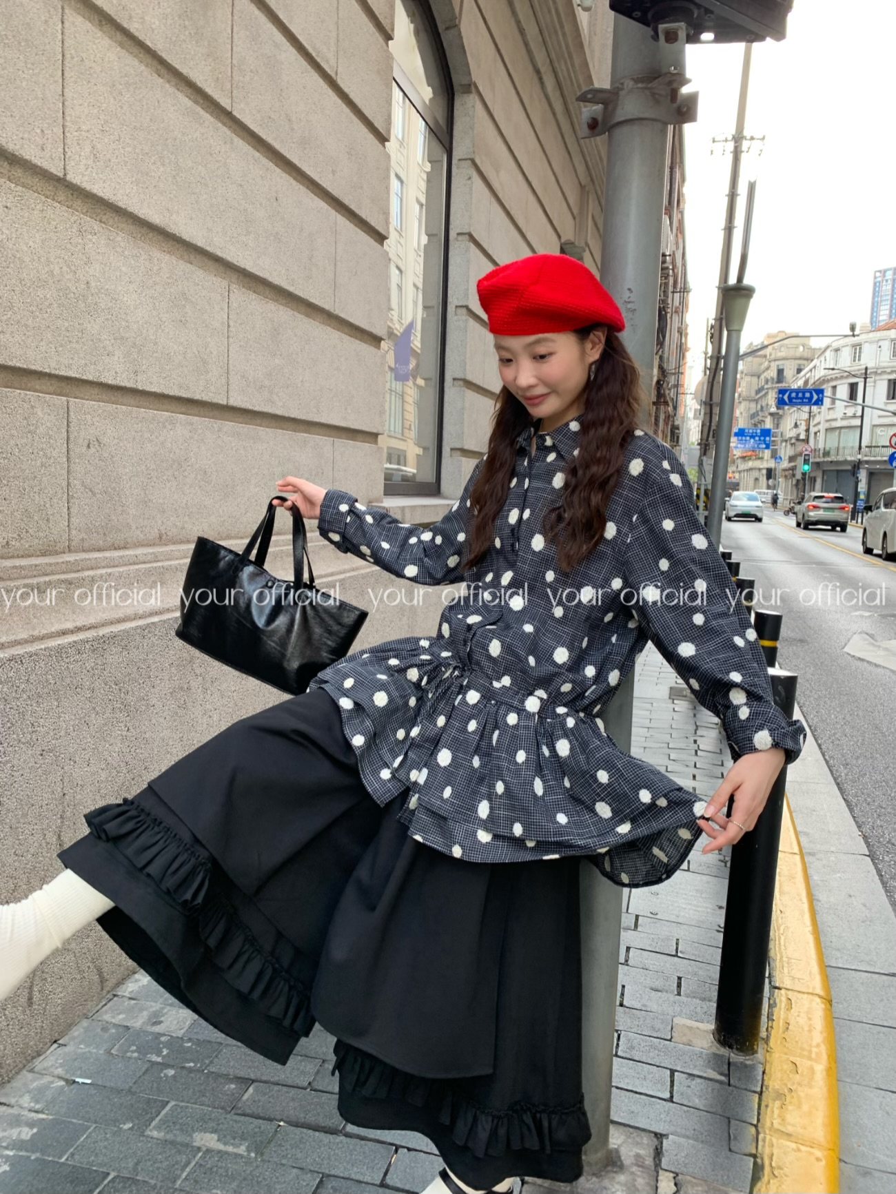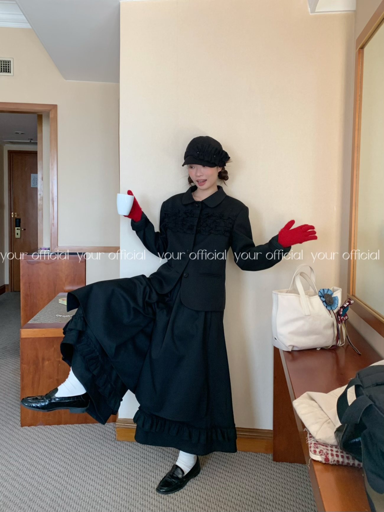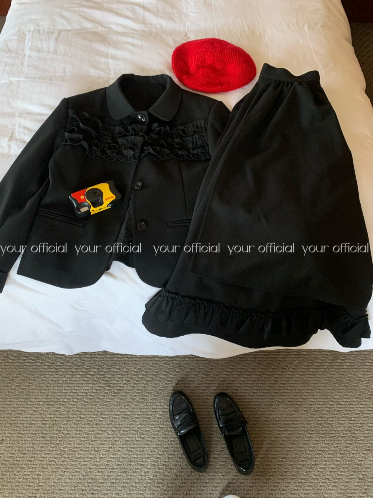 ASAYA5213 – Ruffle Hem Vintage Wide-Leg Skirt 🖤🎀