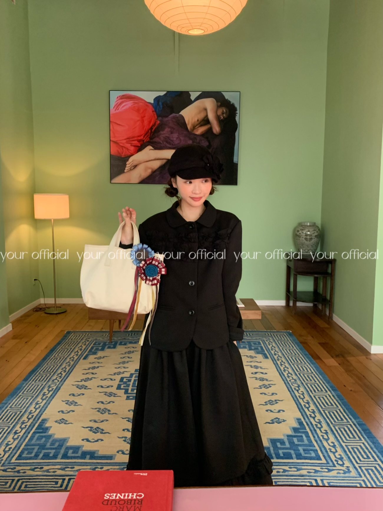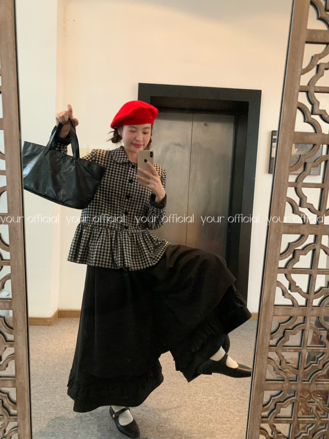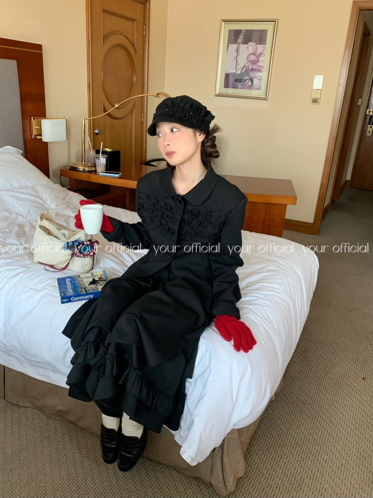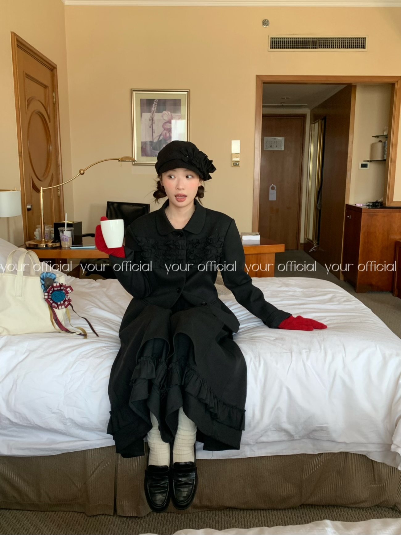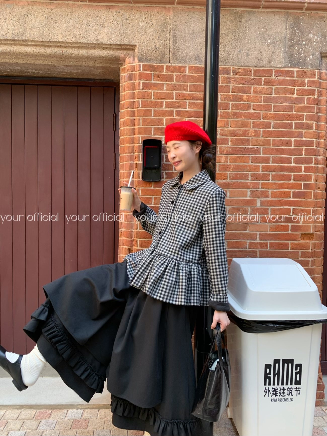 ASAYA5213 – Ruffle Hem Vintage Wide-Leg Skirt 🖤🎀