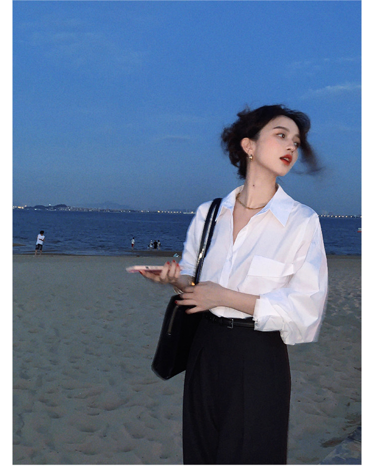 ASAYA5460 – Classic Airy White Shirt 🤍🖤