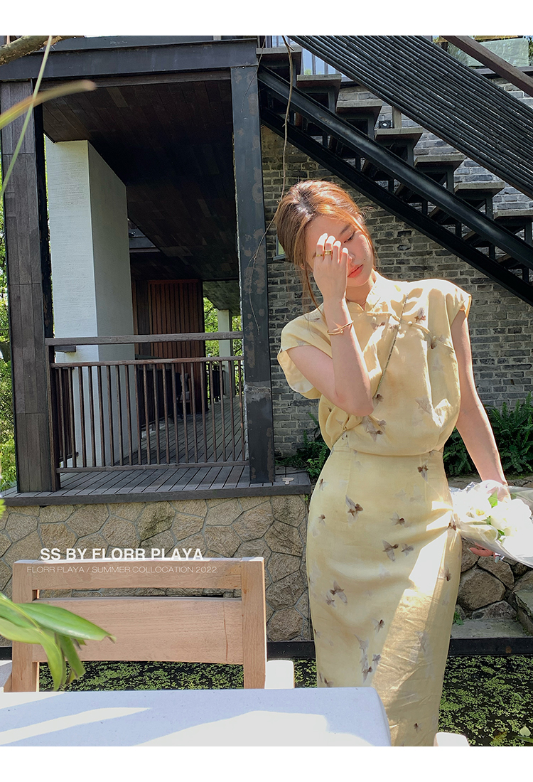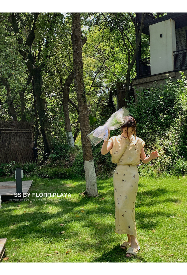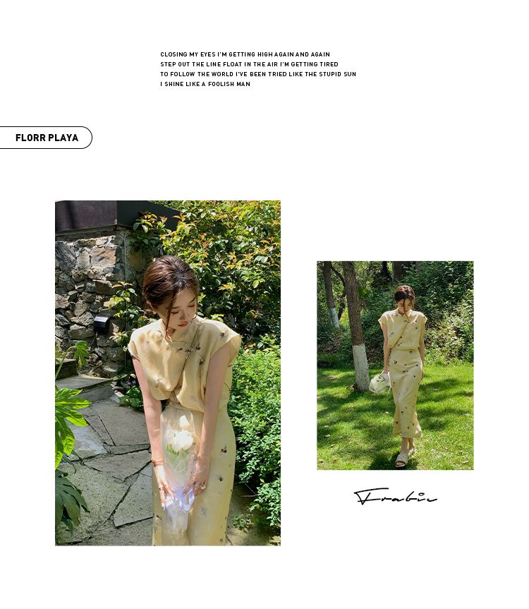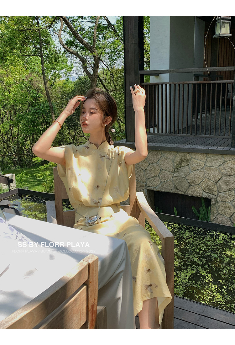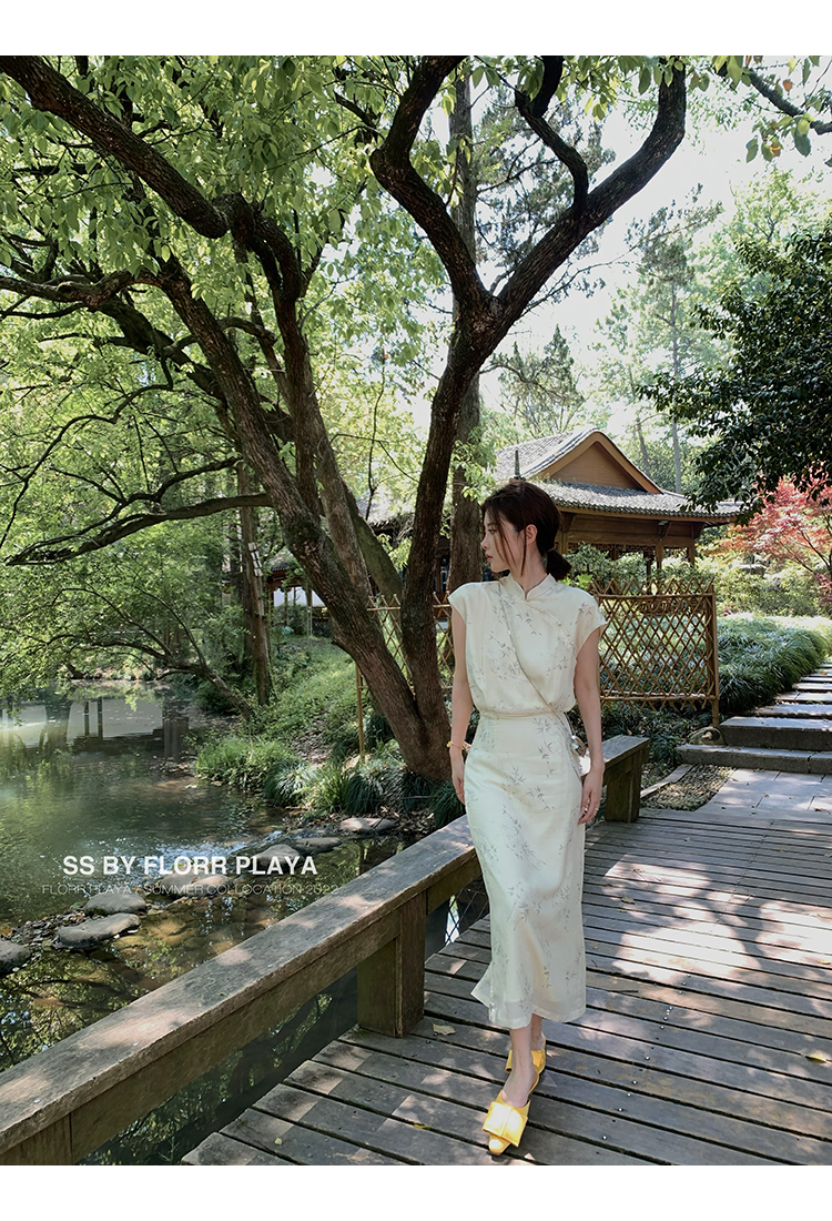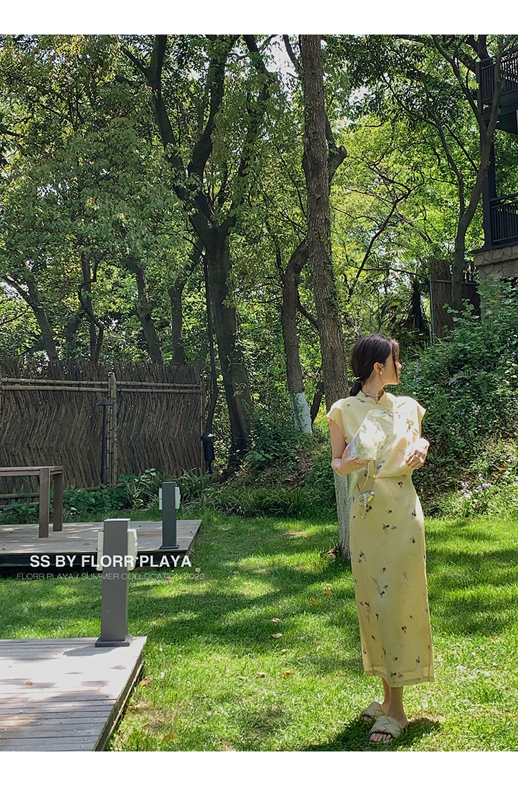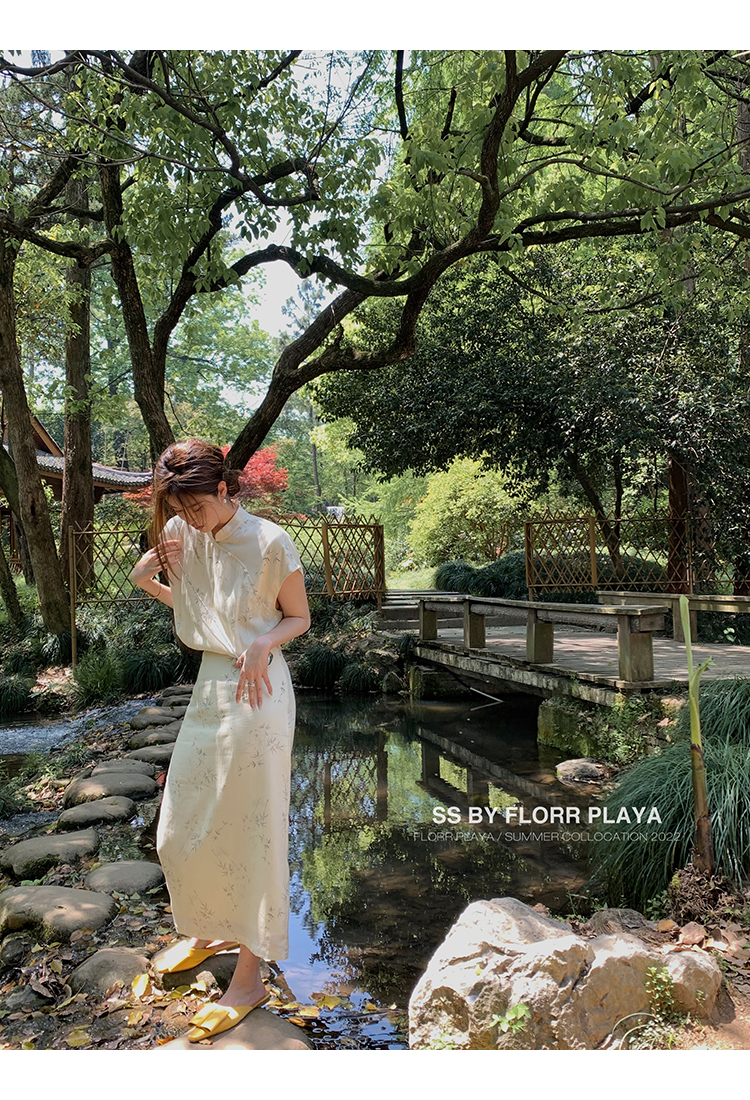 Asaya1001 - Hua Hua Yuan Bi Po Ningxiang Light Yellow New Chinese Short sleeved Dress for Women s Spring and Summer Cheongsam Improved Hip Wrapping Skirt