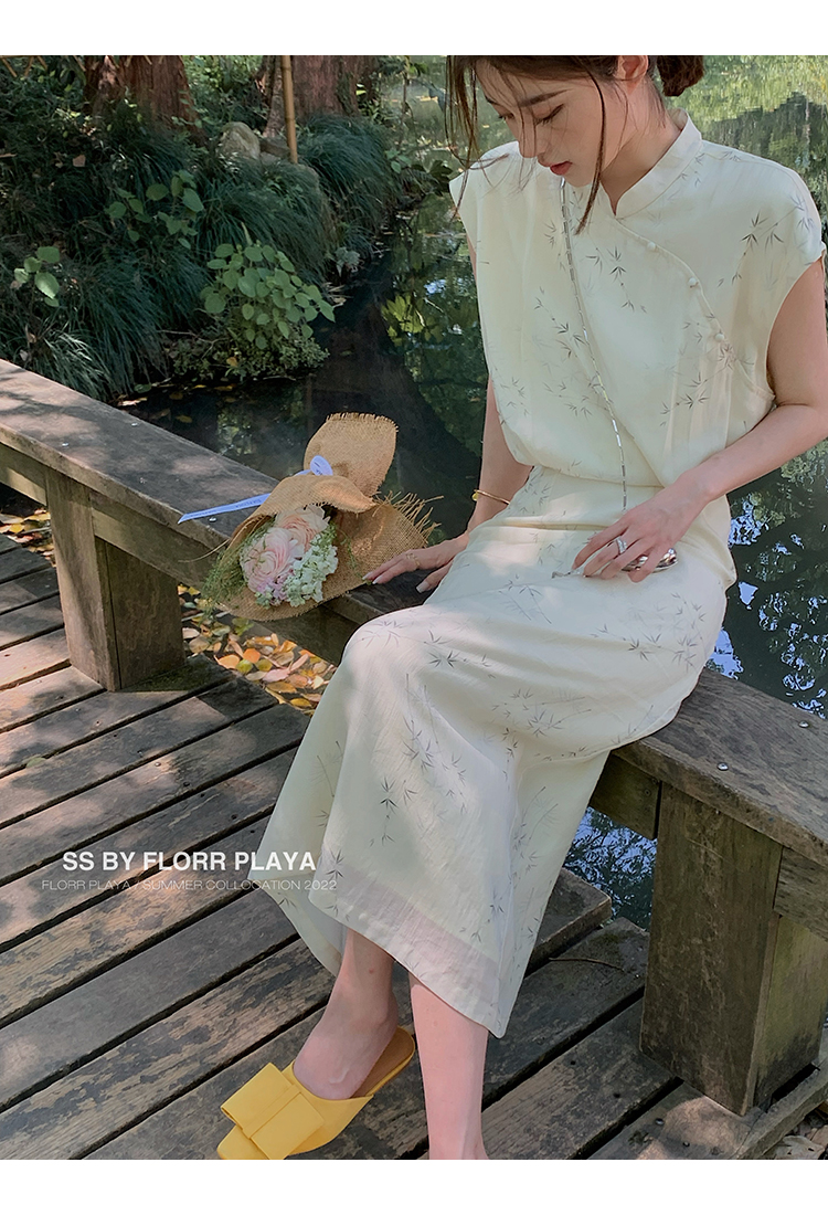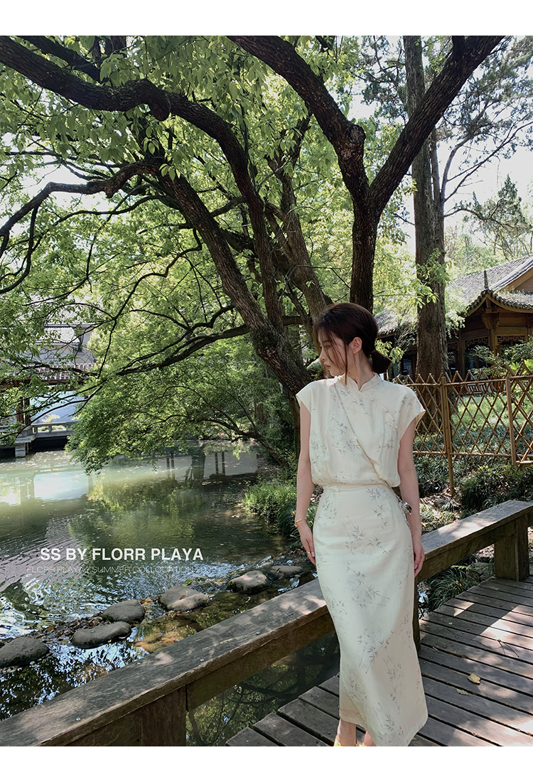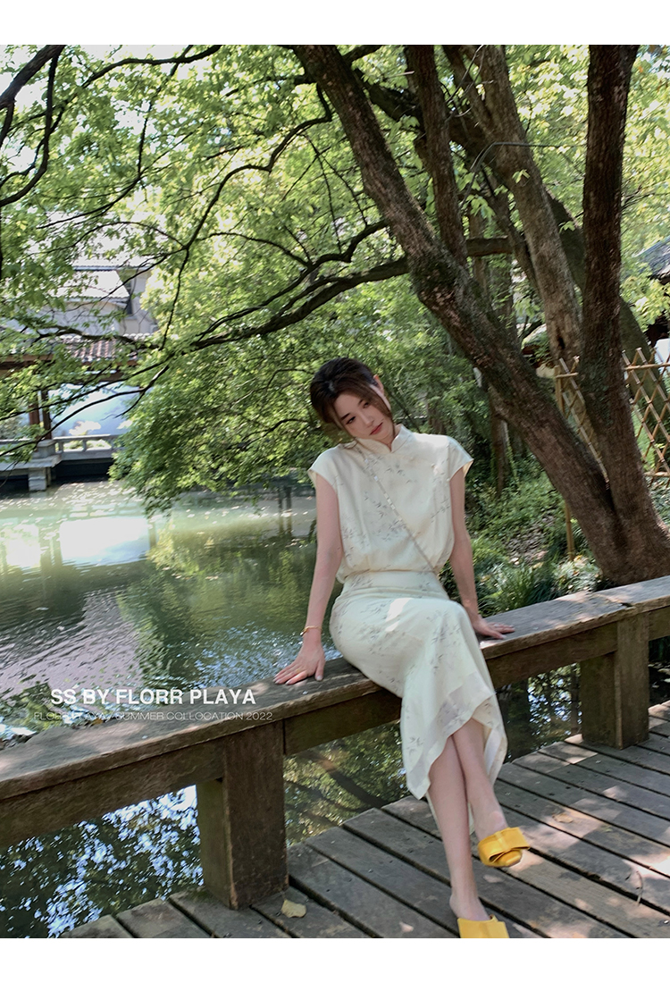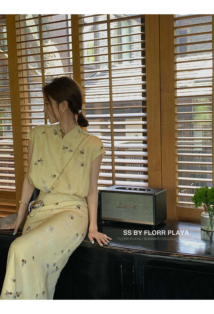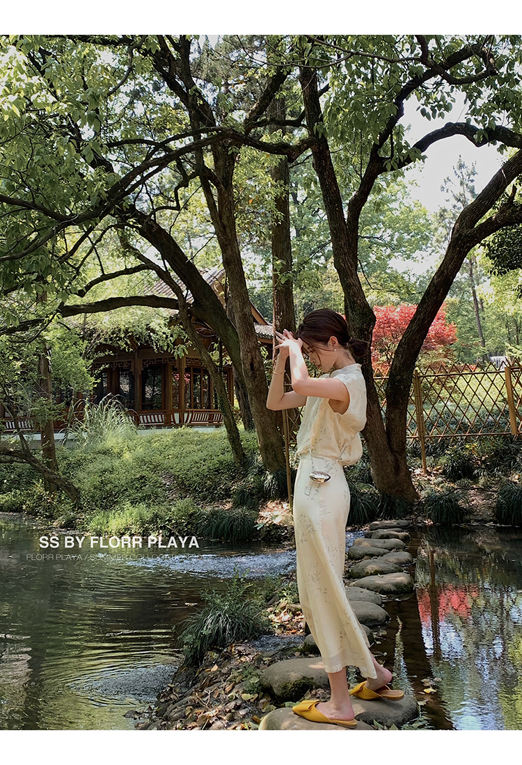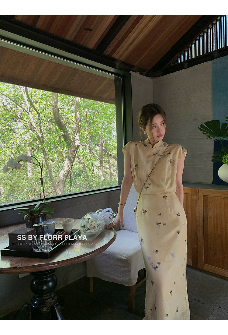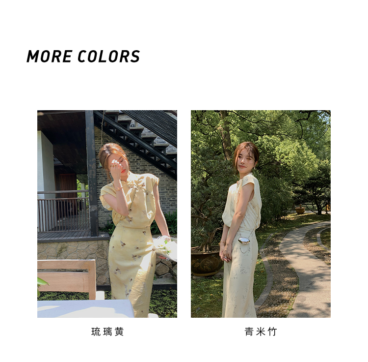 Asaya1001 - Hua Hua Yuan Bi Po Ningxiang Light Yellow New Chinese Short sleeved Dress for Women s Spring and Summer Cheongsam Improved Hip Wrapping Skirt