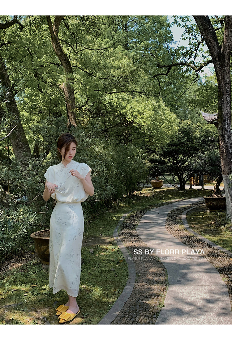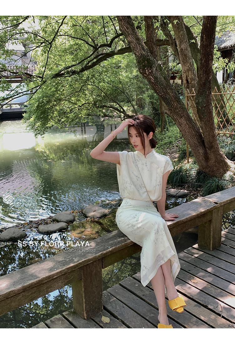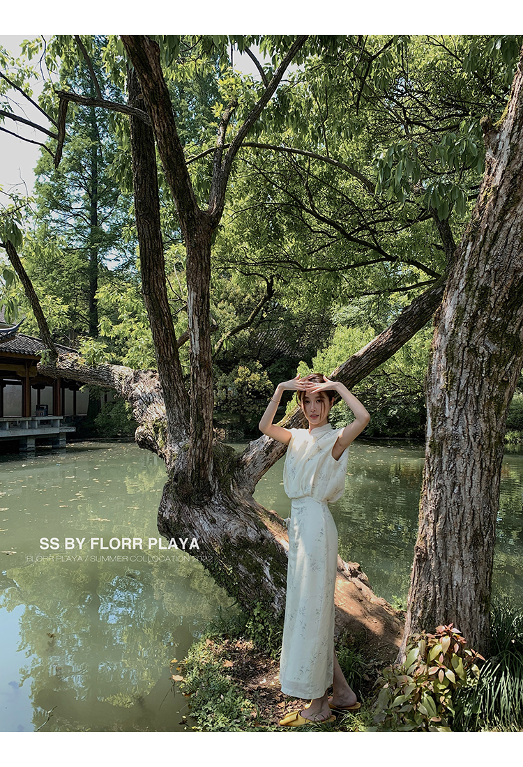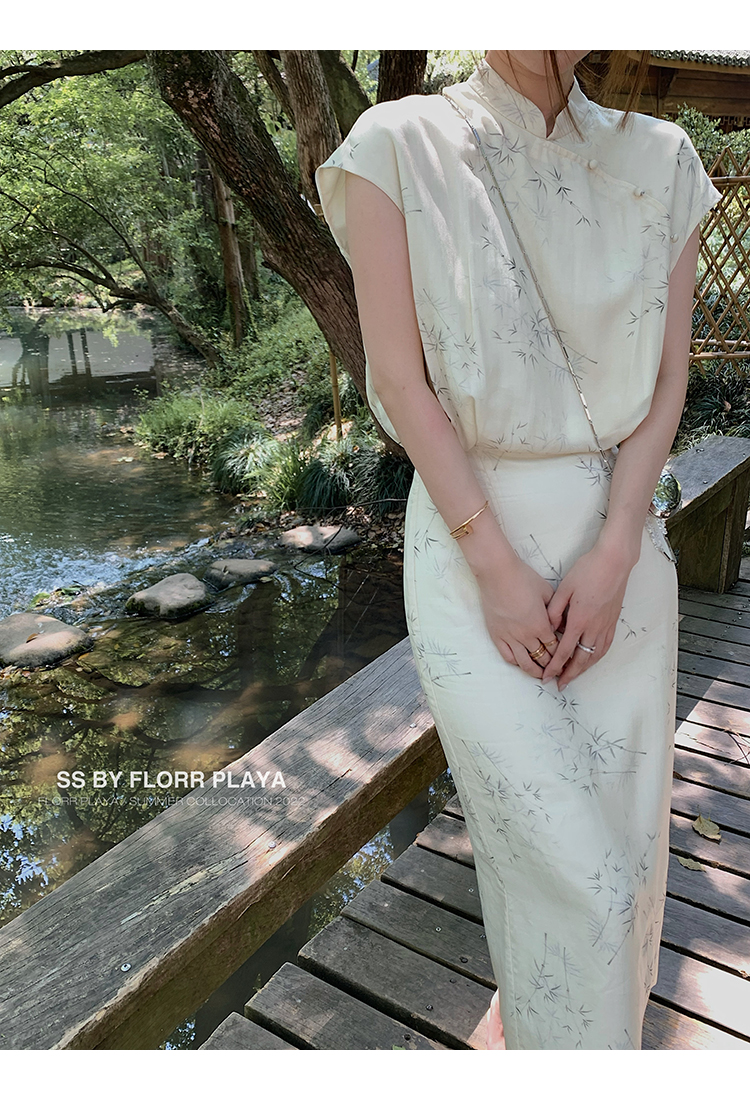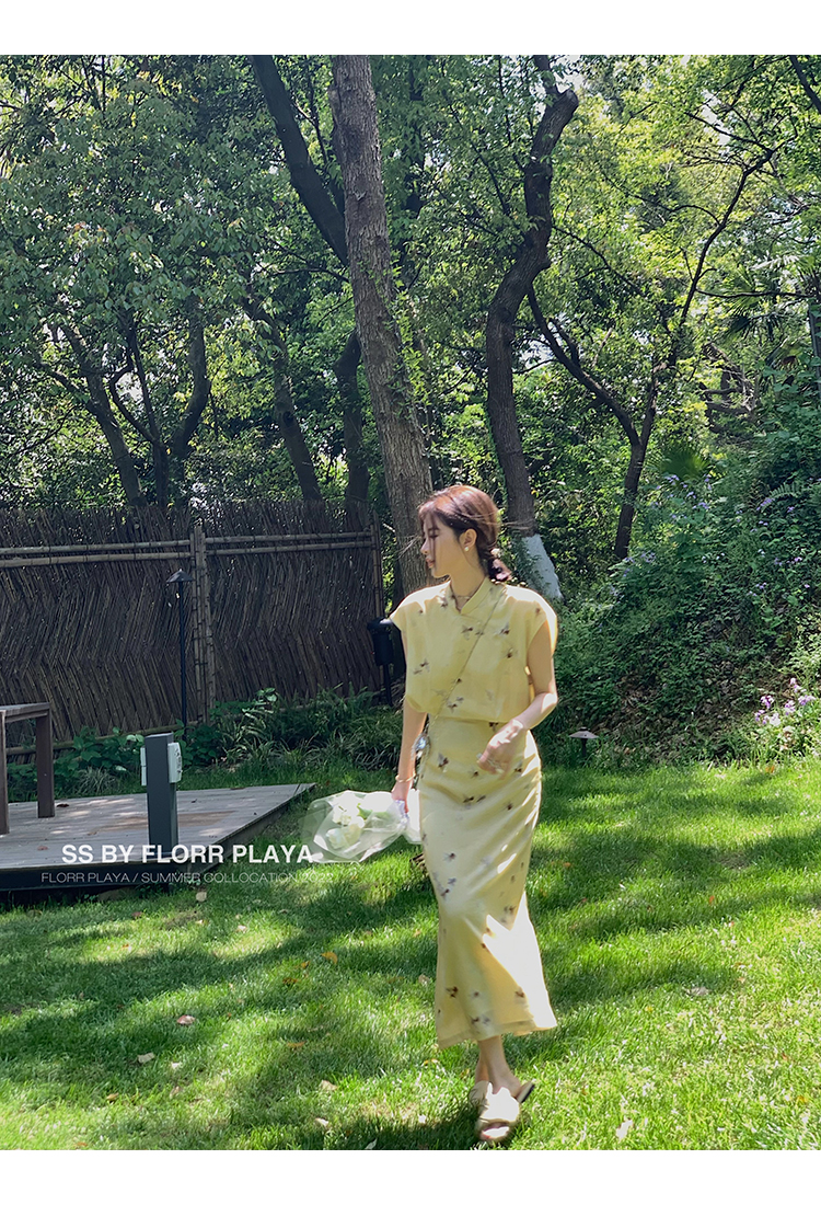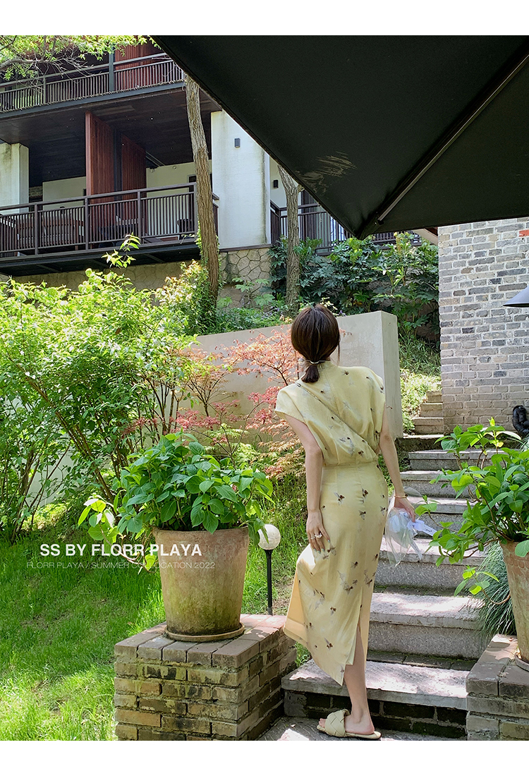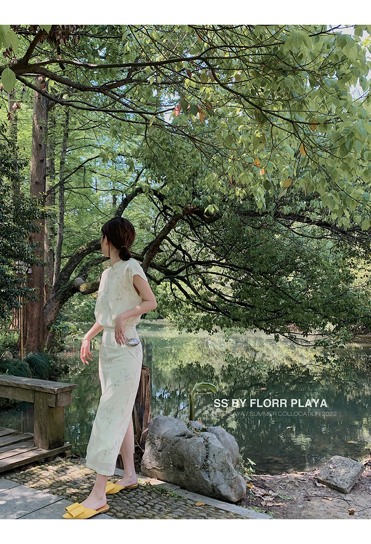 Asaya1001 - Hua Hua Yuan Bi Po Ningxiang Light Yellow New Chinese Short sleeved Dress for Women s Spring and Summer Cheongsam Improved Hip Wrapping Skirt