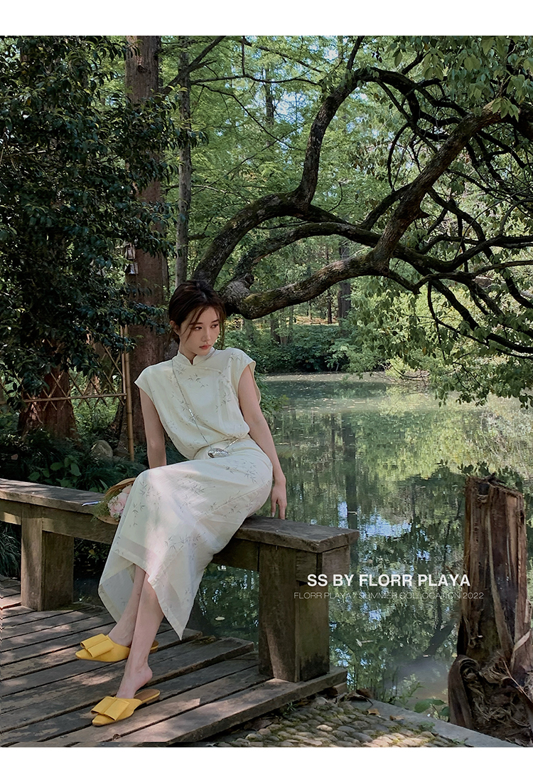 看了这么多改良旗袍,我觉得上半身宽松结合下半身的直身版型更日常也更不落俗。为了实现腰部自然的兜量,腰围和臀围都打的非常合体,但还要保证拉链的长度能够自然的穿脱不卡臀,所以我们的拉链都是特别定制的加长款,光拉链都需要定制一个礼拜的时间!