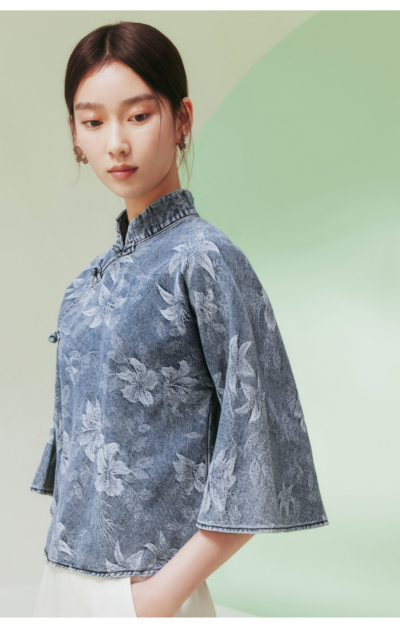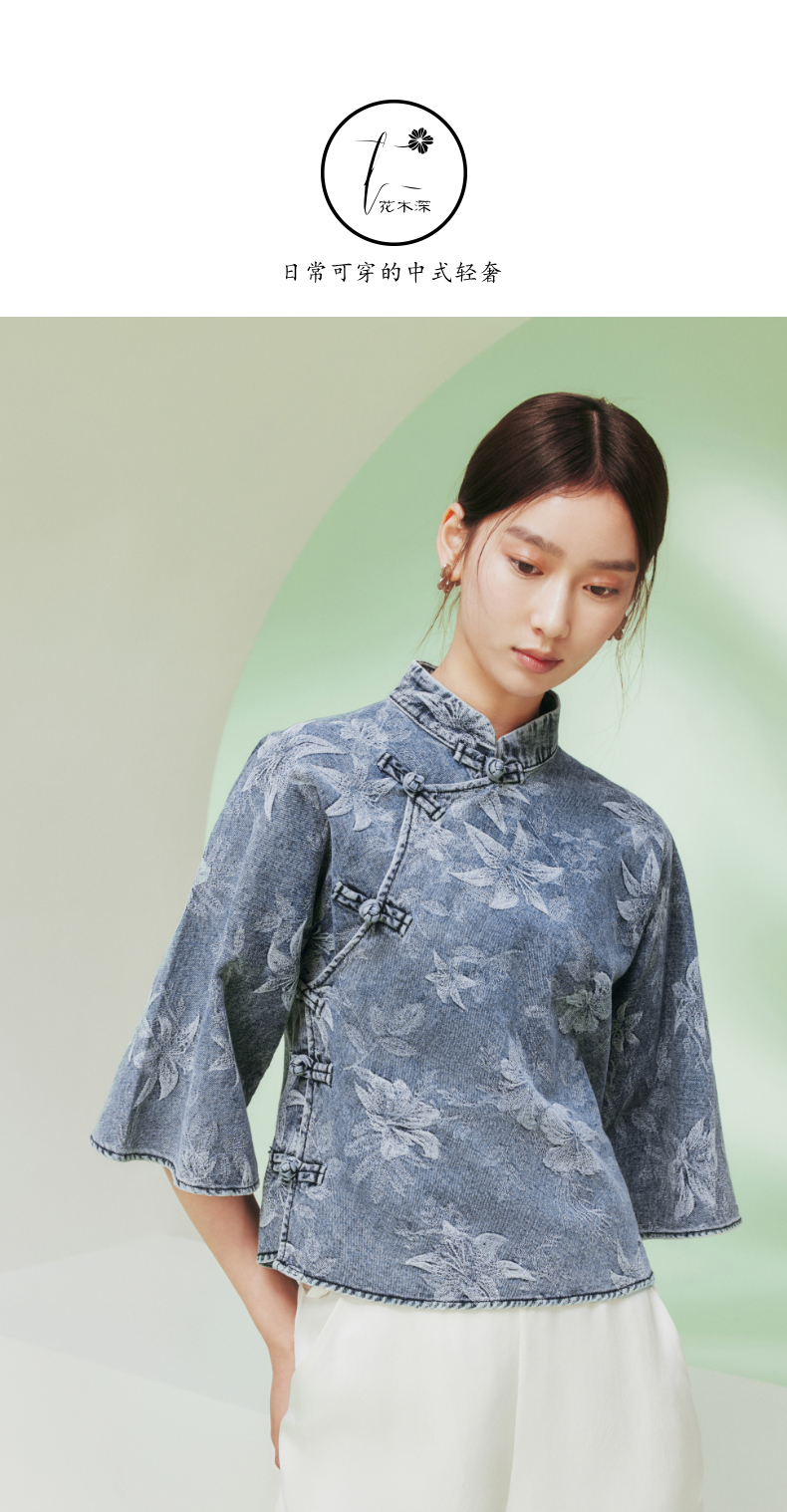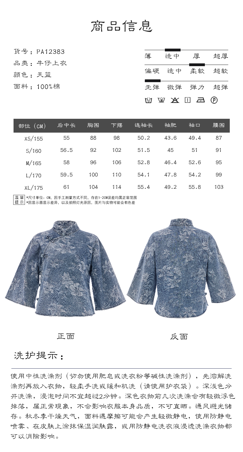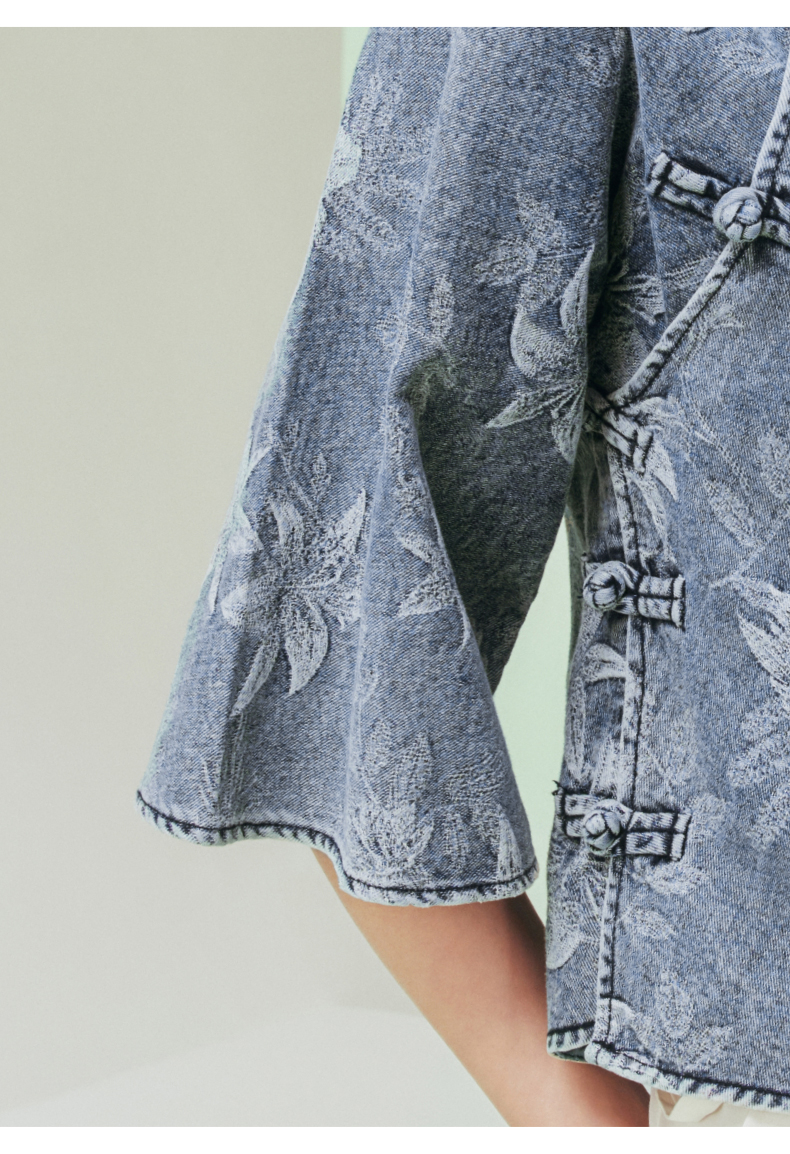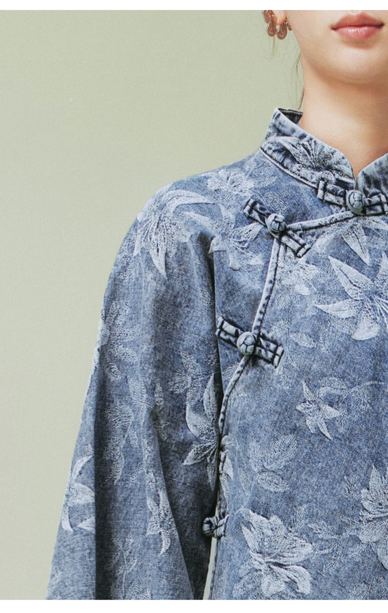 ASAYA1685 Huamu deep Chinese style cotton denim jacket women's retro stand collar buckle jacket new jacquard