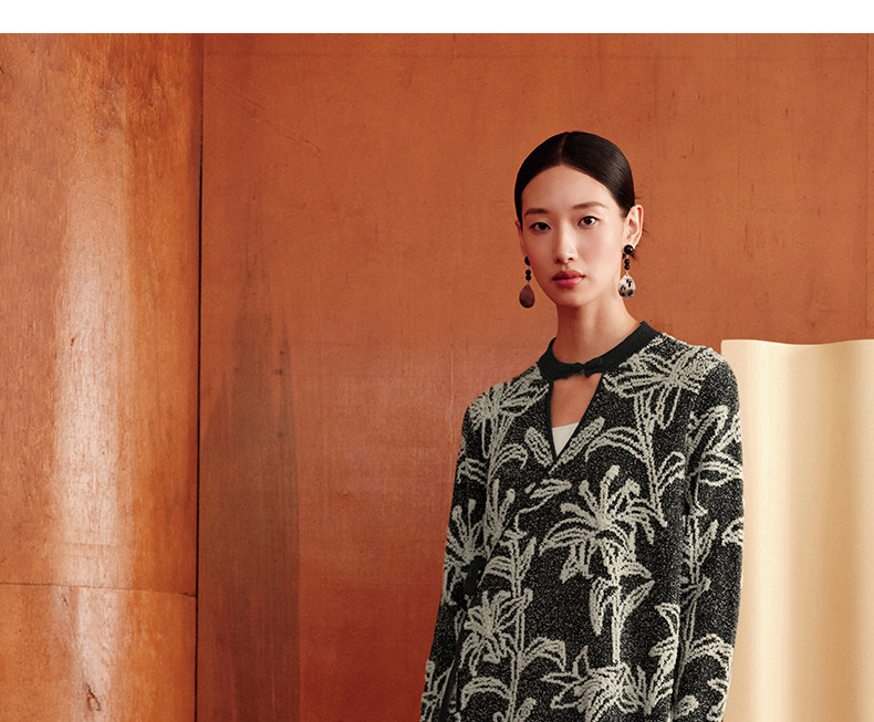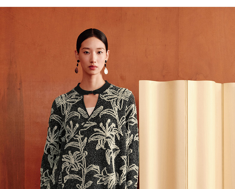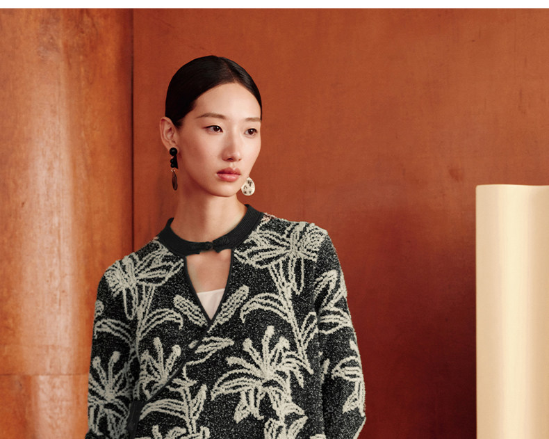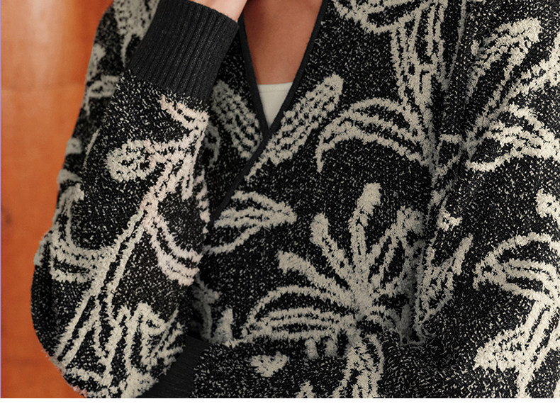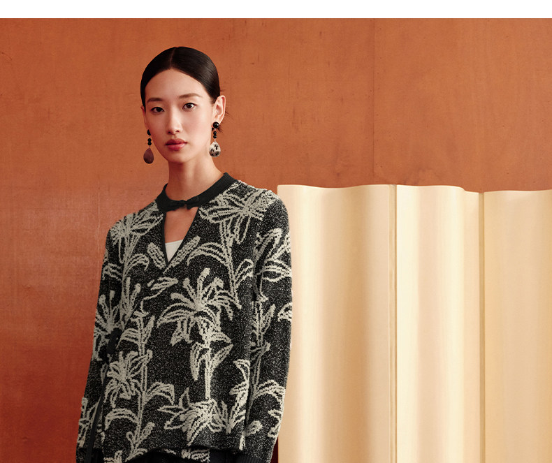 ASAYA5484 – Floral Jacquard Knit Top 🌿🖤