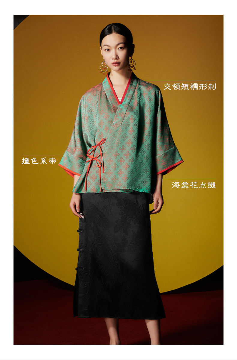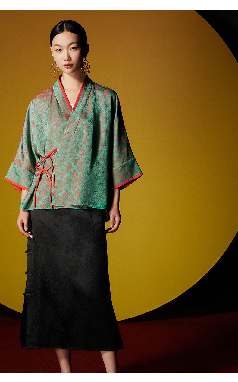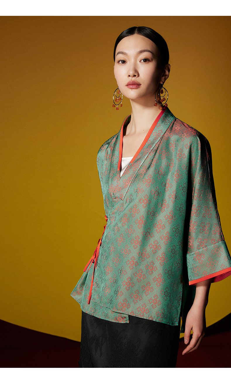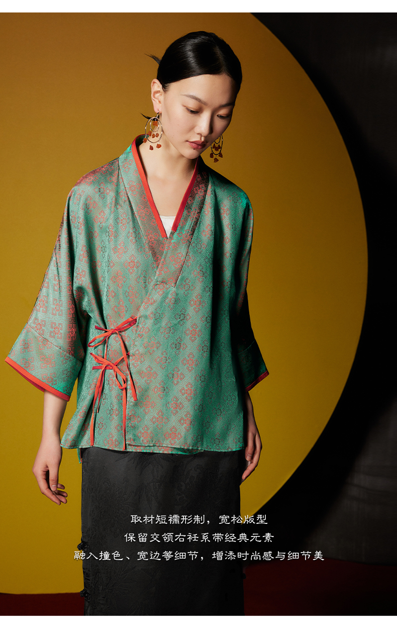 ASAYA3062 New Chinese style short coat cross collar diagonal placket jacquard top