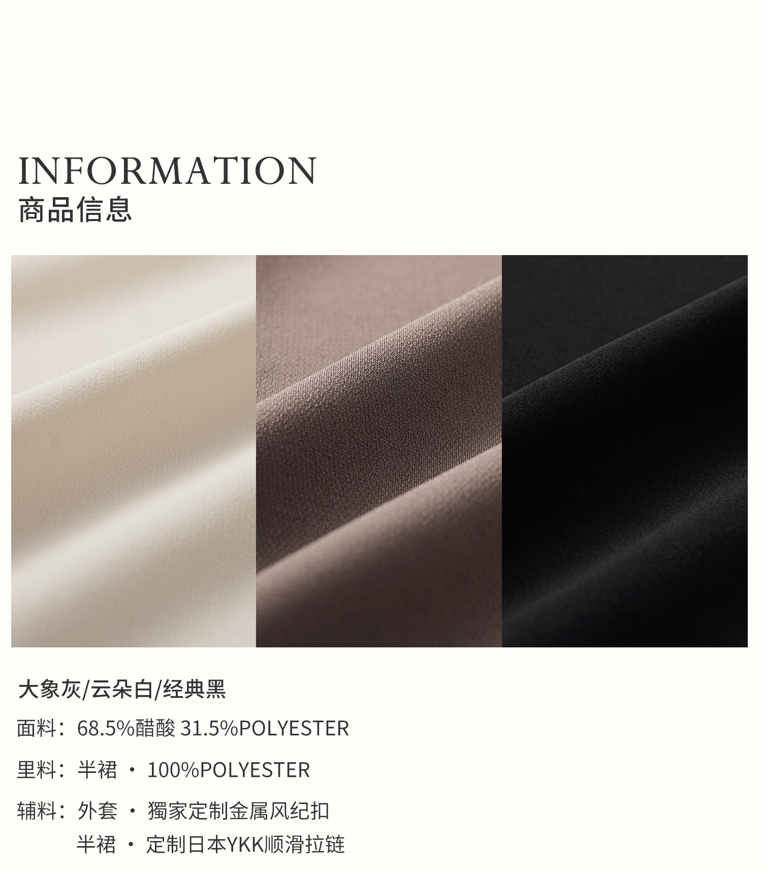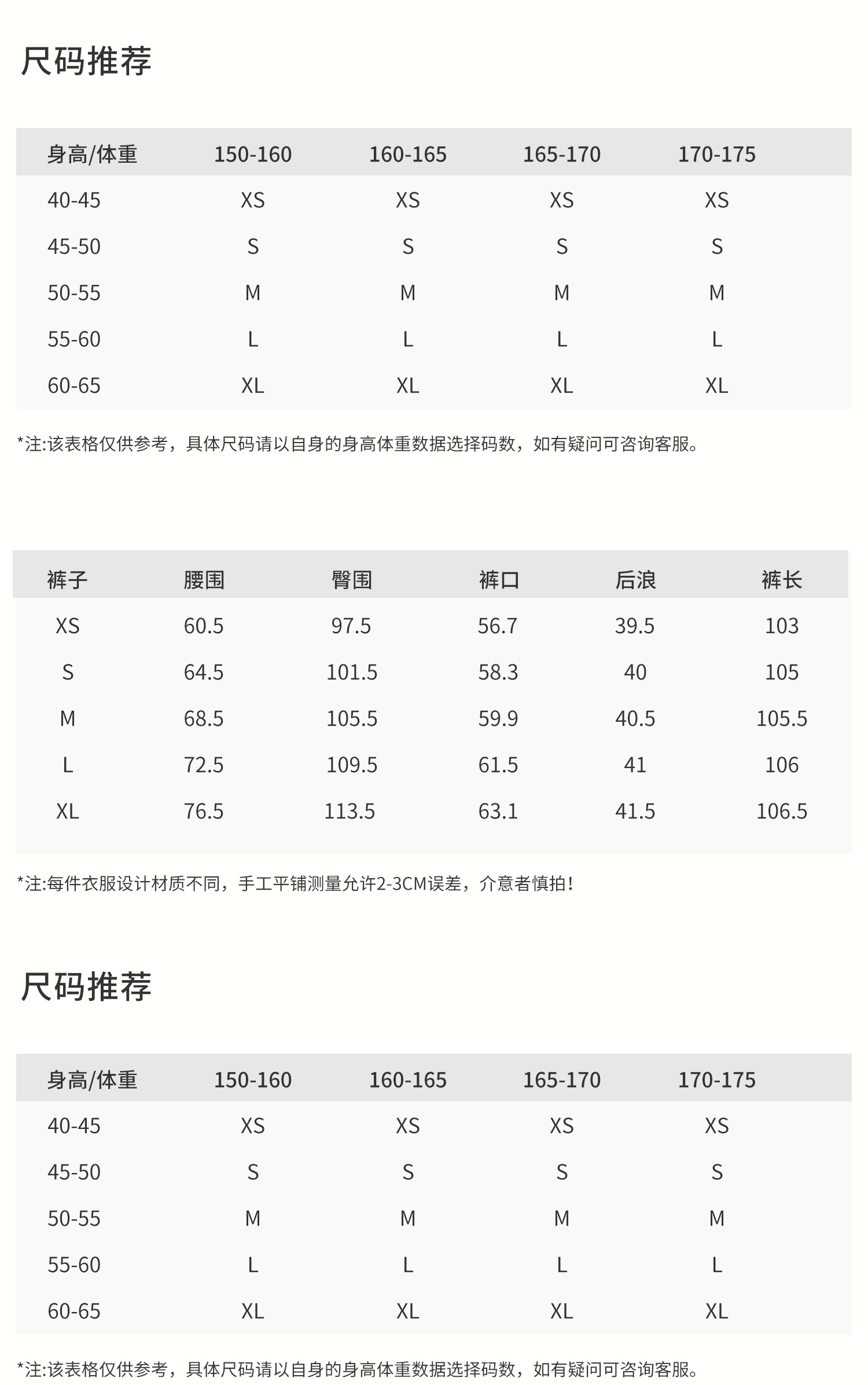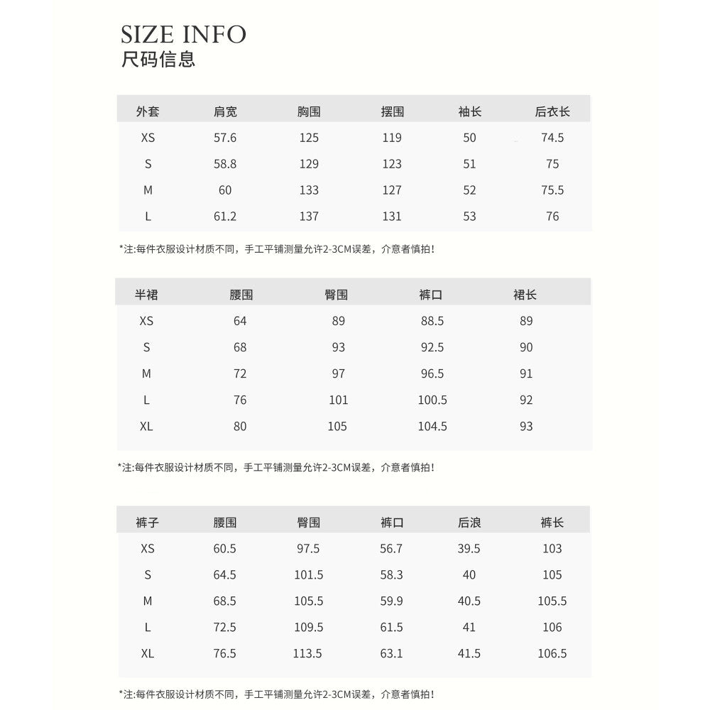 Color classification | Cloud white long pants, cloud white half skirt, cloud white jacket, elephant gray long pants, elephant gray half skirt, elephant gray jacket, classic black long pants, classic black half skirt, classic black jacket, size chart. For more information, please contact customer service. Join the group to enjoy a 78% discount on each new item |