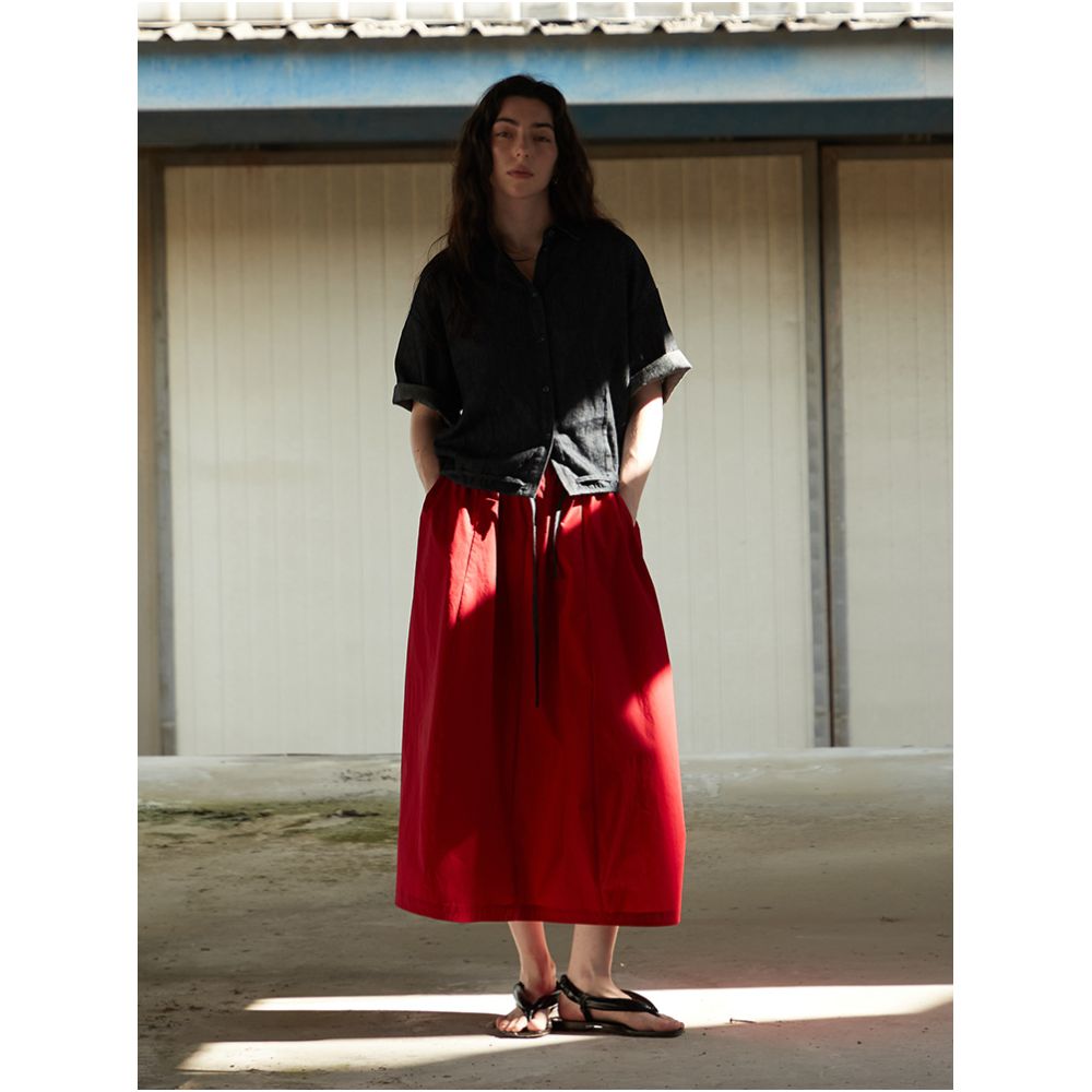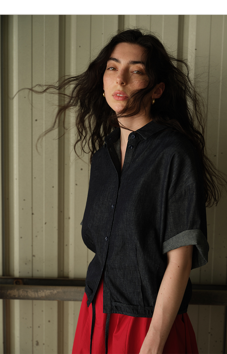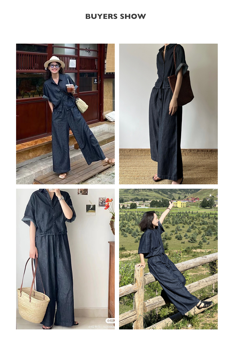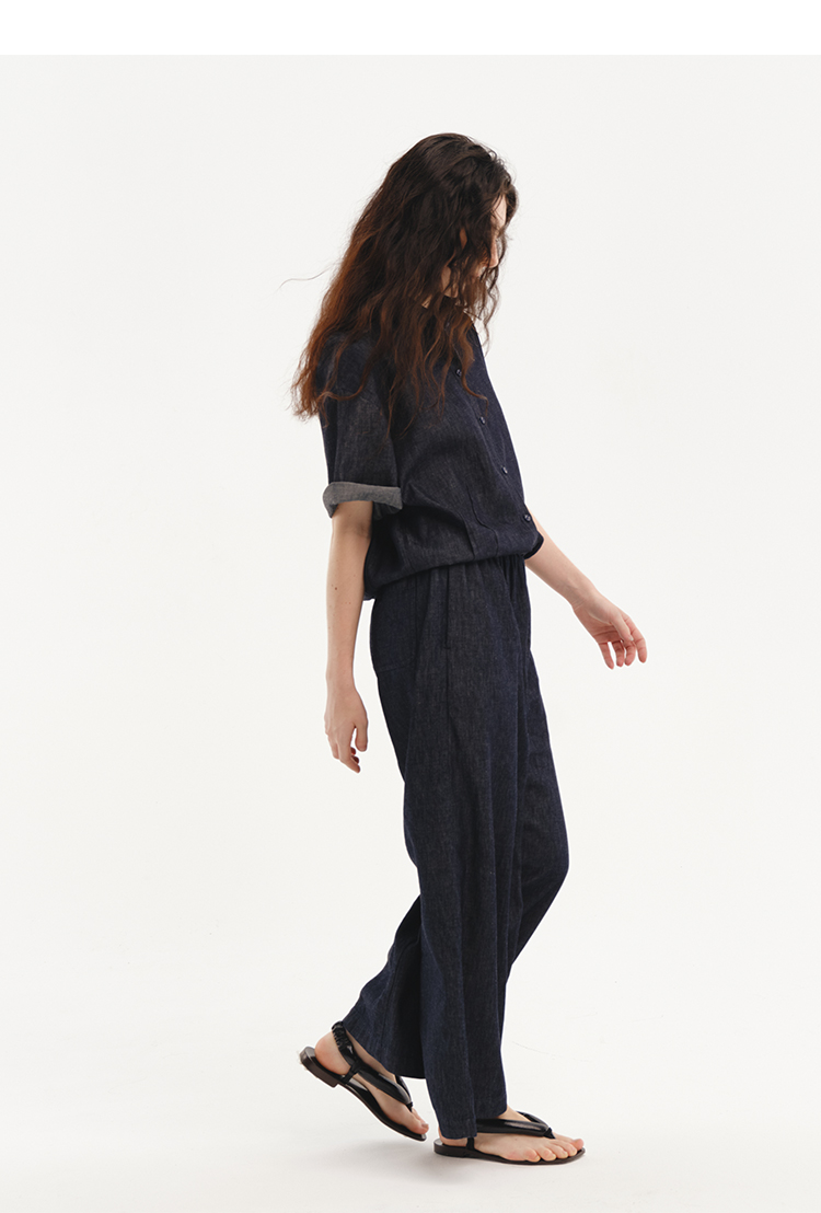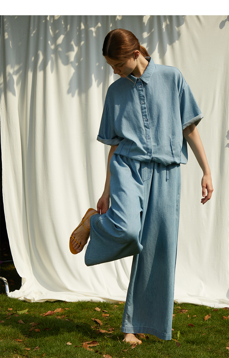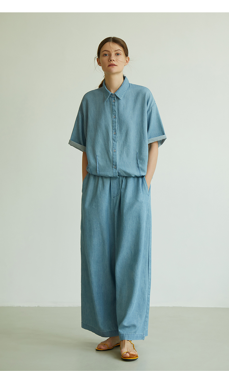 Asaya1399 - ItoshIroshI deep indigo washed denim cotton thin soft classic lapel short drawstring loose shirt jacket