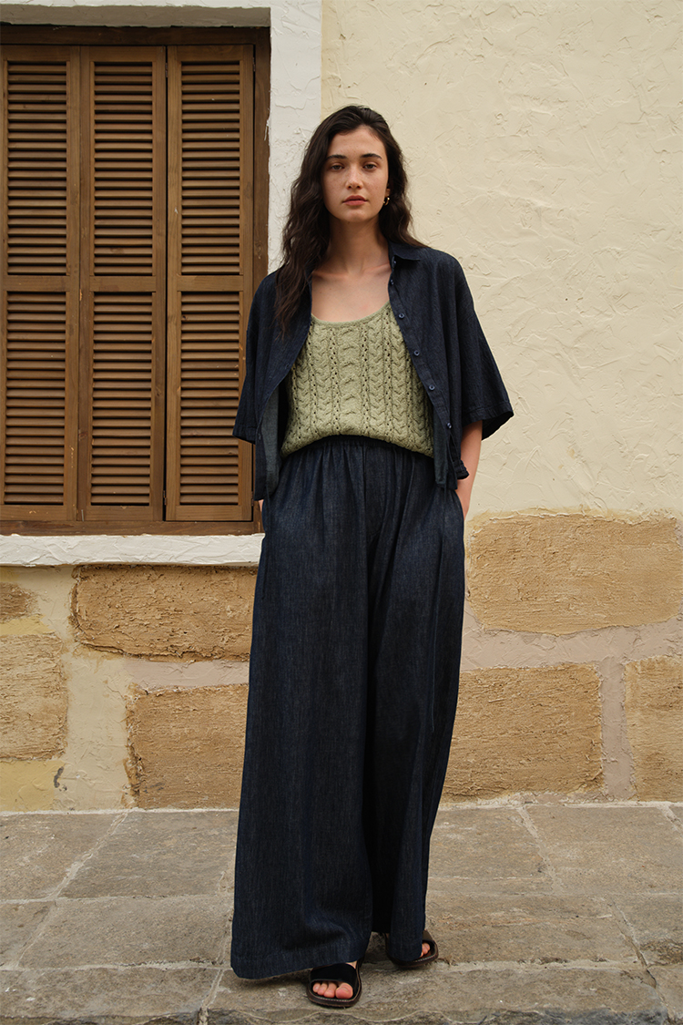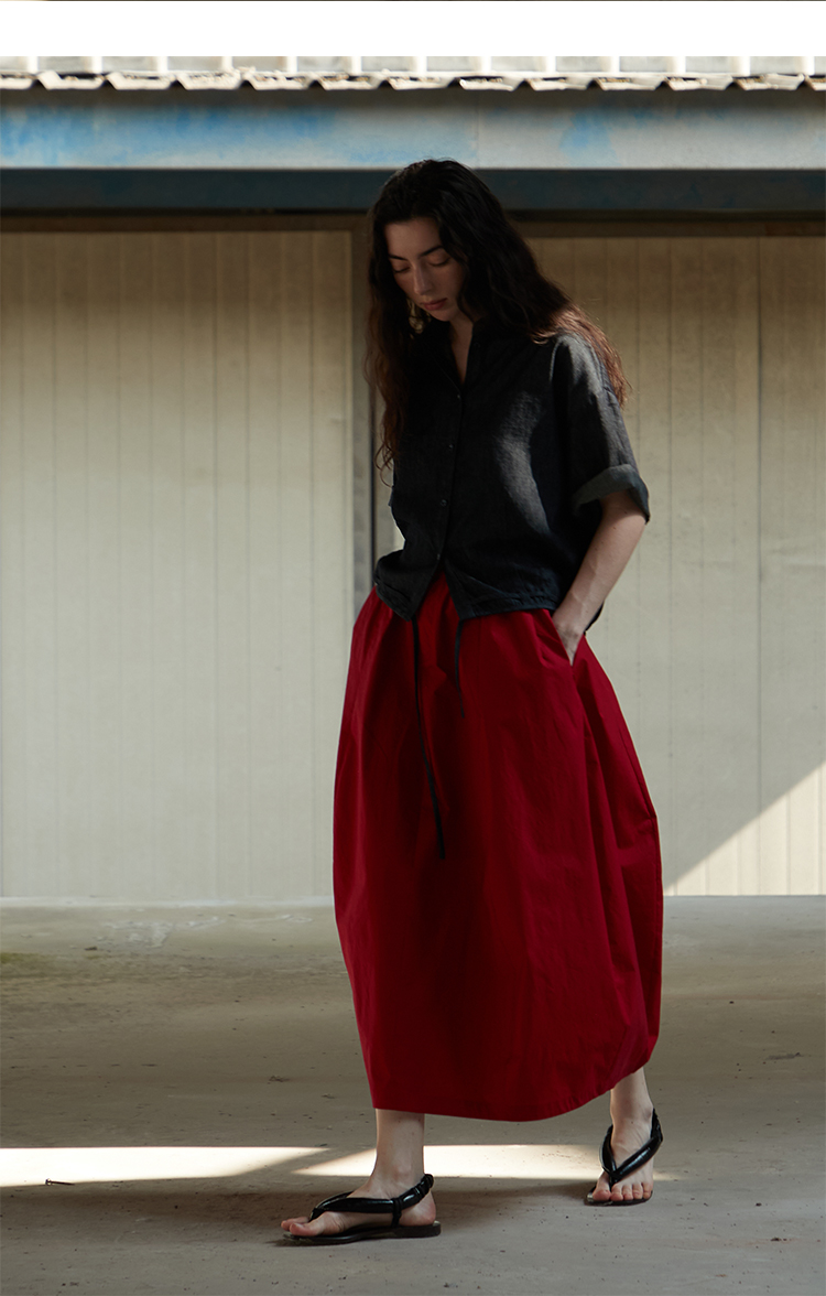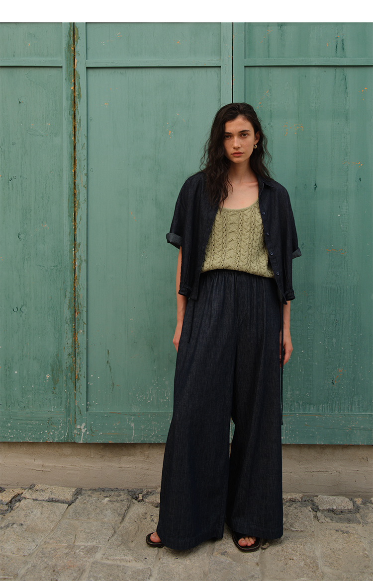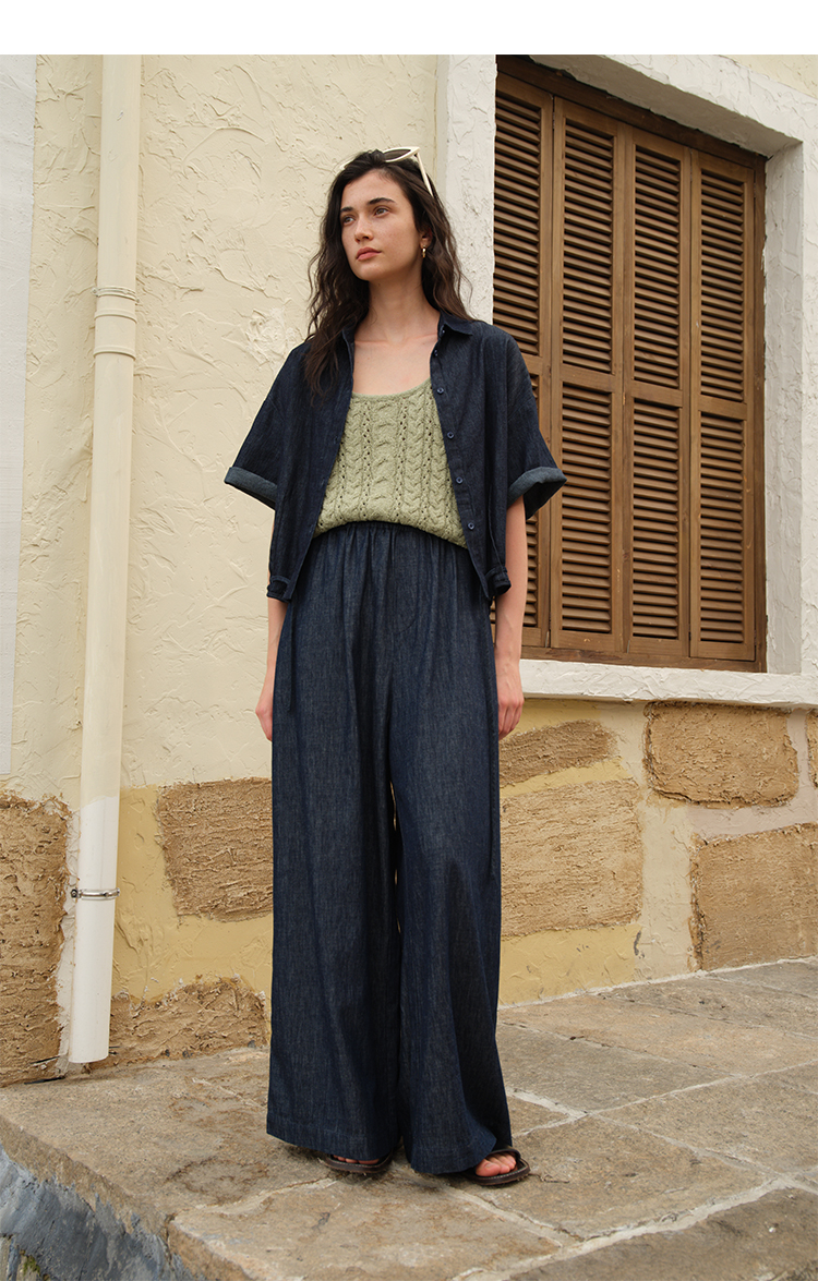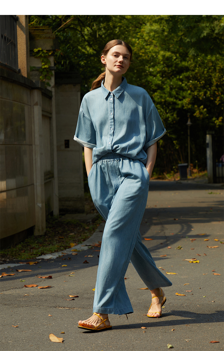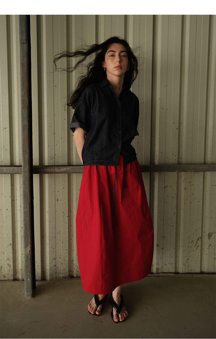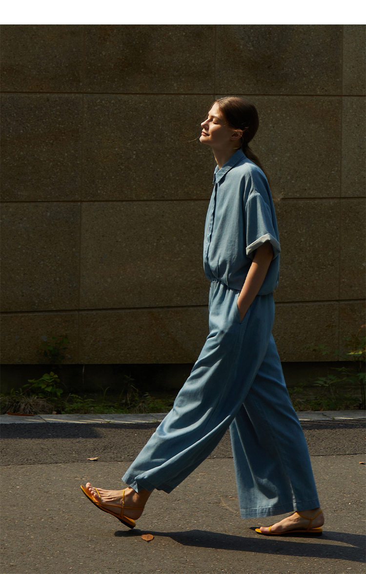Asaya1399 - ItoshIroshI deep indigo washed denim cotton thin soft classic lapel short drawstring loose shirt jacket