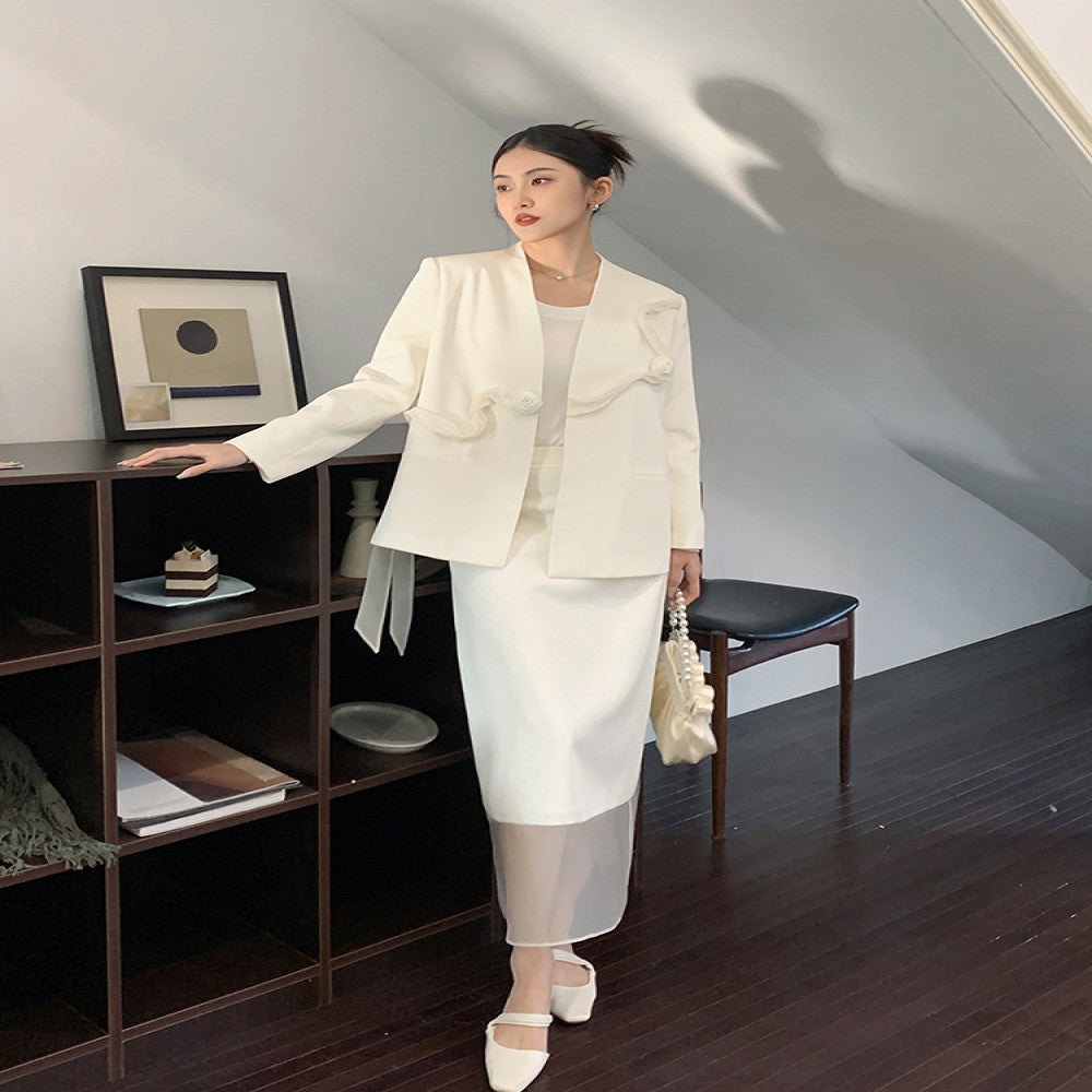ASAYA-3760: Elegant White Rose Blazer 🌹🤍