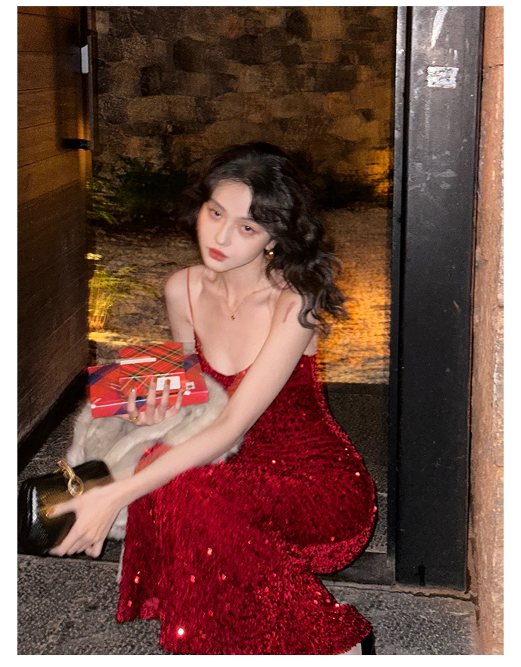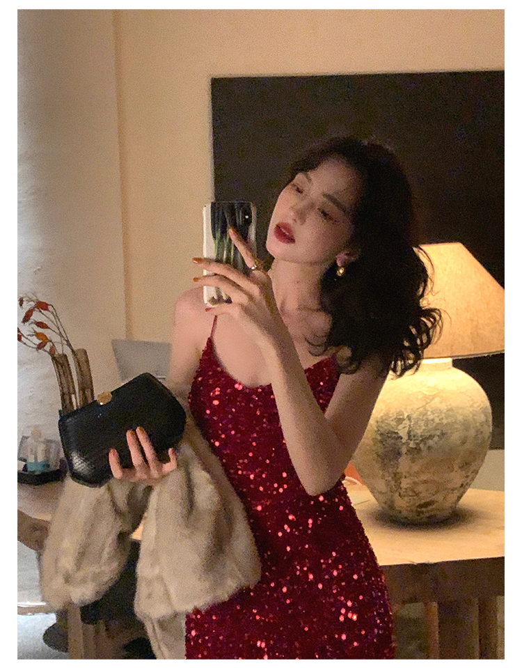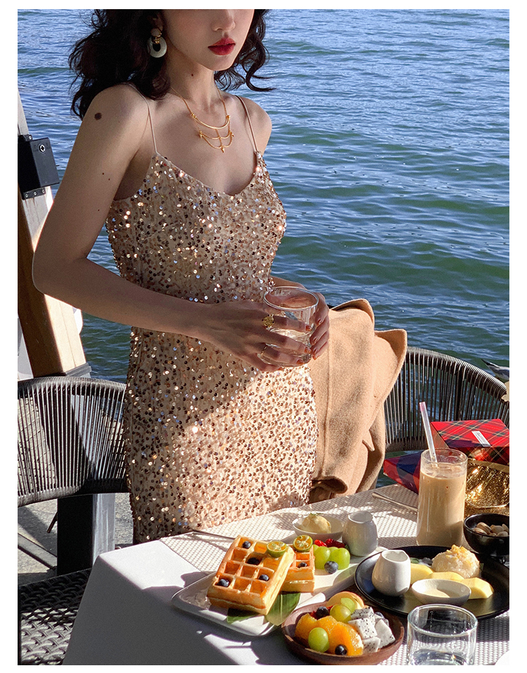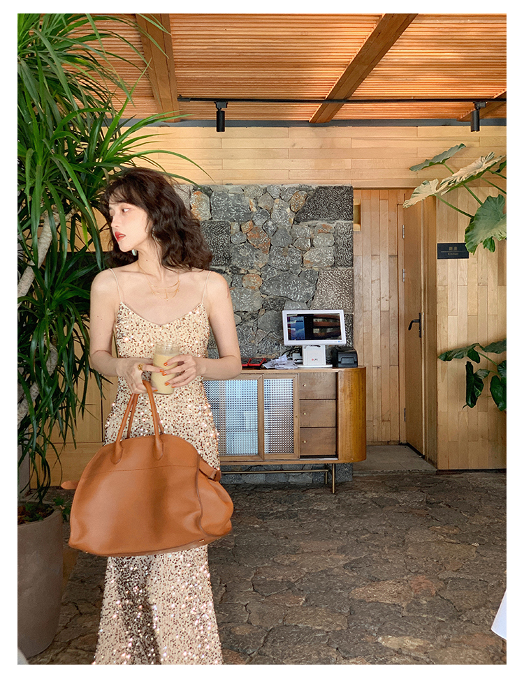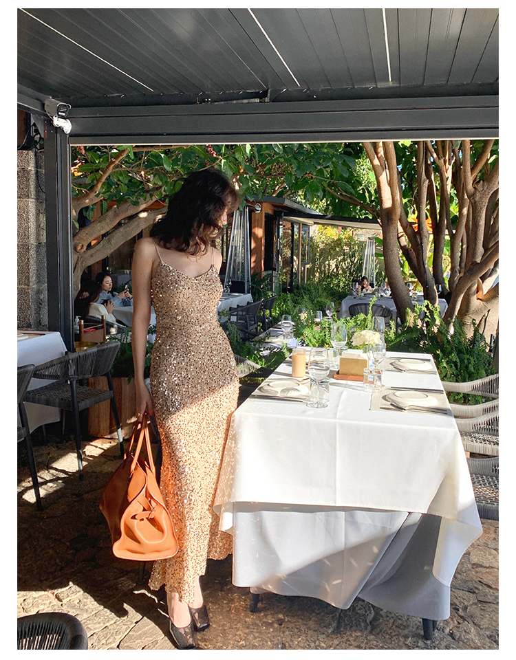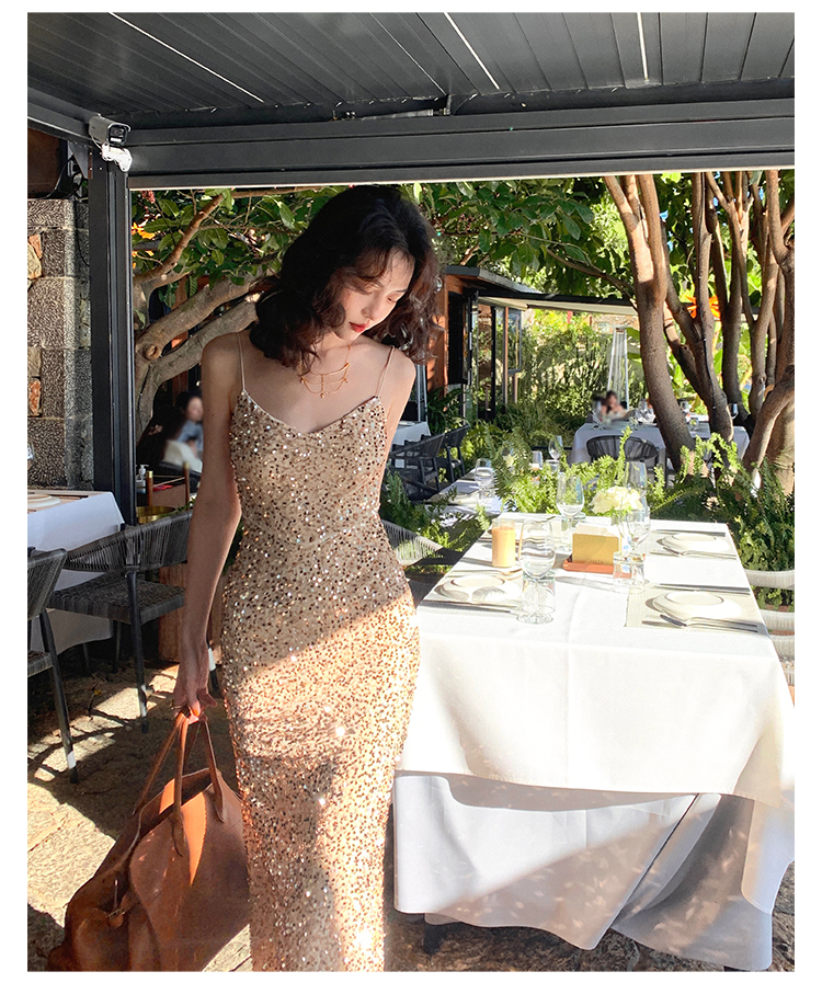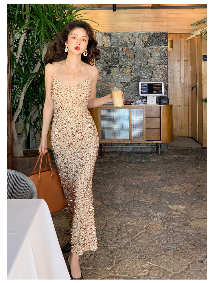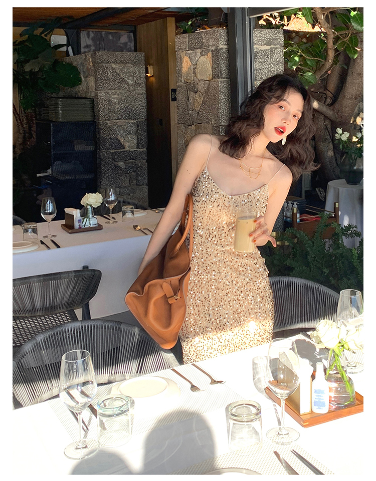 ASAYA3104 V-neck high waist, slim hip-hugging suspender A-line dress