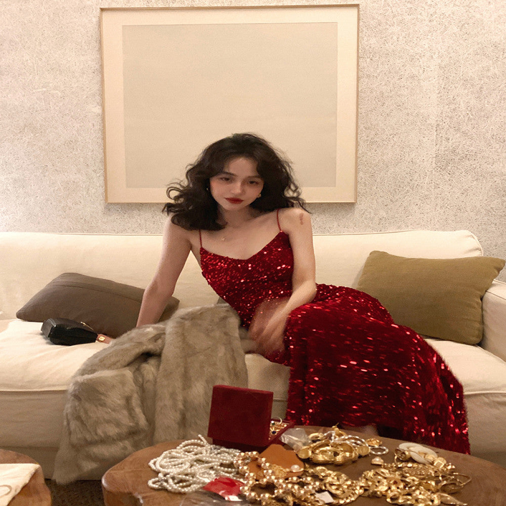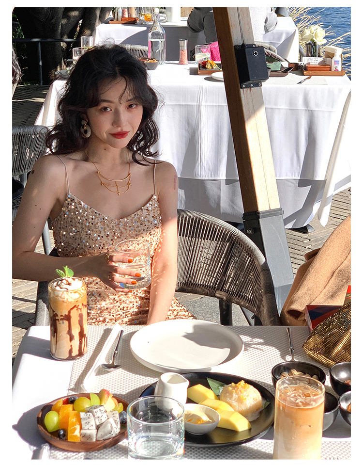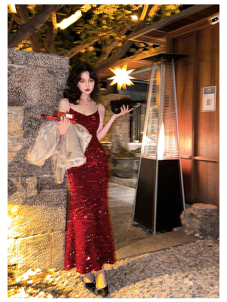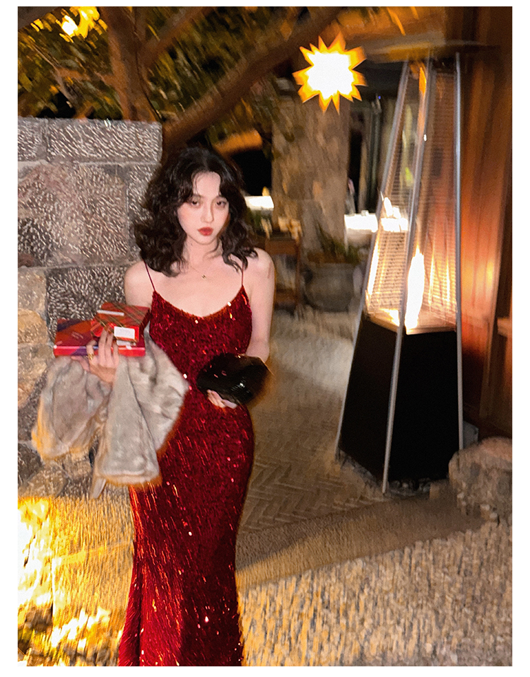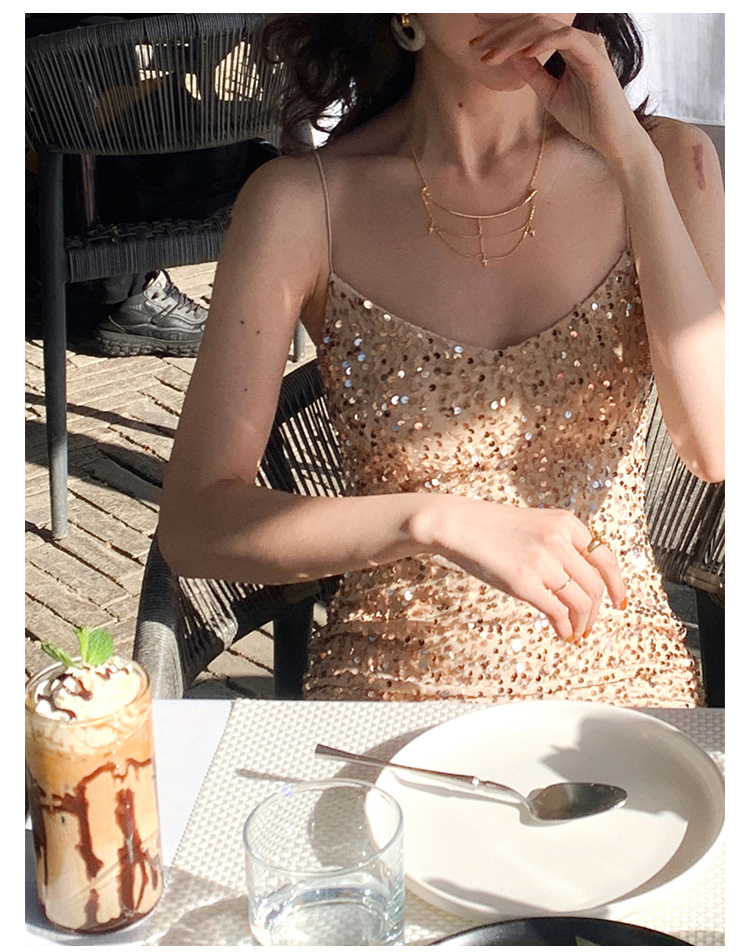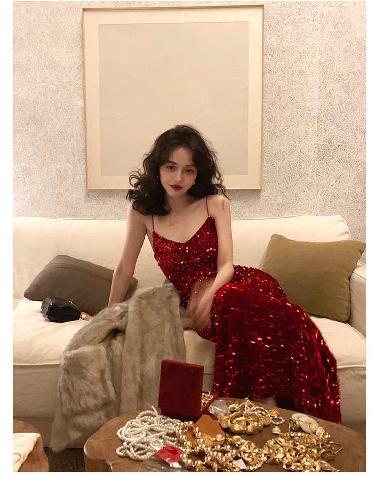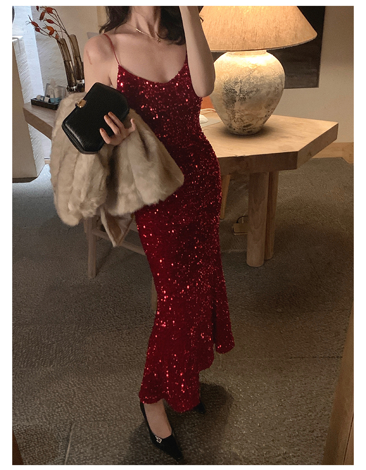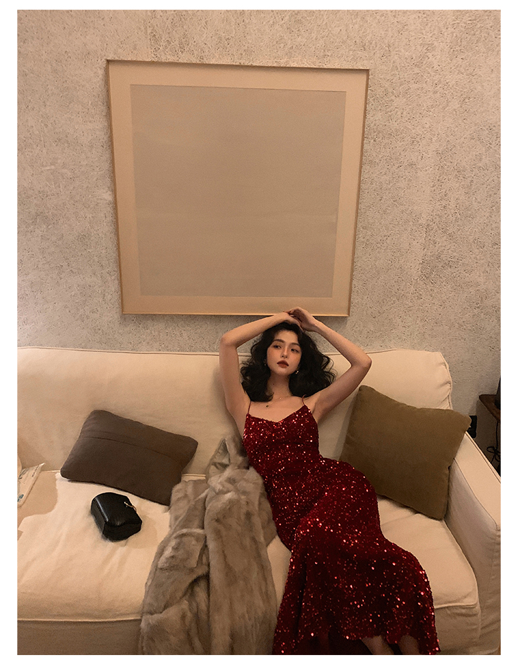 ASAYA3104 V-neck high waist, slim hip-hugging suspender A-line dress