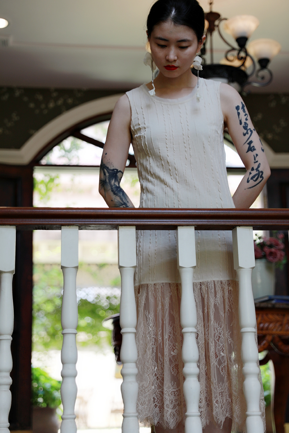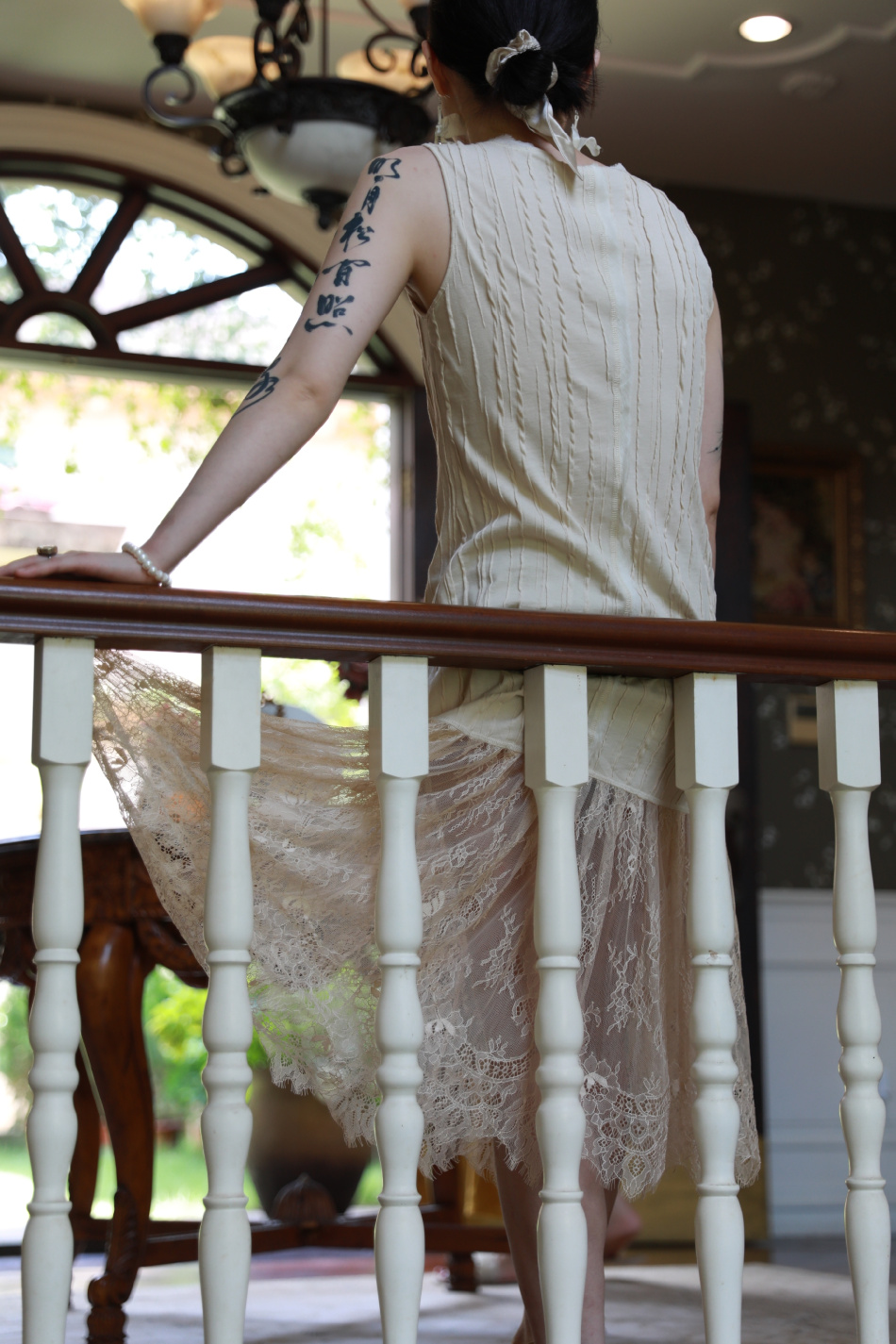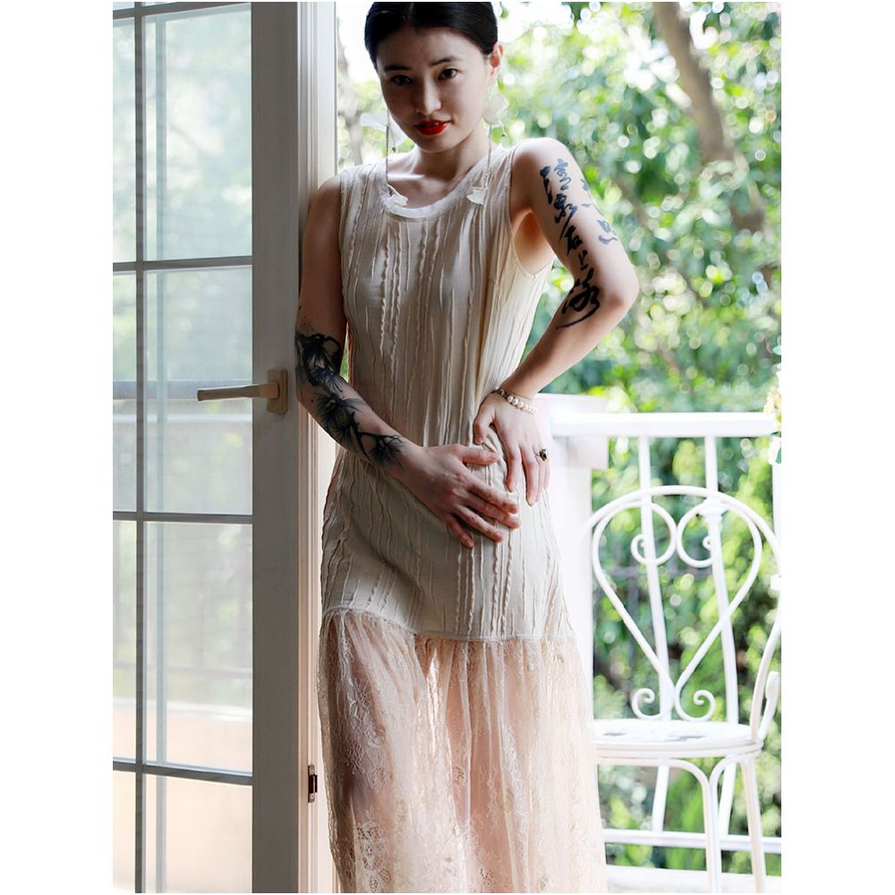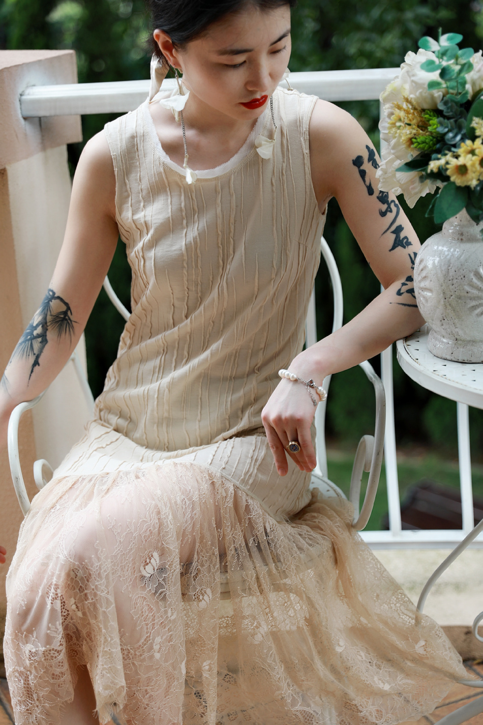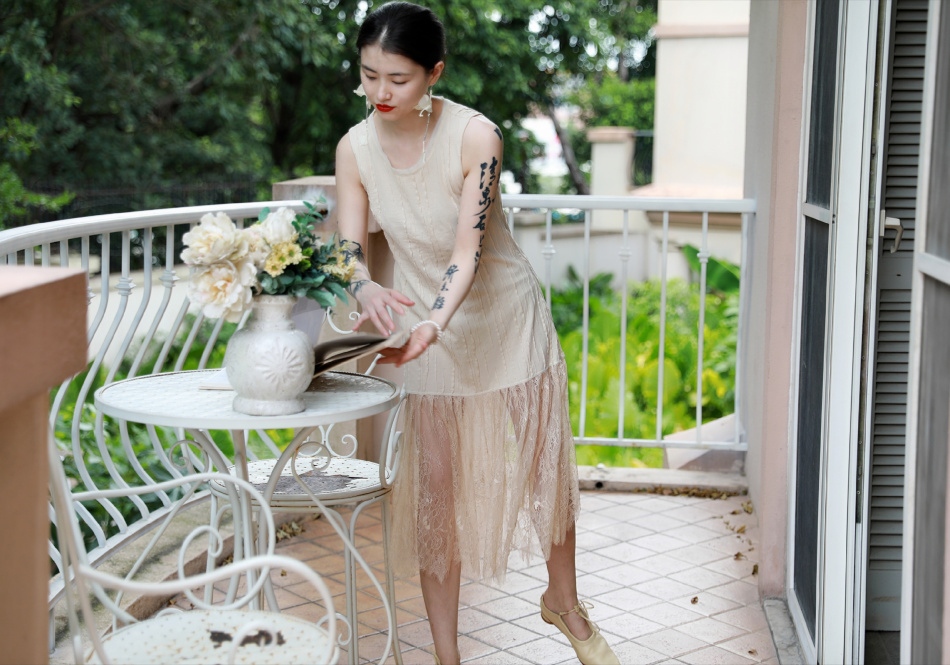 ASAYA1849 Nine Buds [June Boat Song] Gatsby vintage high-end texture dress style slim lace paneled dress