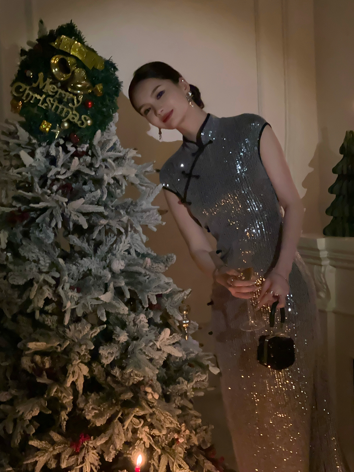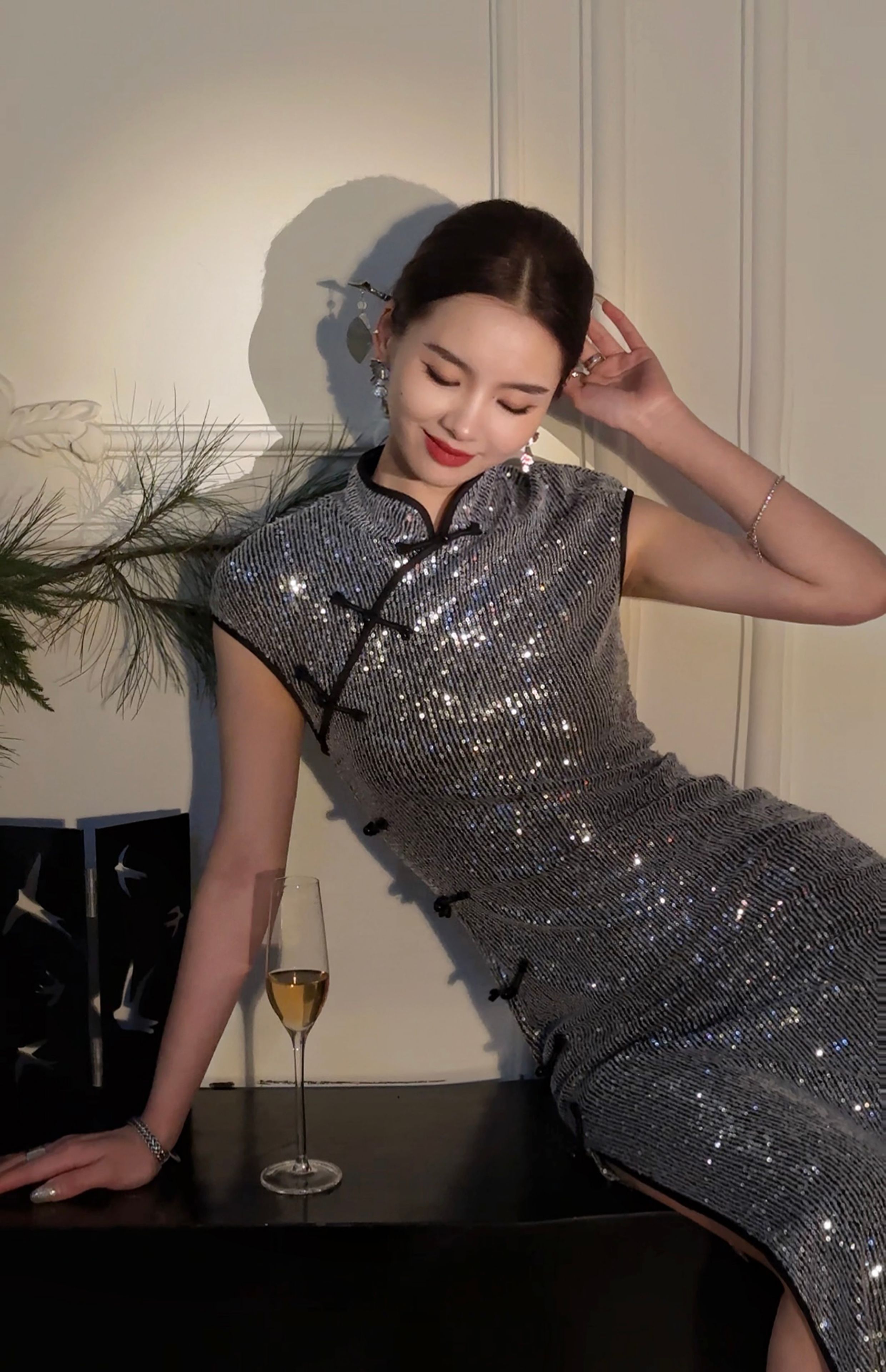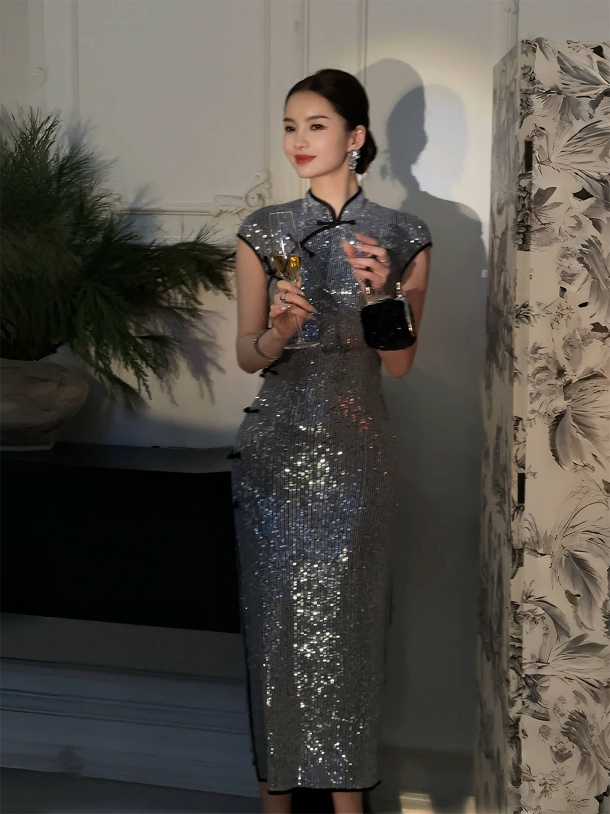 ASAYA4218 | Silver Sequin Cheongsam Dress ✨