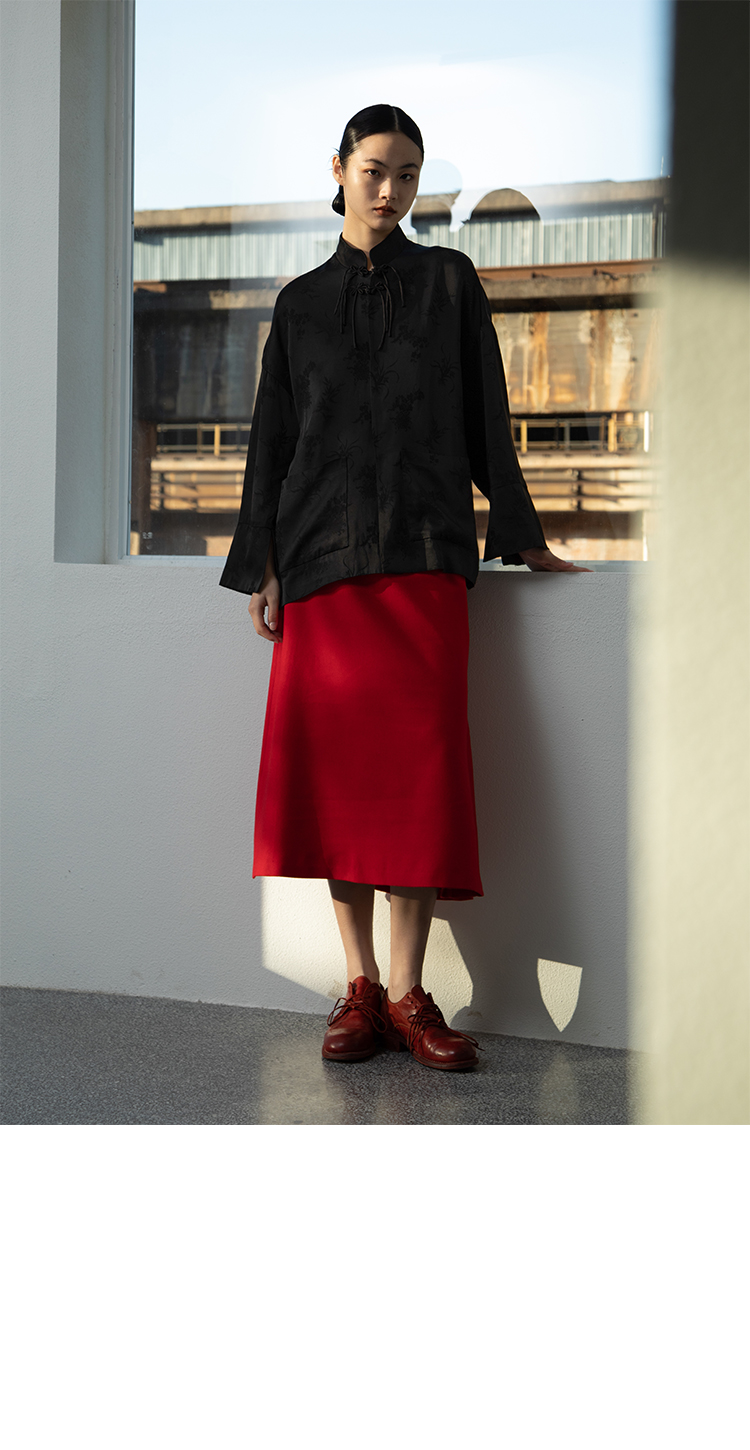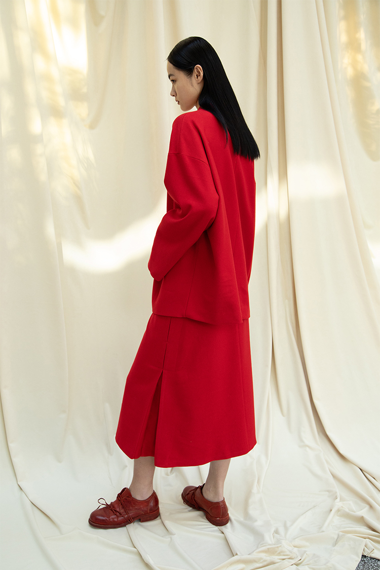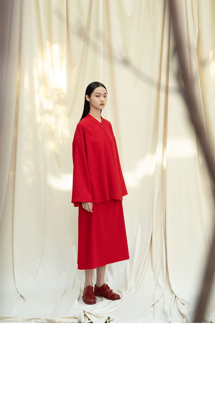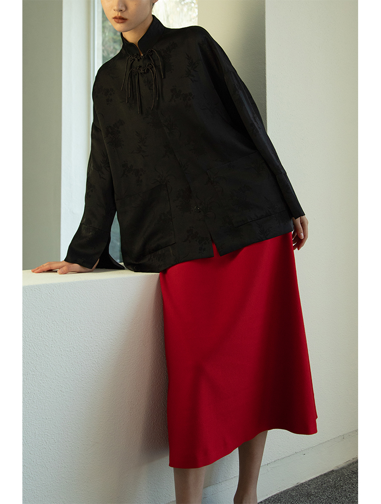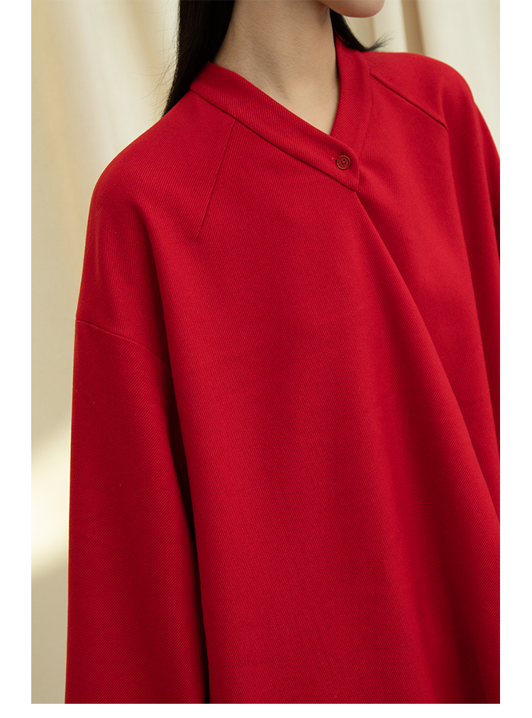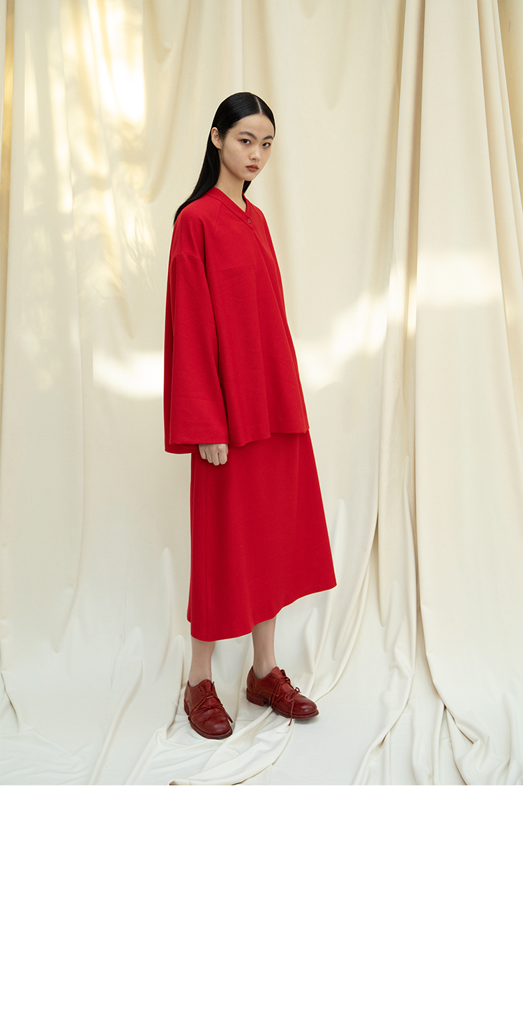 Asaya1438 - Knitted fabric three dimensional cutting Chinese elements high cold and bright red shirt set