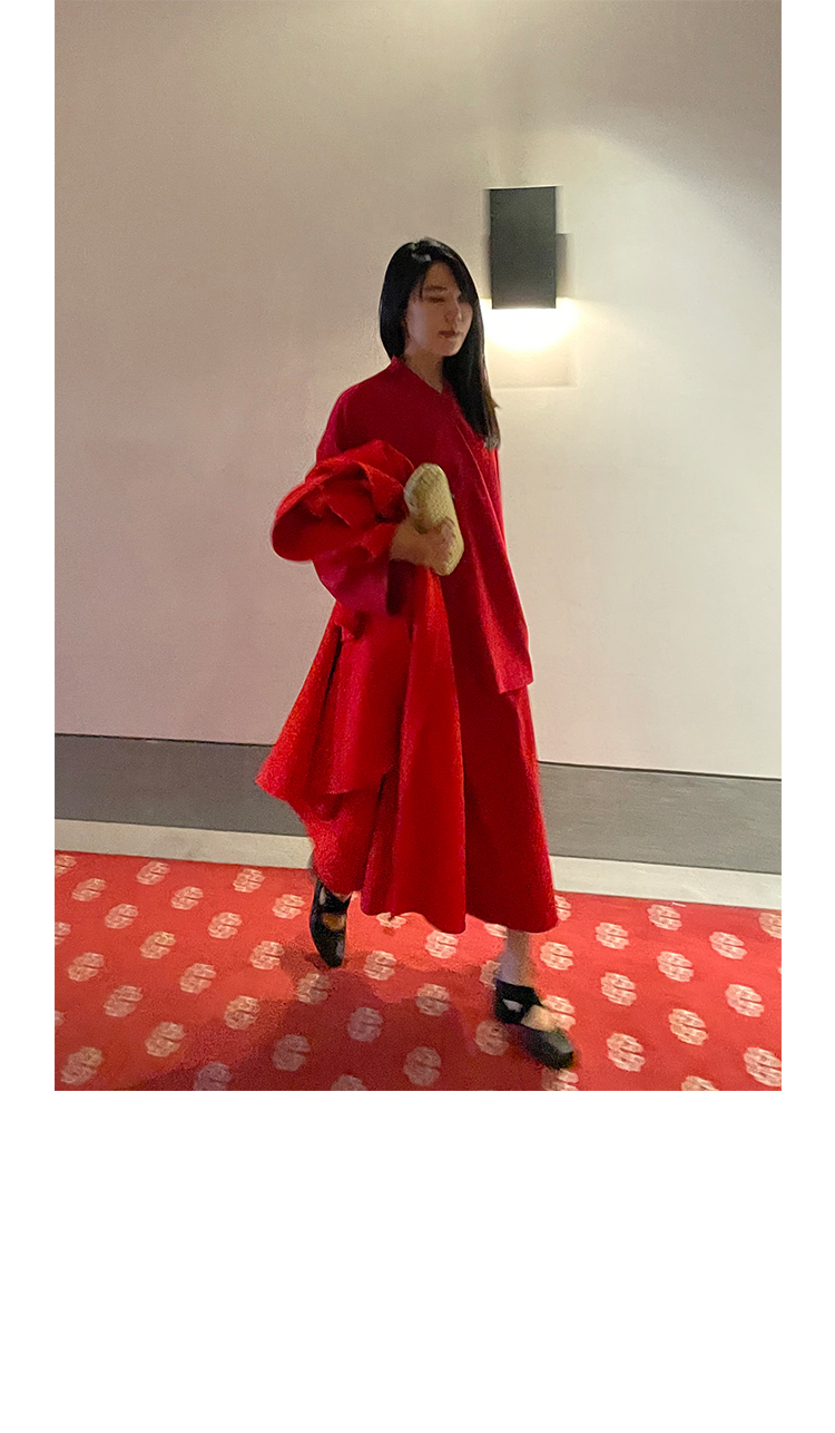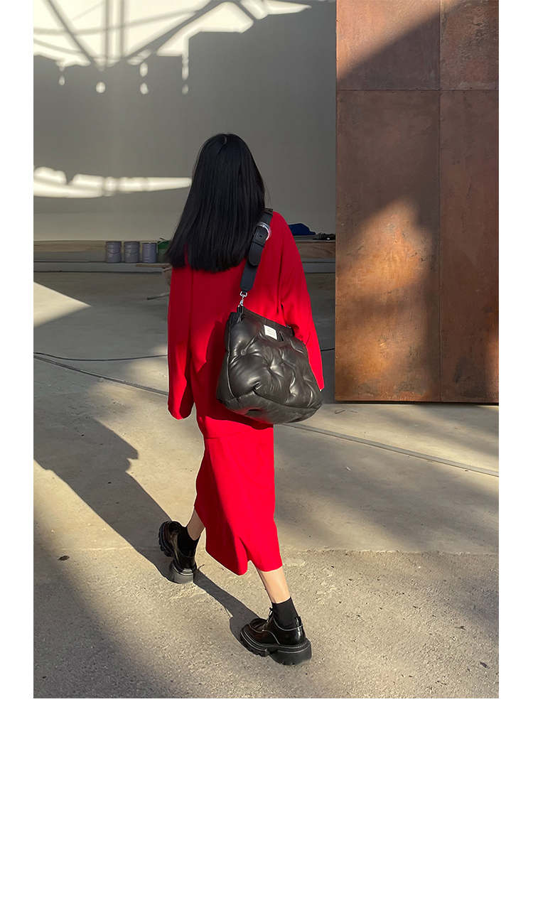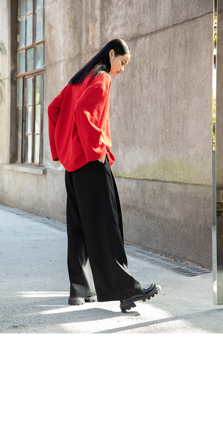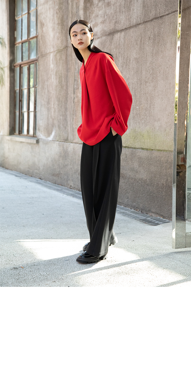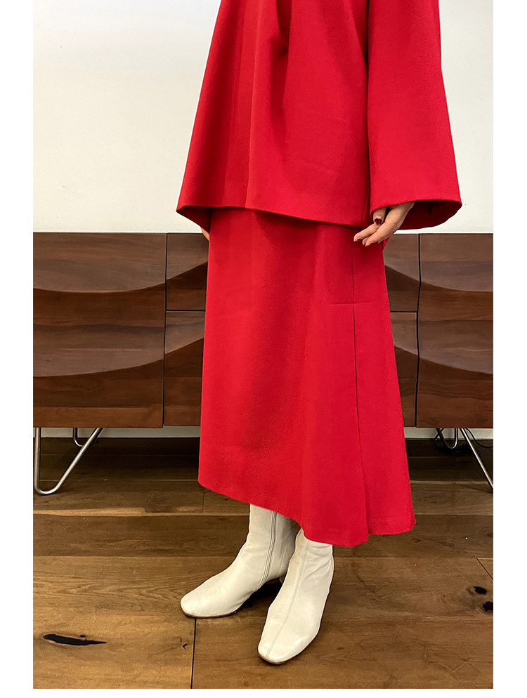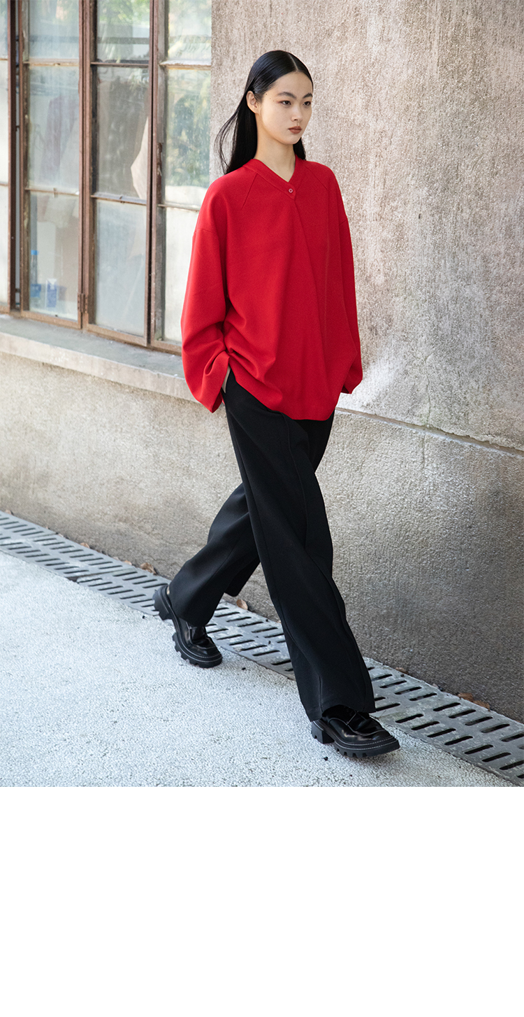Asaya1438 - Knitted fabric three dimensional cutting Chinese elements high cold and bright red shirt set