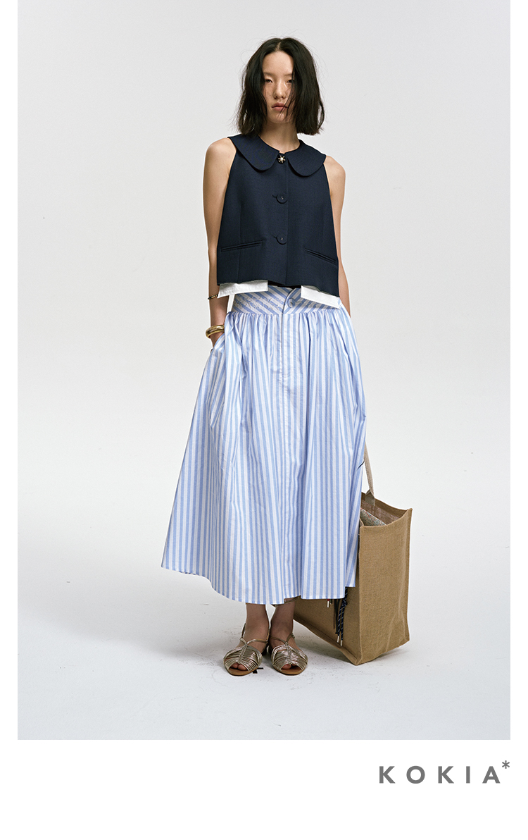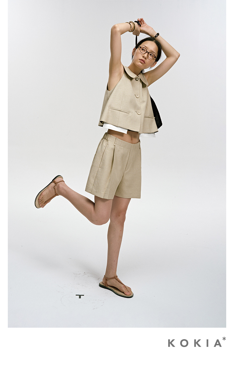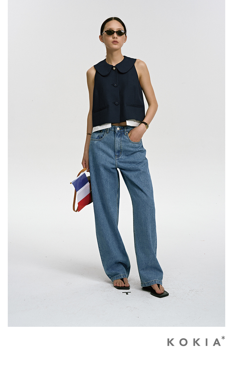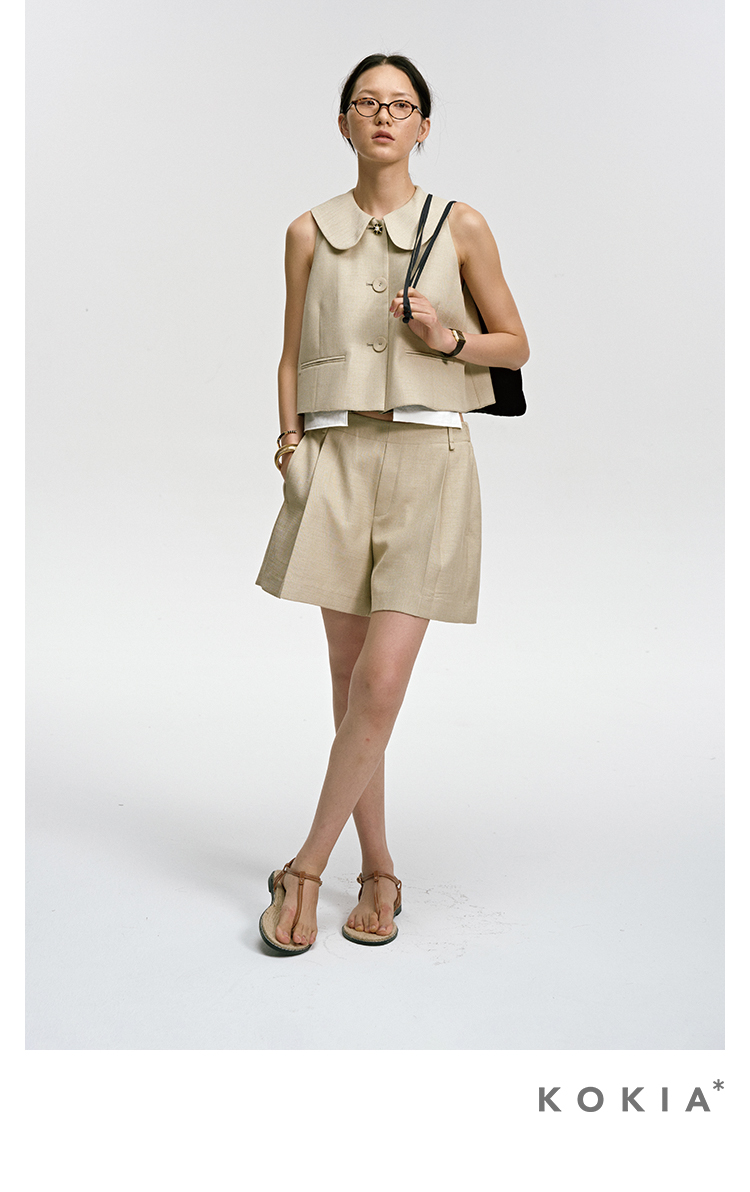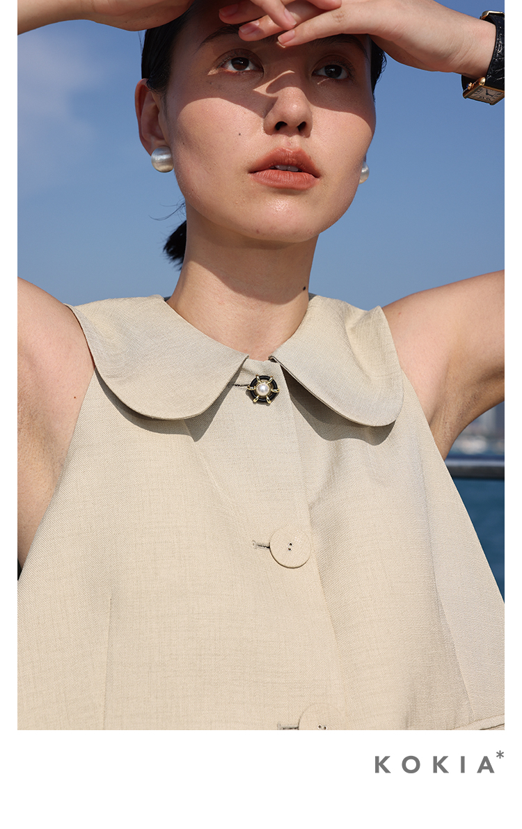 ASAYA3339 High-quality textured, playful lady Eton collar, raglan sleeves, A-line short vest, two colors