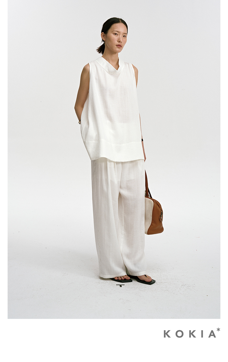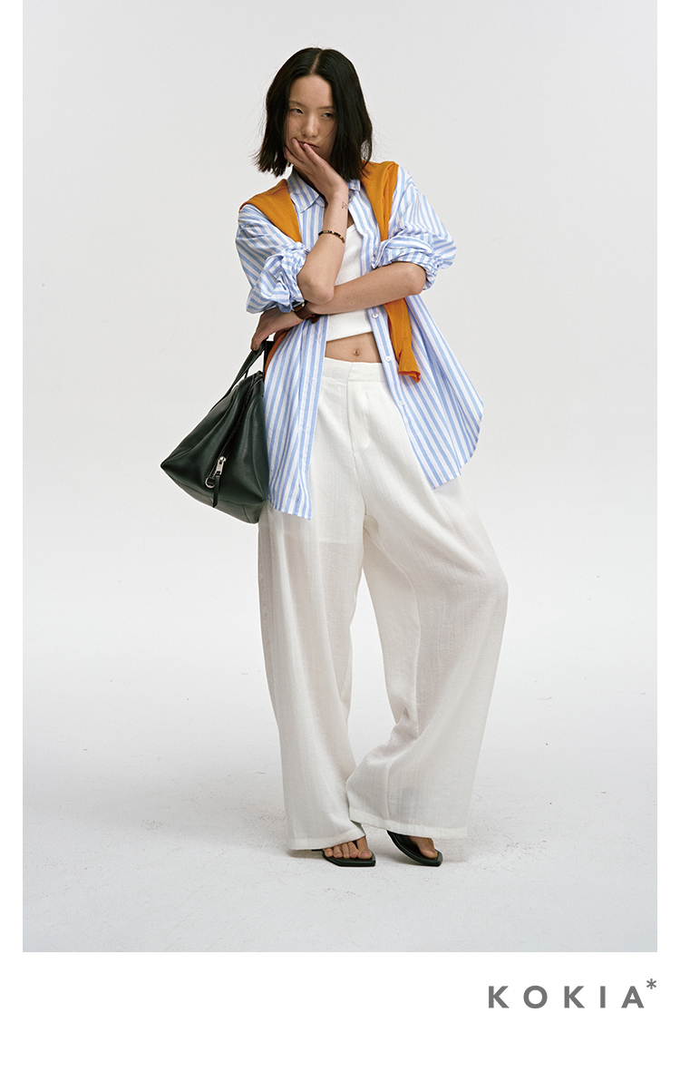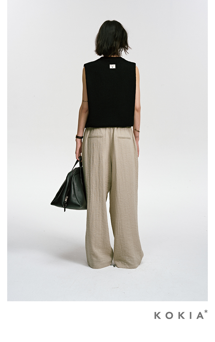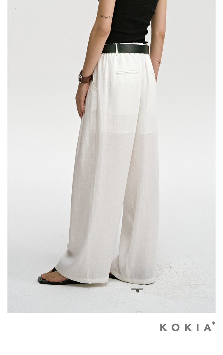 ASAYA3341 Airy, loose, soft, linen material, comfortable to wear, semi-elastic waist, comfortable, loose wide-leg trousers in two colors