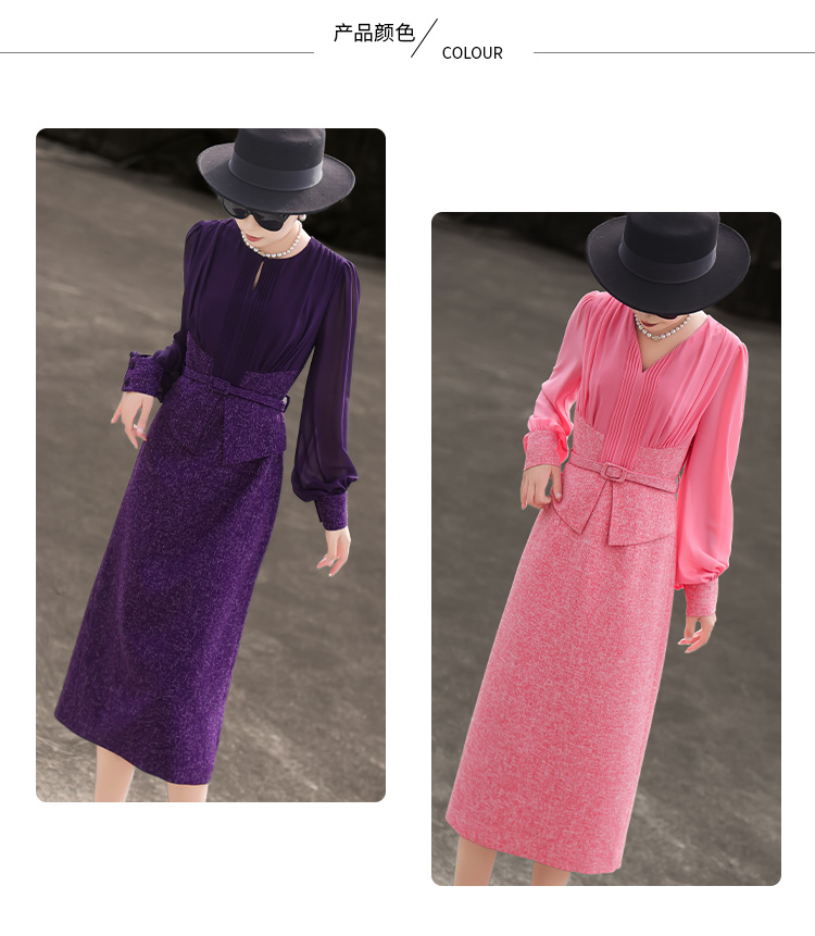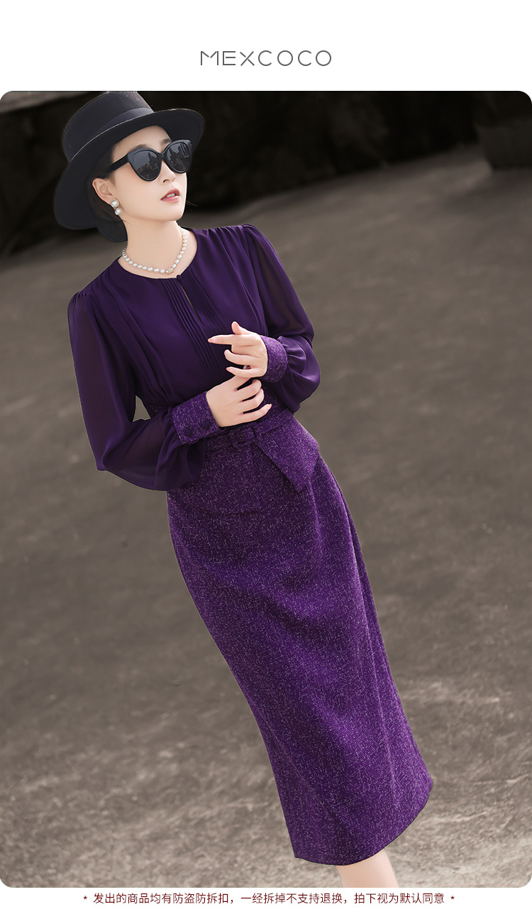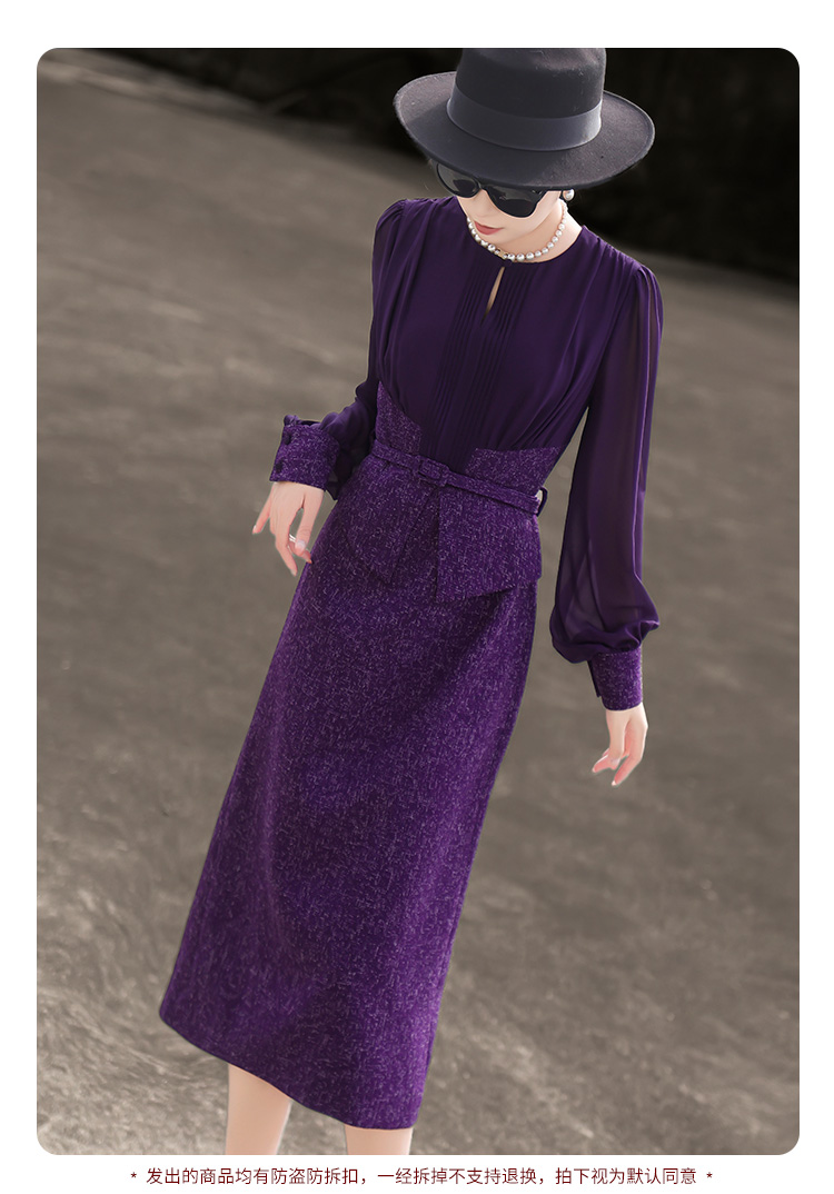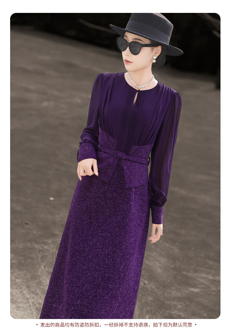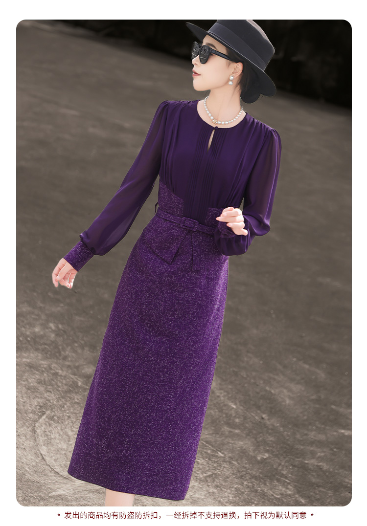 ASAYA4371 - Elegant Two-Piece Effect Purple Dress 🎀💼