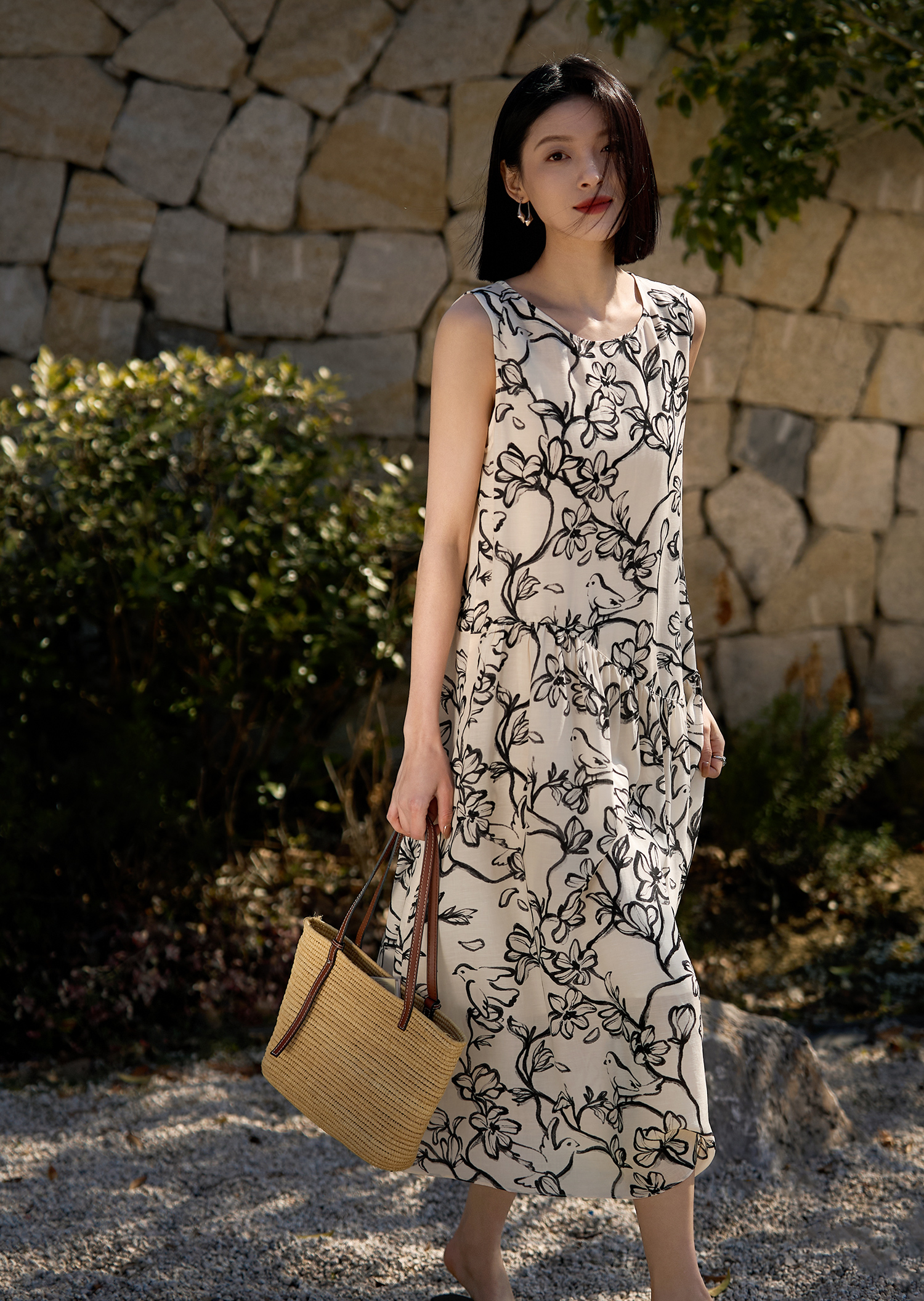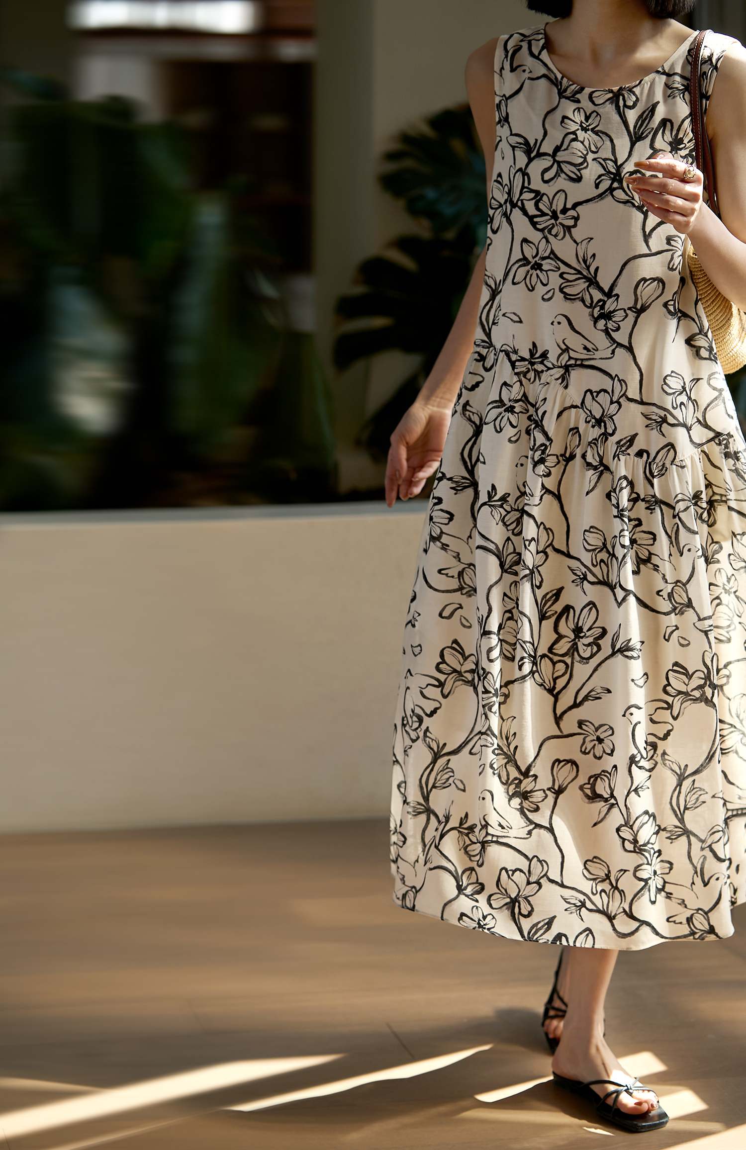 「浮笔浪墨」花鸟印花连衣裙