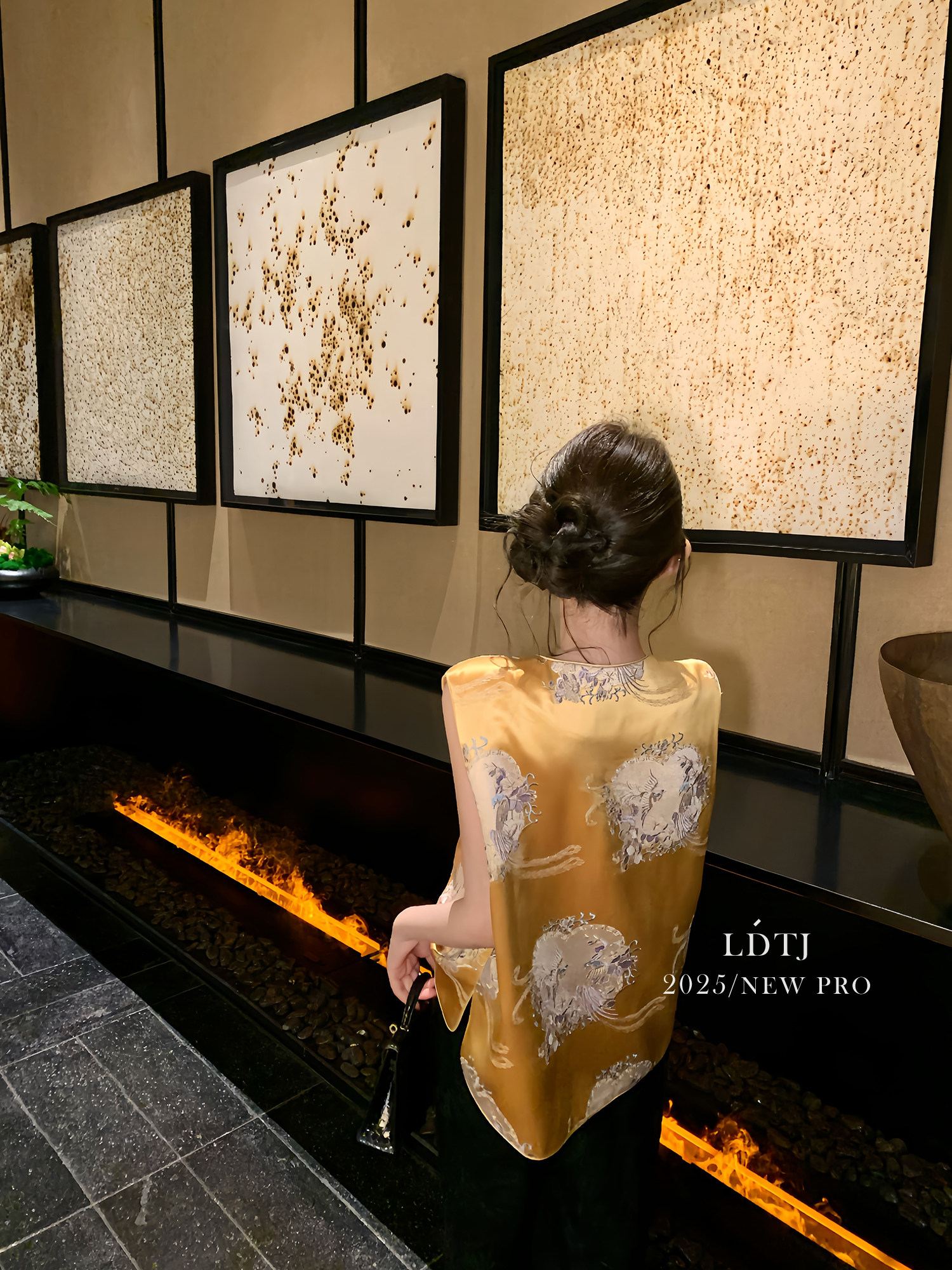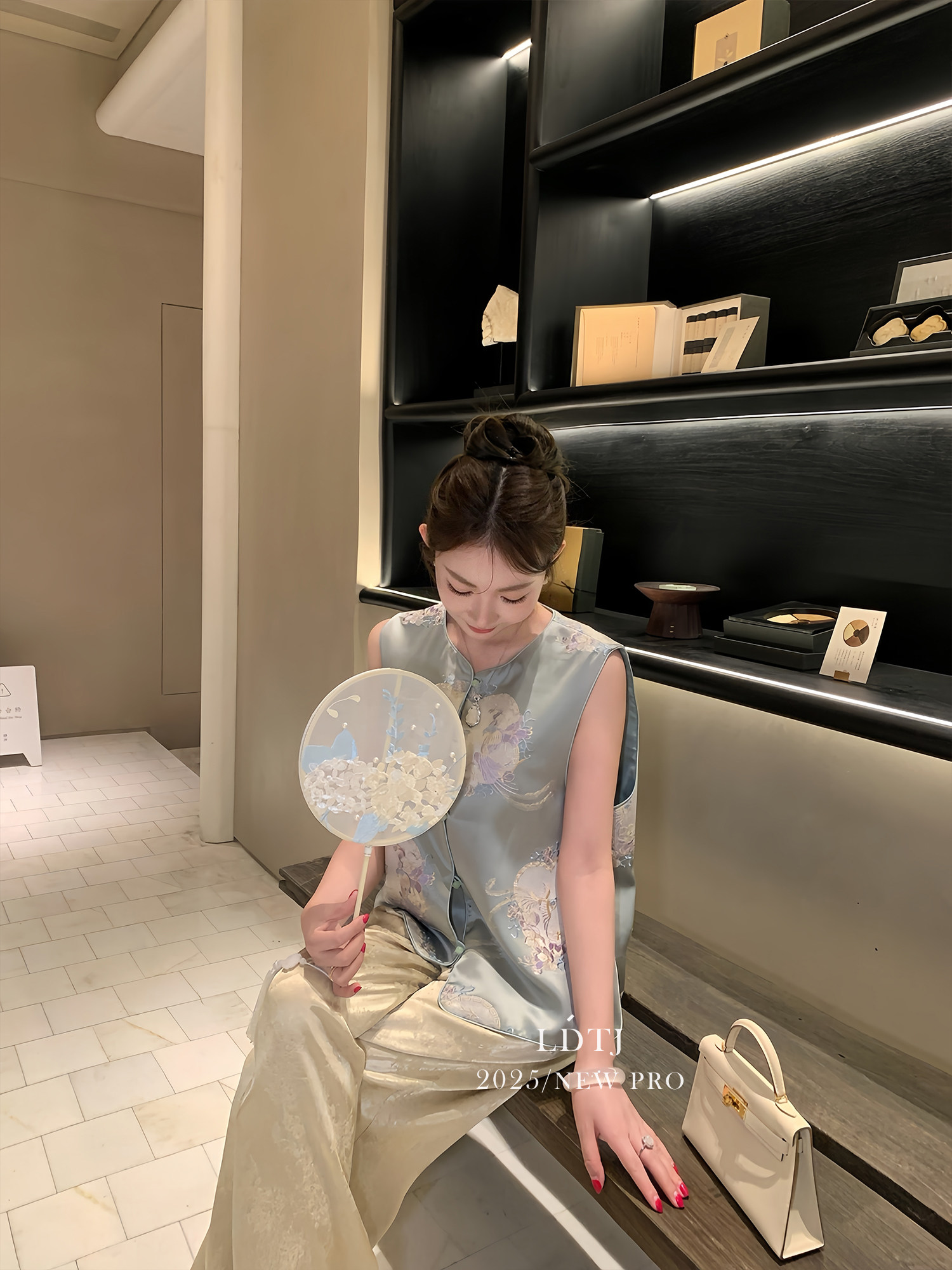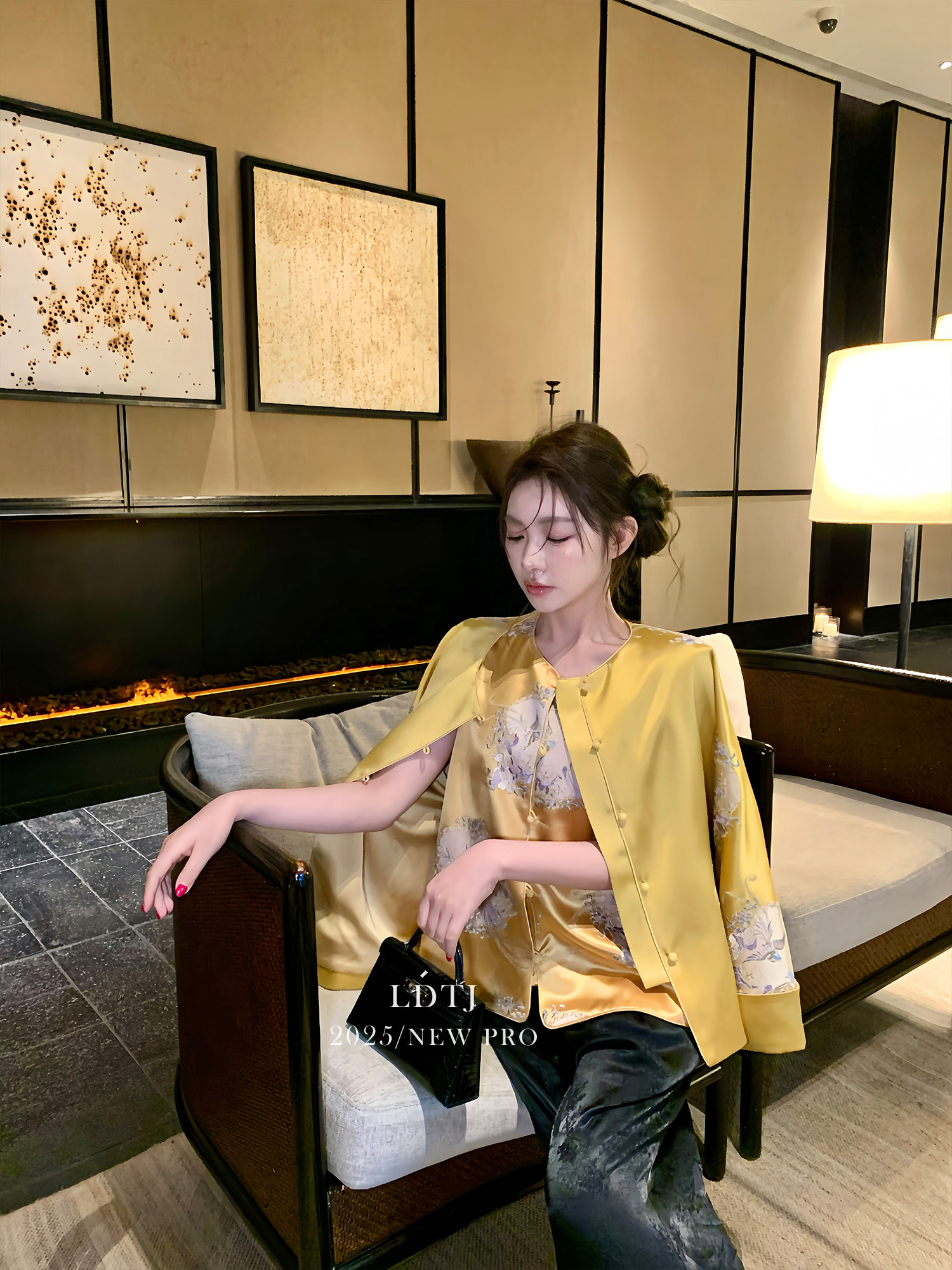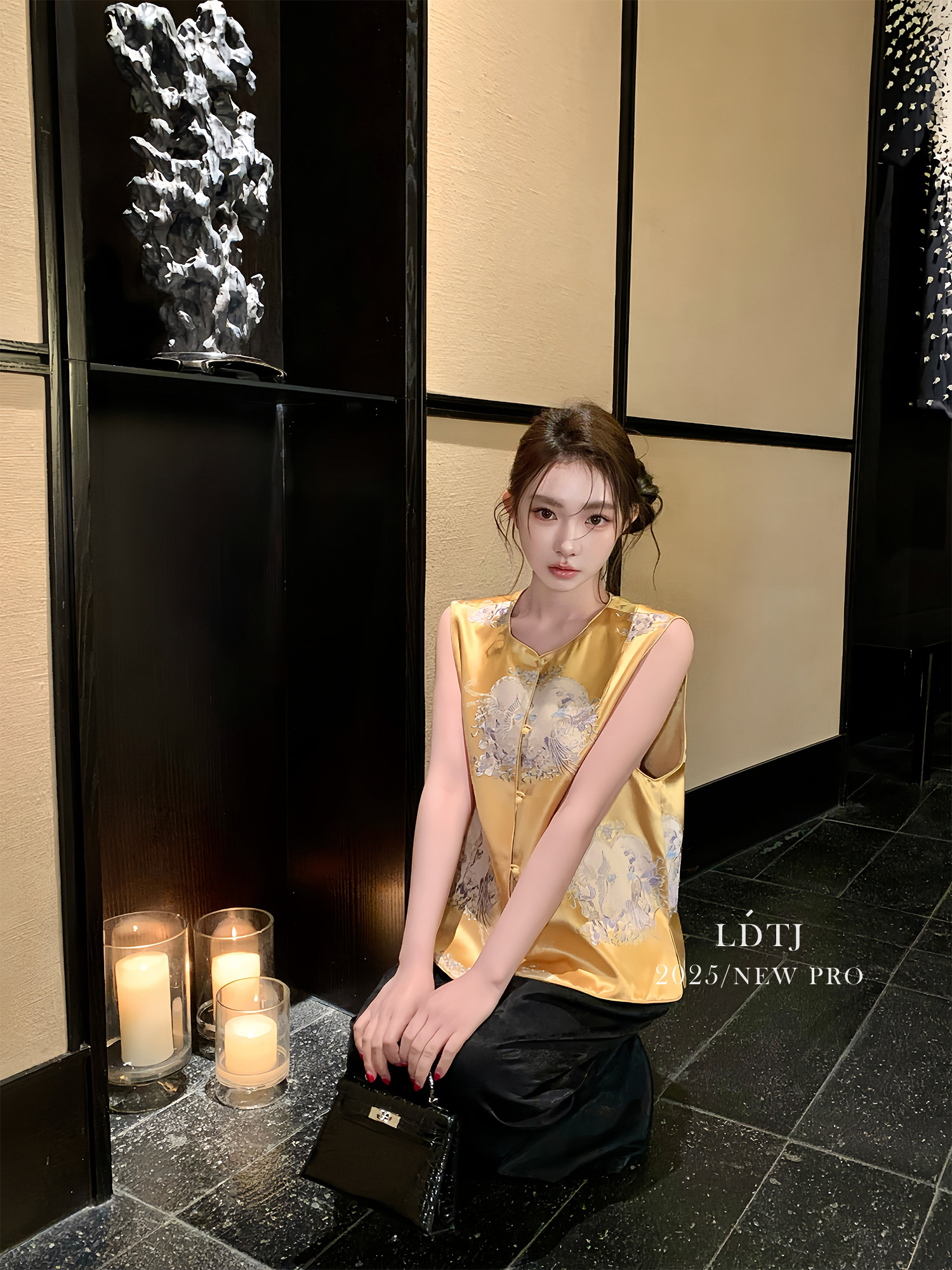 | color classification | Yellow embroidered buckle vest with 76% acetic acid+heavy embroidery technology+24% polyester, yellow embroidered buckle jacket with 76% acetic acid+heavy embroidery technology+24% polyester, smoked black pants with 63% acetic acid jacquard+35% polyester, cloud apricot pants with 63% acetic acid jacquard+35% polyester |