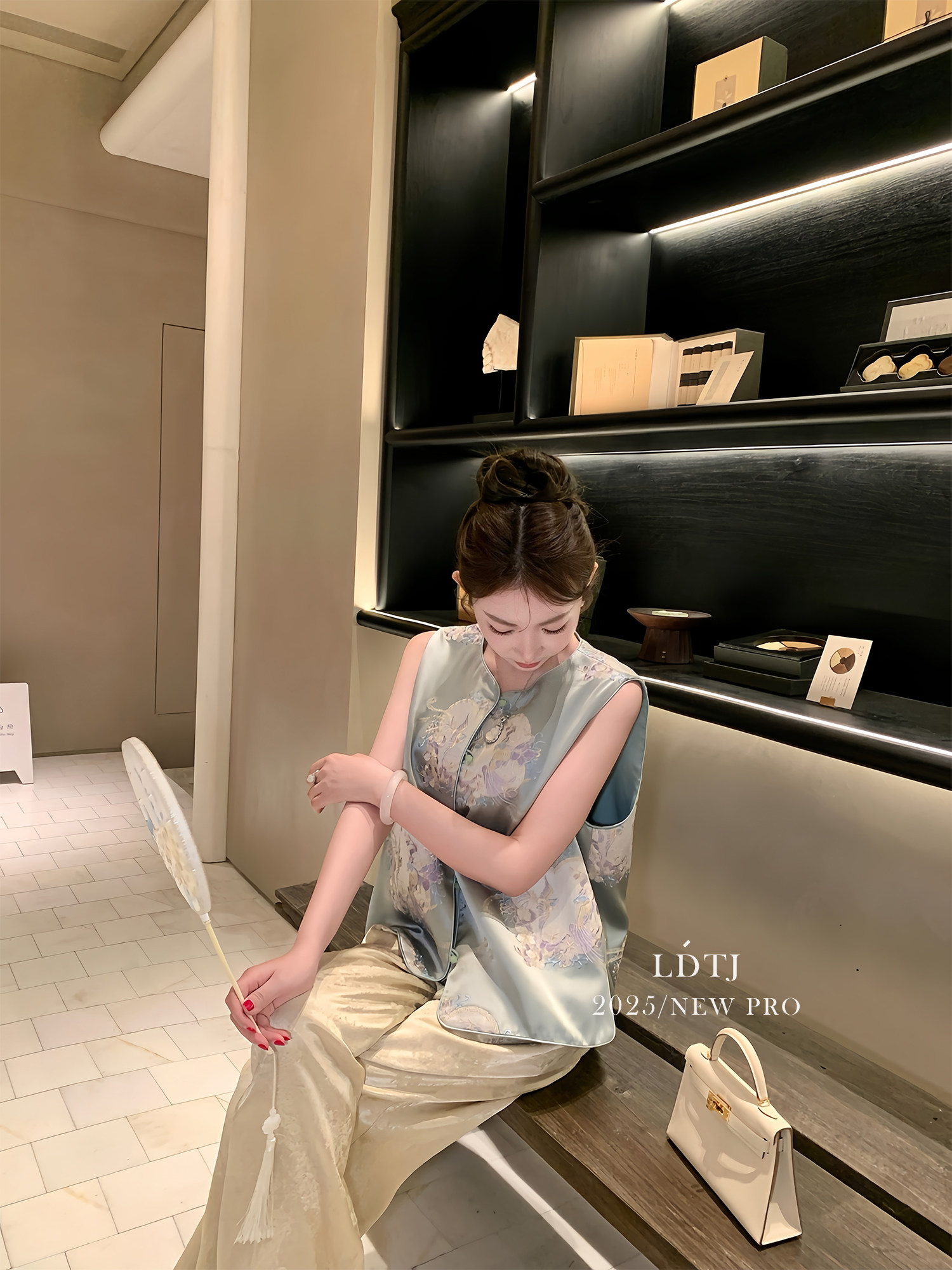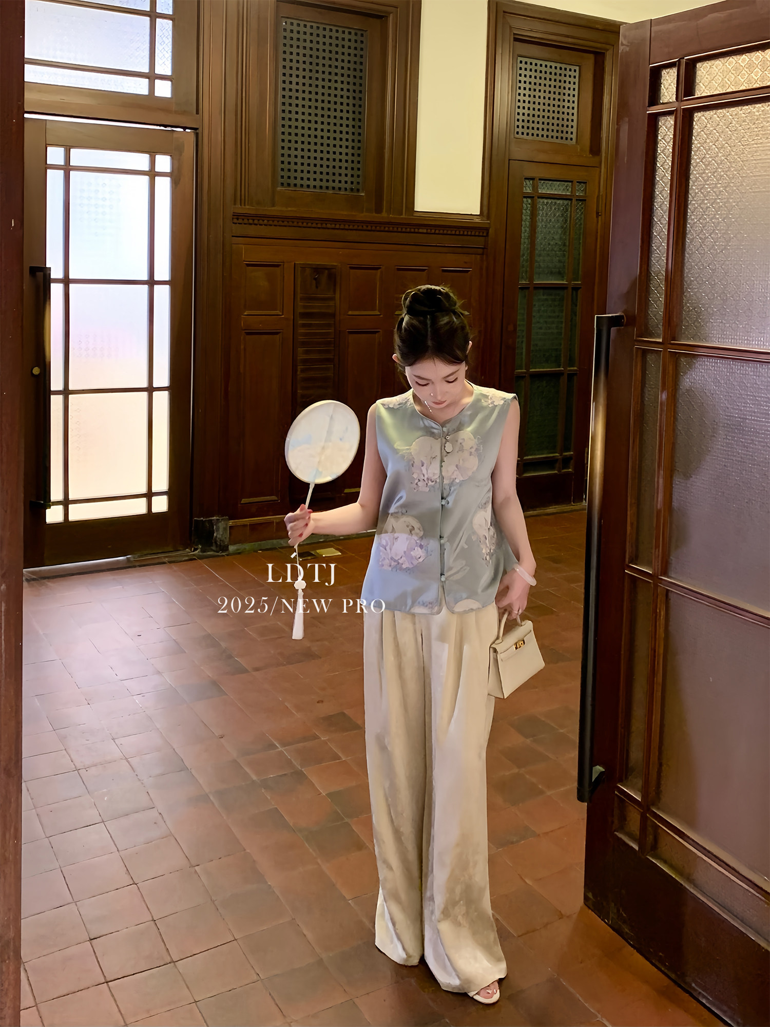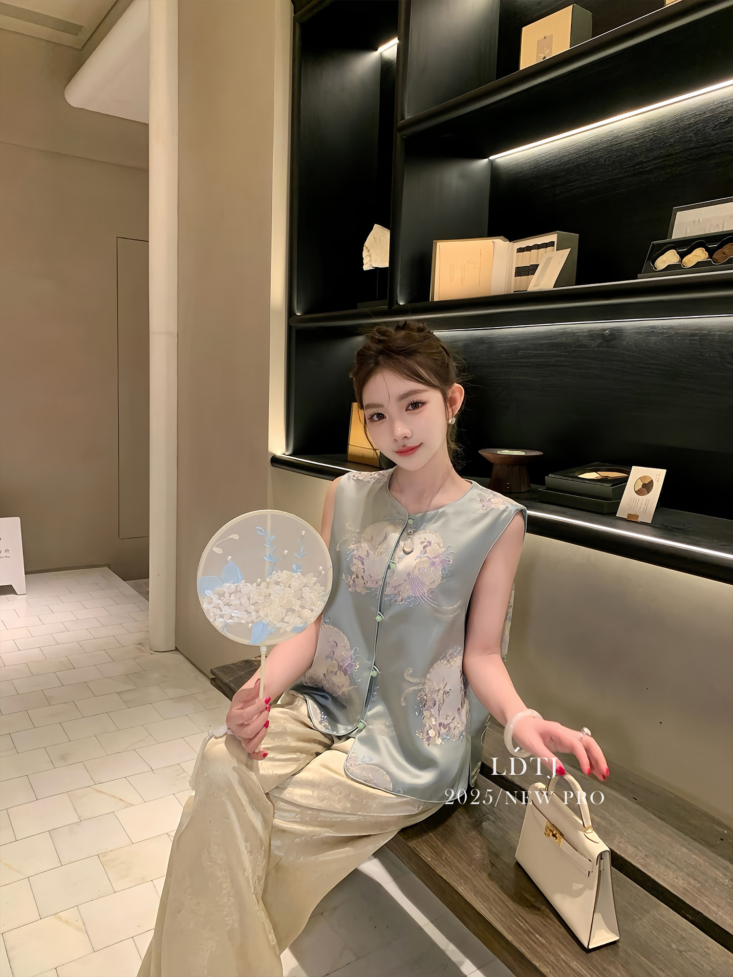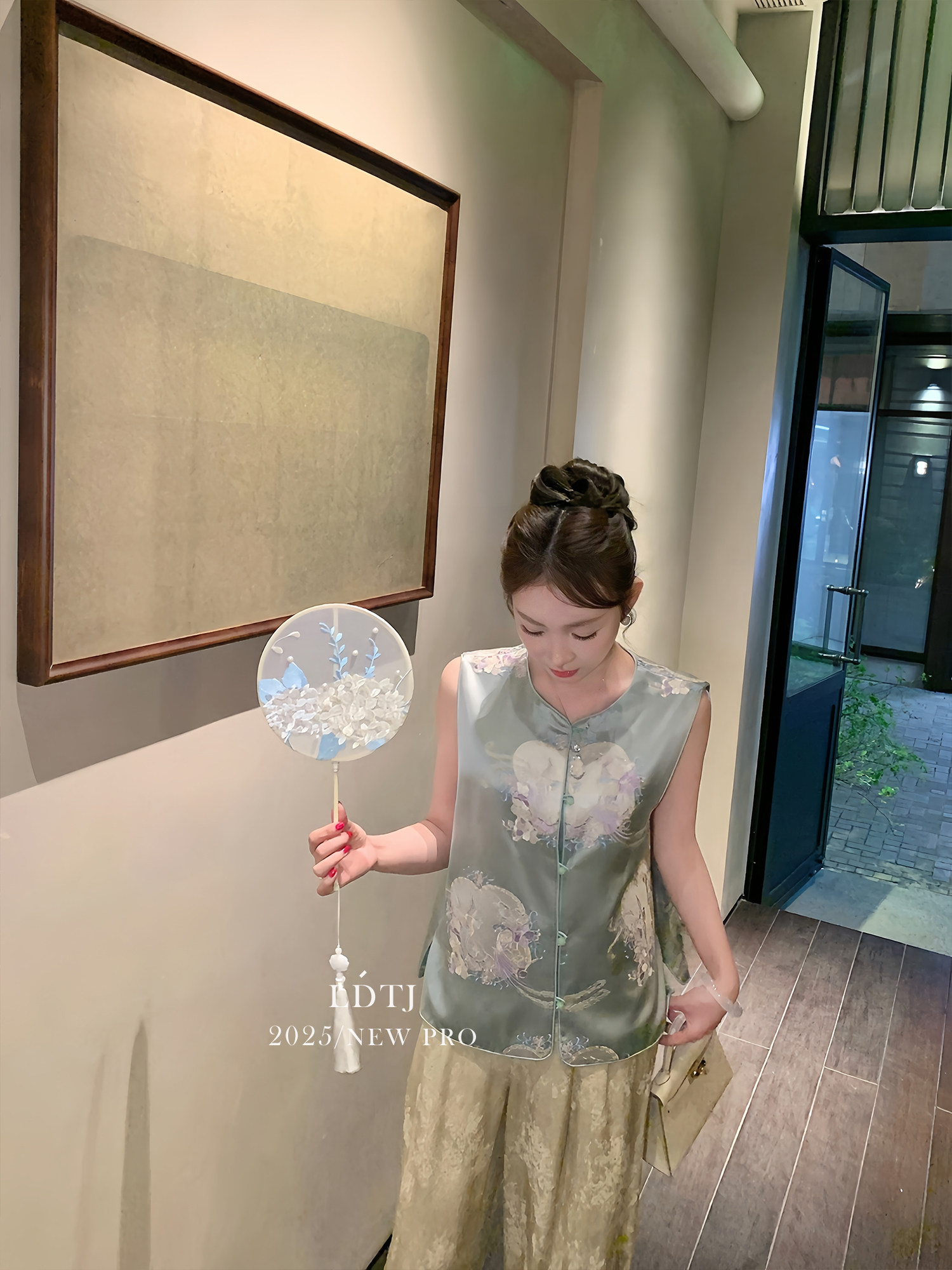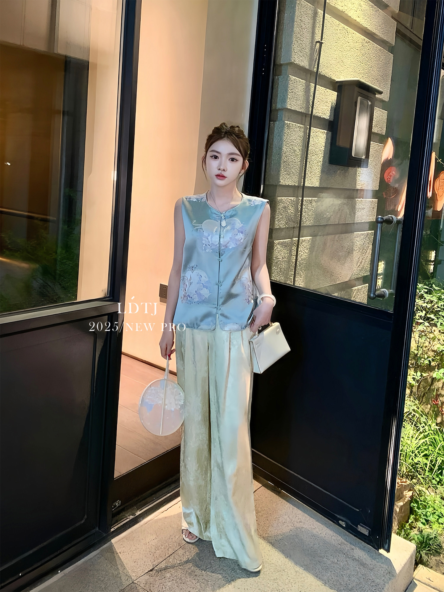 | color classification | Yellow embroidered buckle vest with 76% acetic acid+heavy embroidery technology+24% polyester, yellow embroidered buckle jacket with 76% acetic acid+heavy embroidery technology+24% polyester, smoked black pants with 63% acetic acid jacquard+35% polyester, cloud apricot pants with 63% acetic acid jacquard+35% polyester |