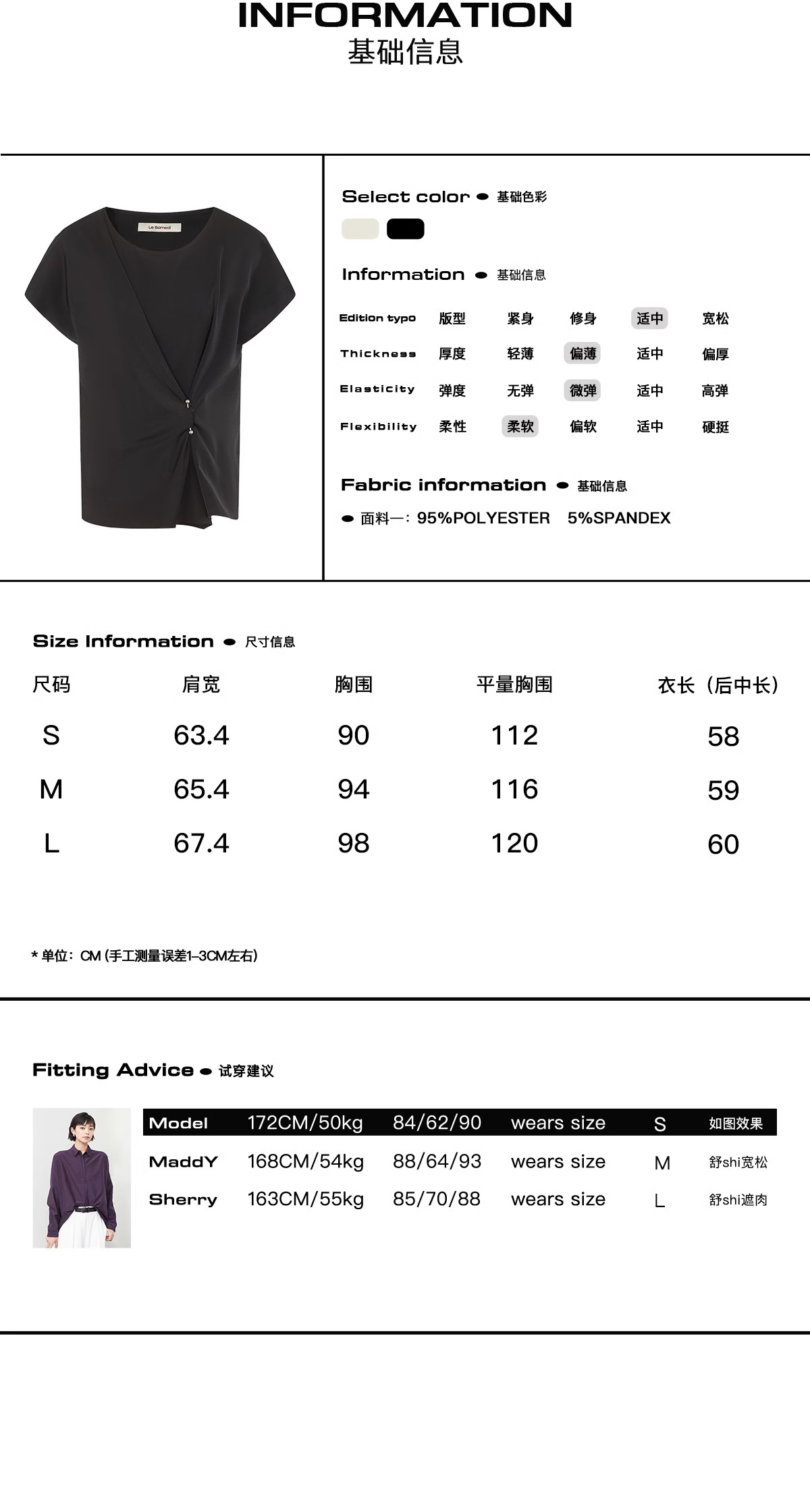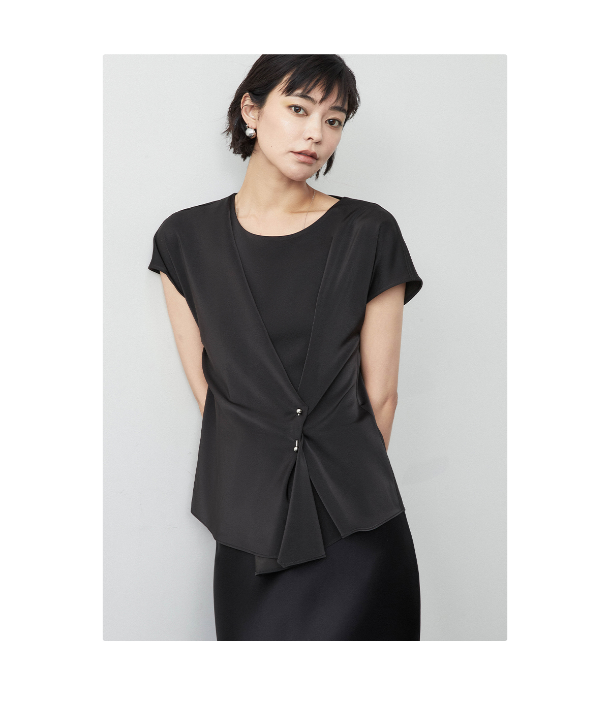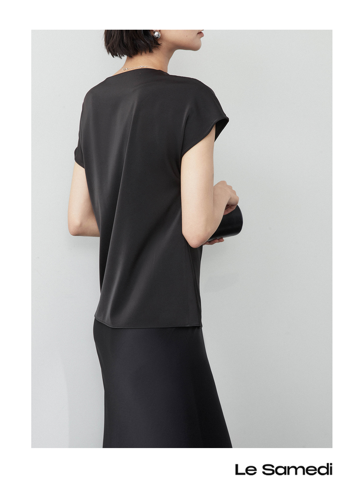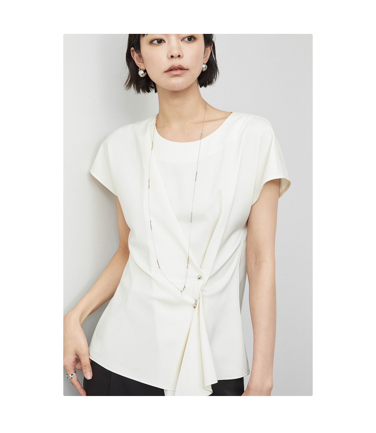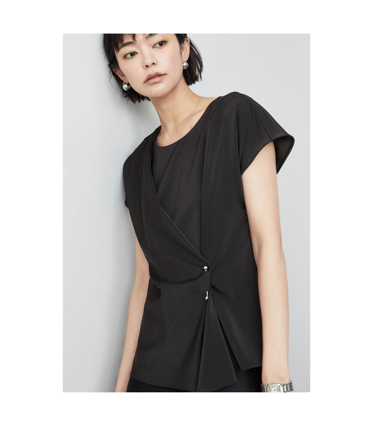 ASAYA2881 Love the elegant metal structure decorative buckle two-wear satin silk soft fashion short-sleeved top