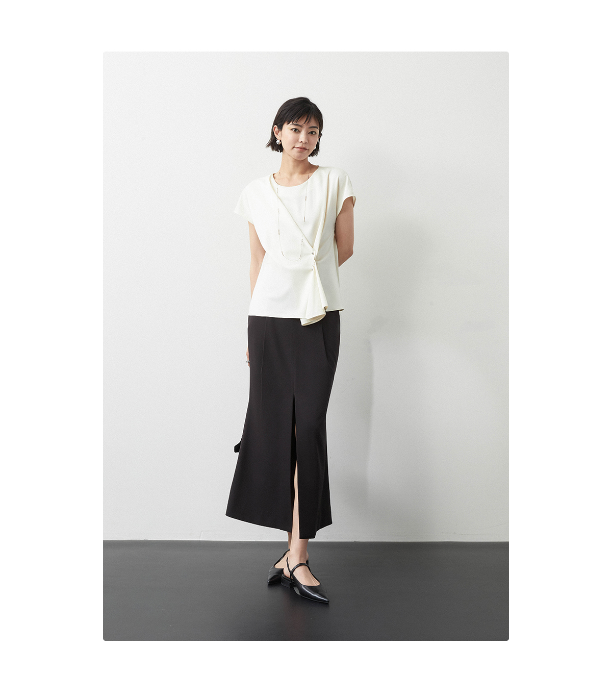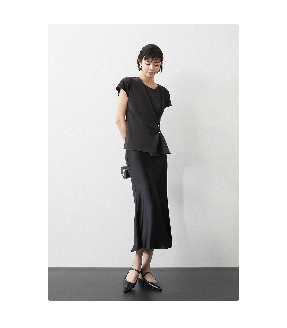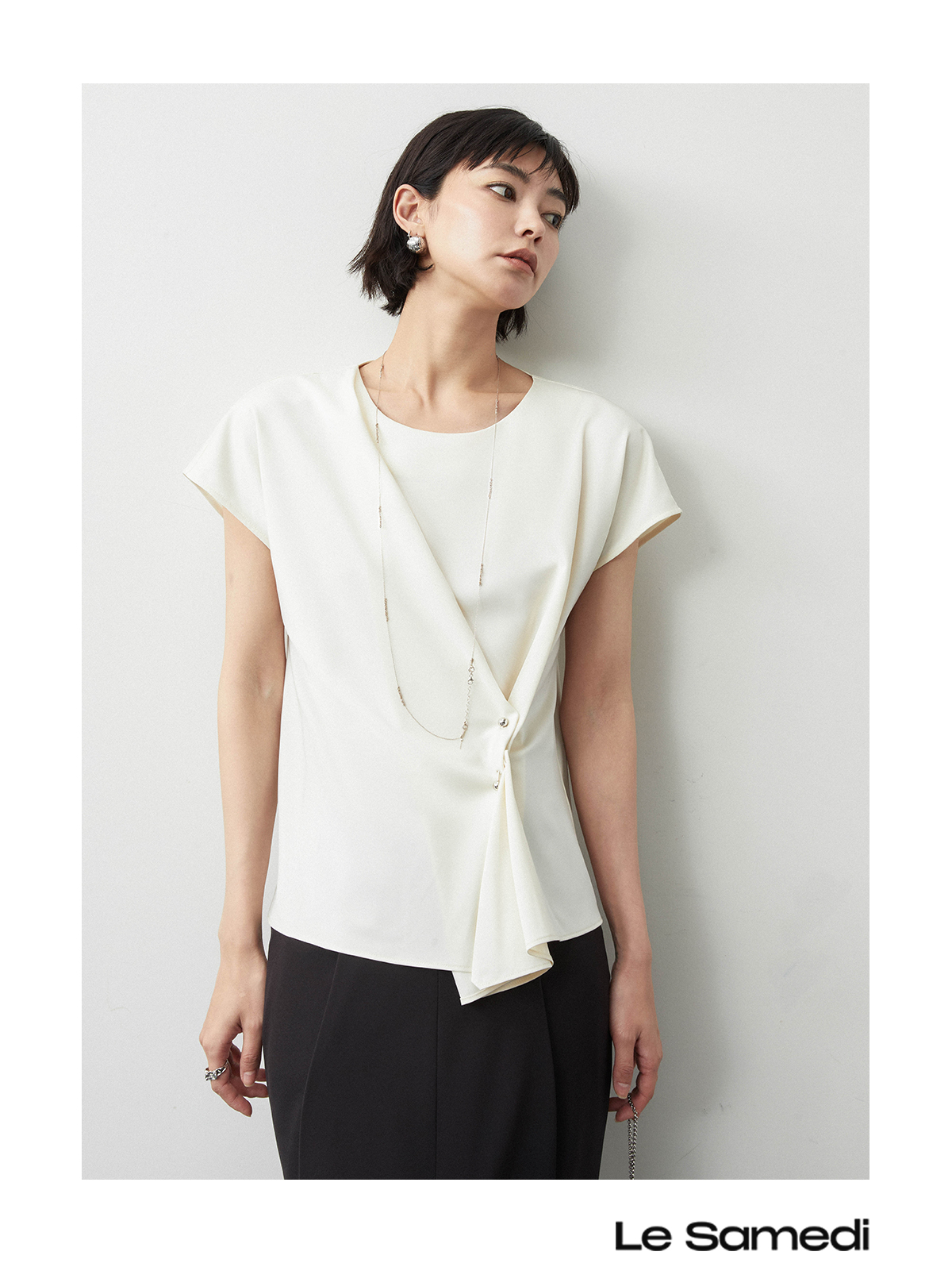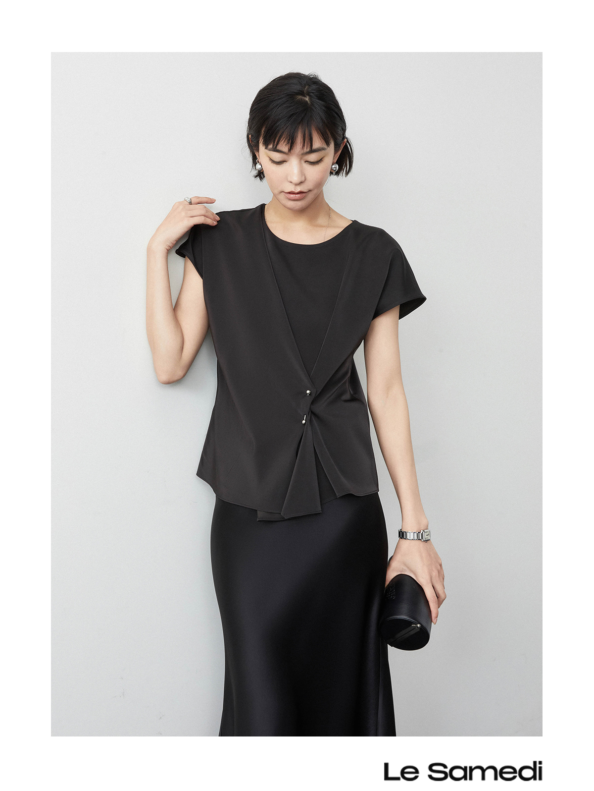 ASAYA2881 Love the elegant metal structure decorative buckle two-wear satin silk soft fashion short-sleeved top