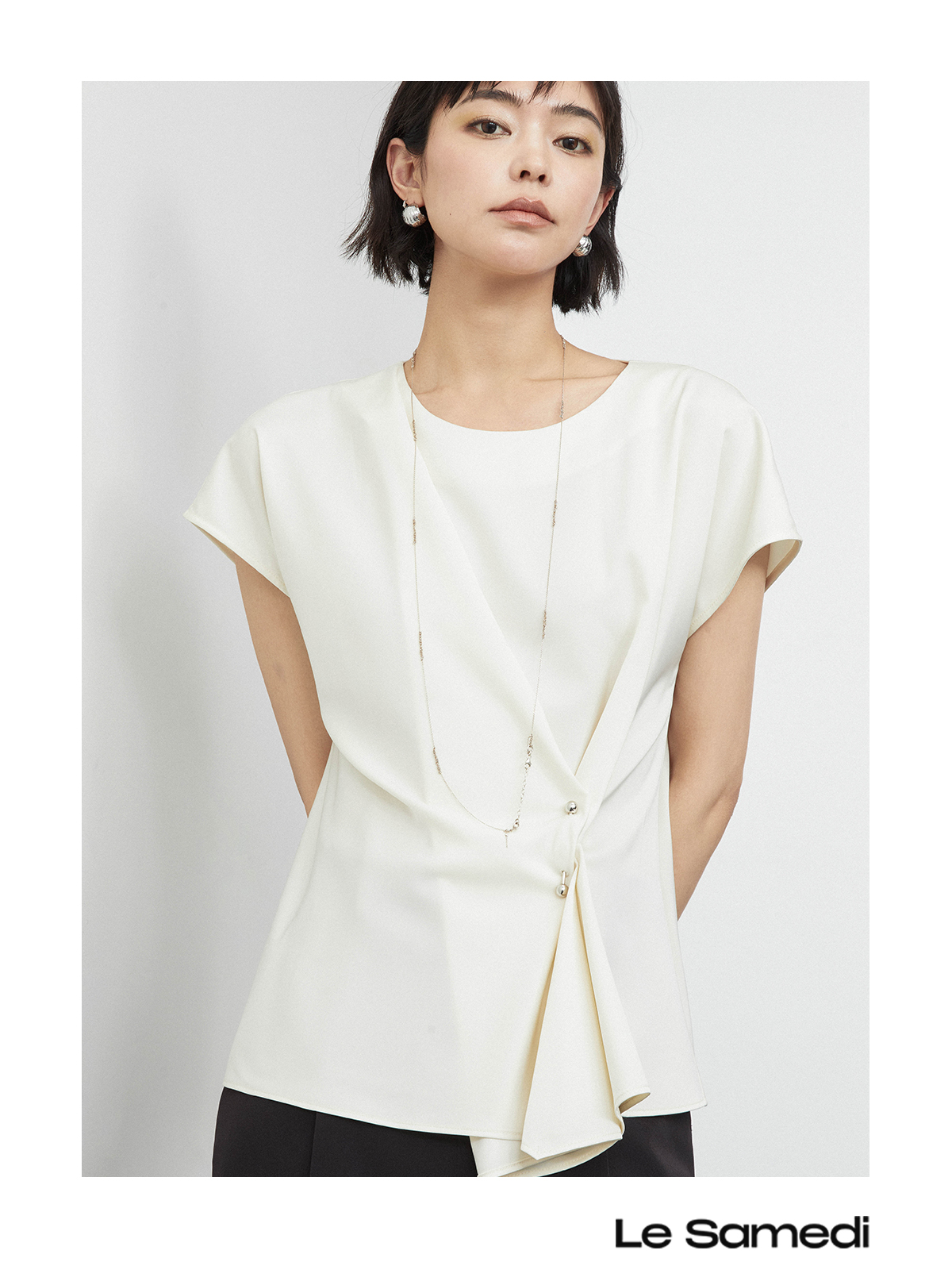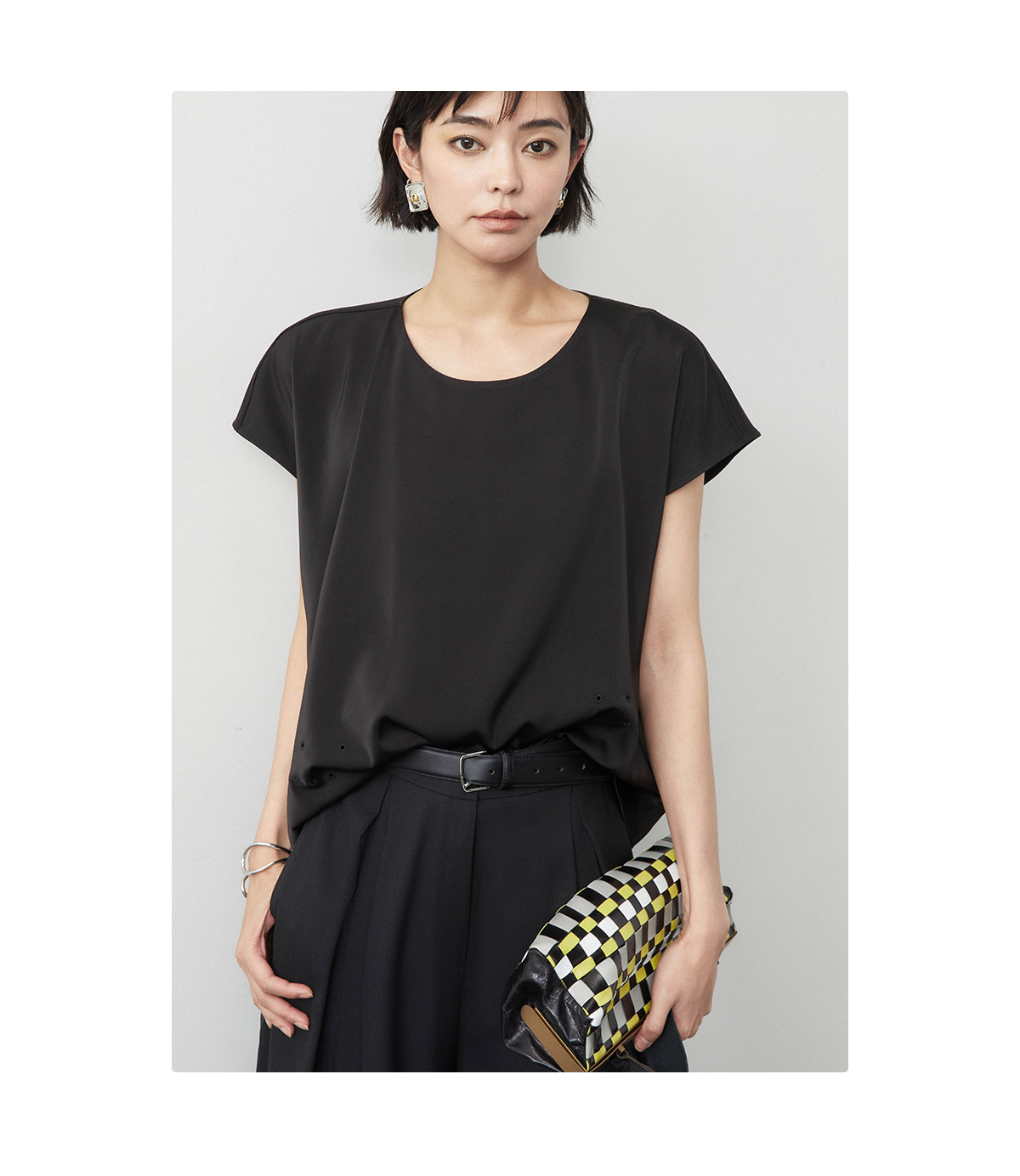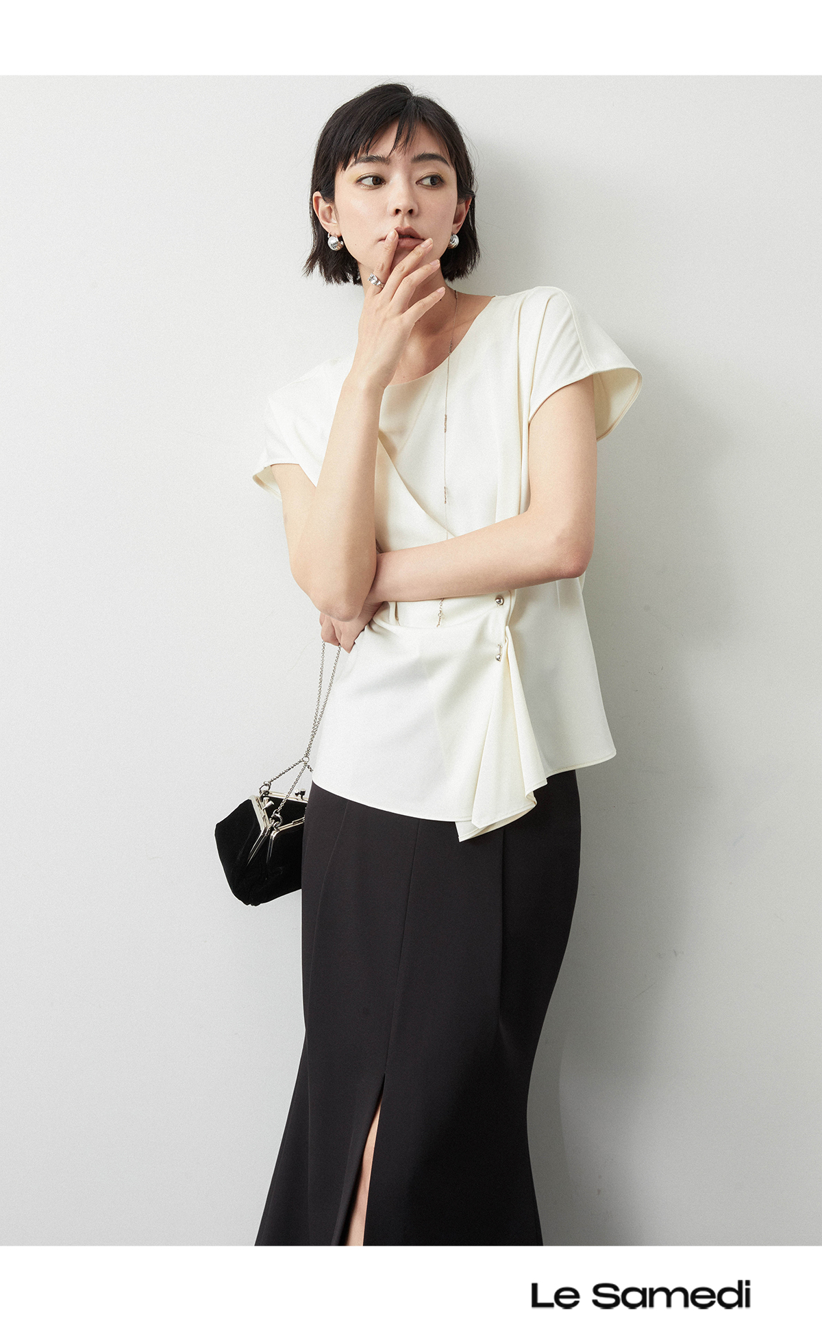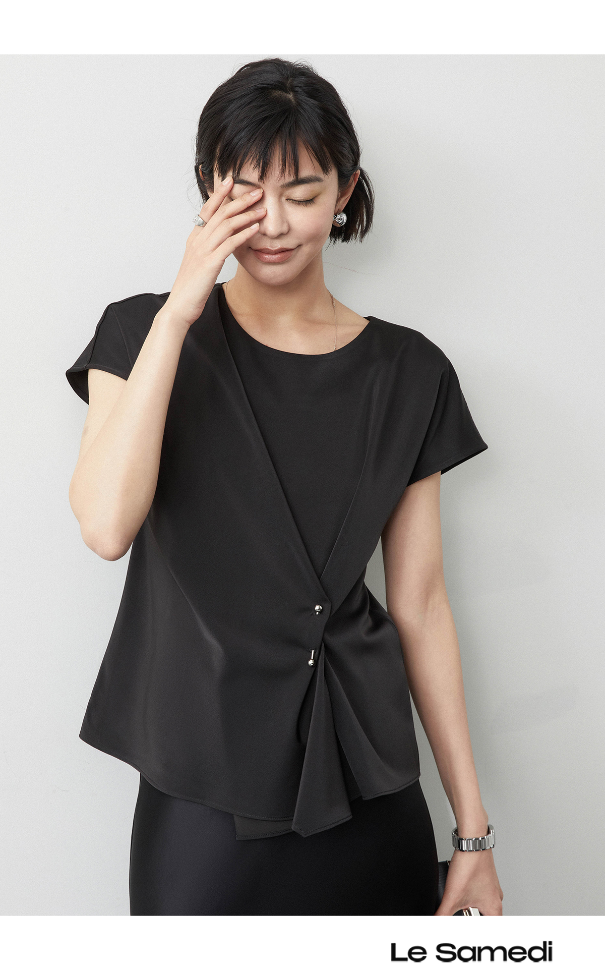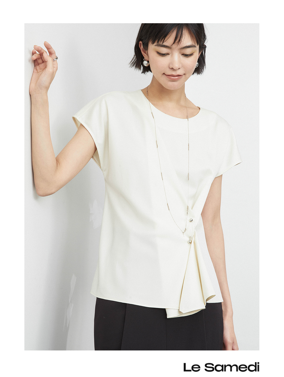 ASAYA2881 Love the elegant metal structure decorative buckle two-wear satin silk soft fashion short-sleeved top