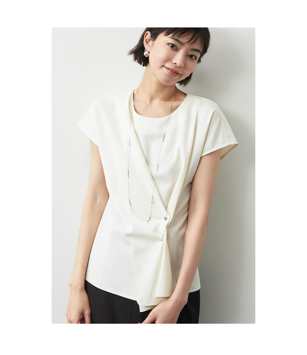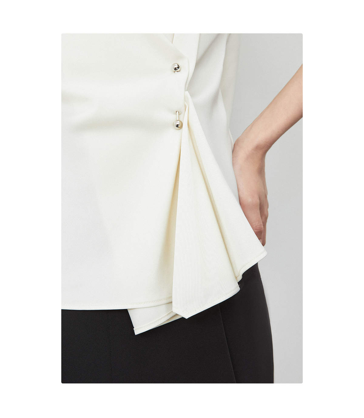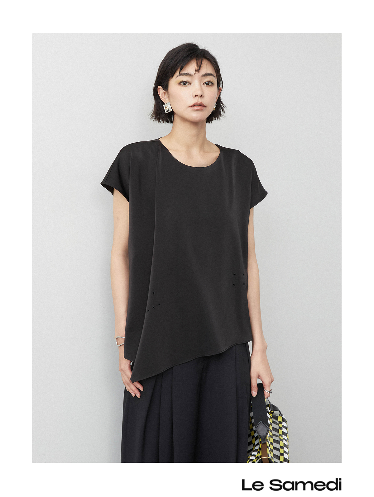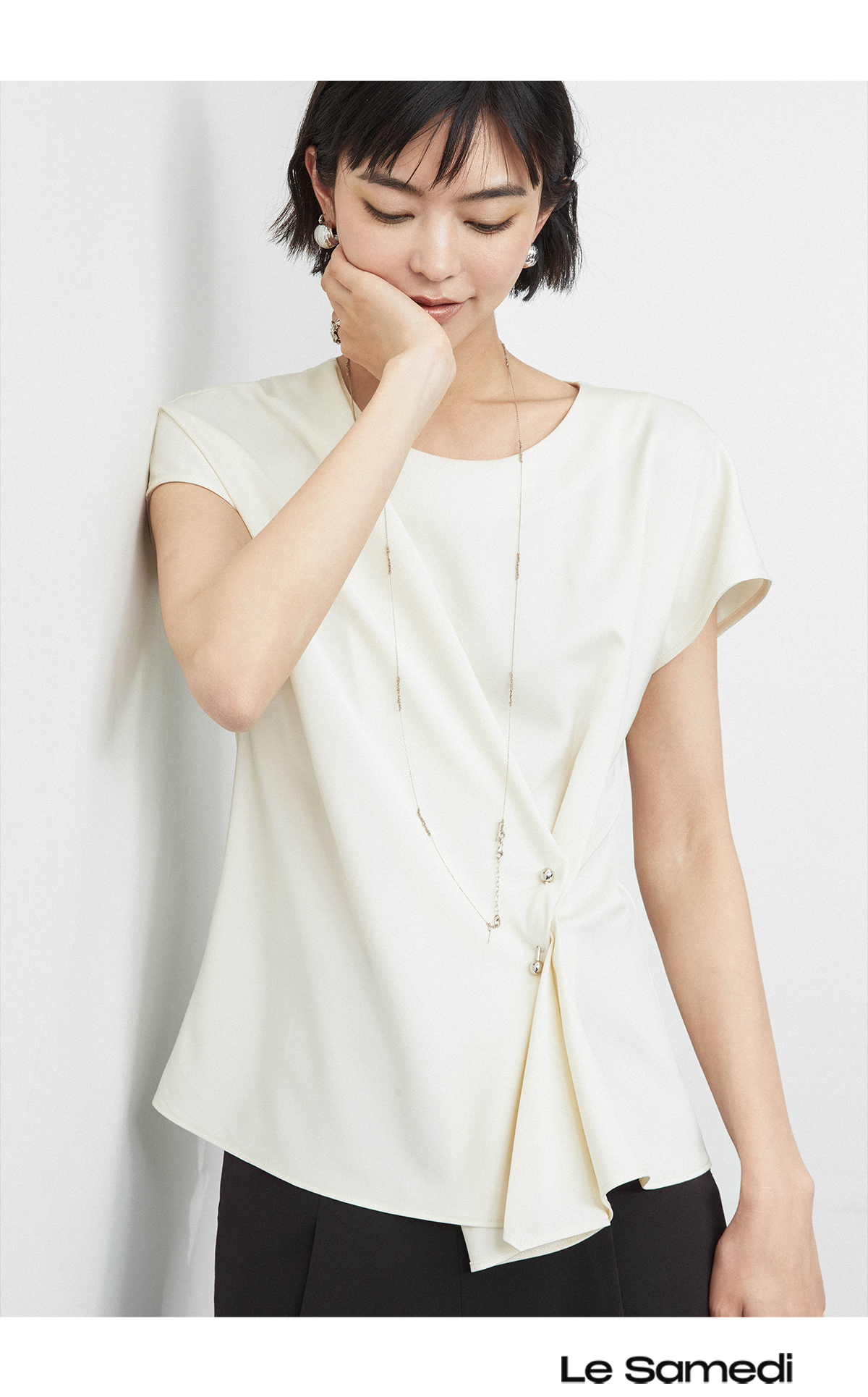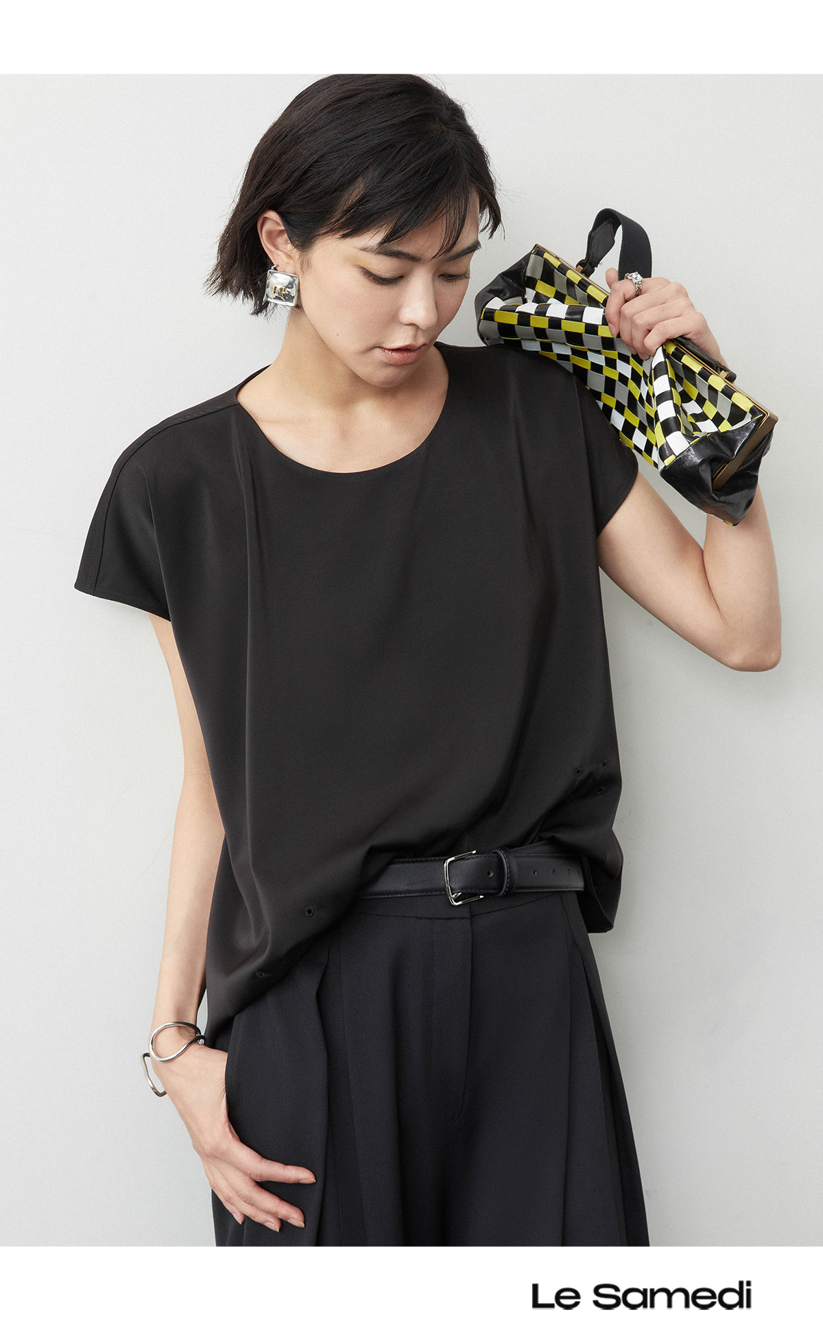 ASAYA2881 Love the elegant metal structure decorative buckle two-wear satin silk soft fashion short-sleeved top