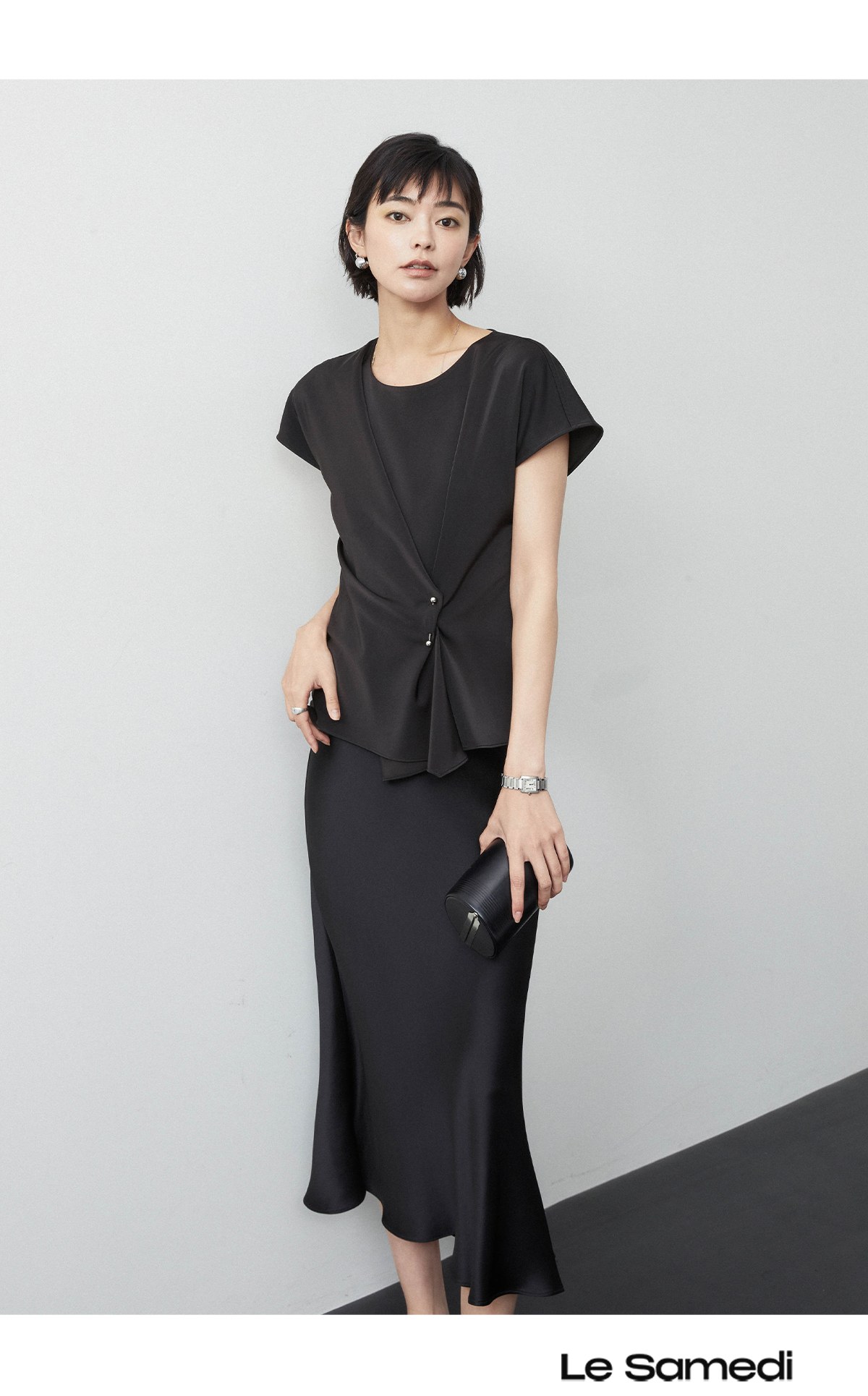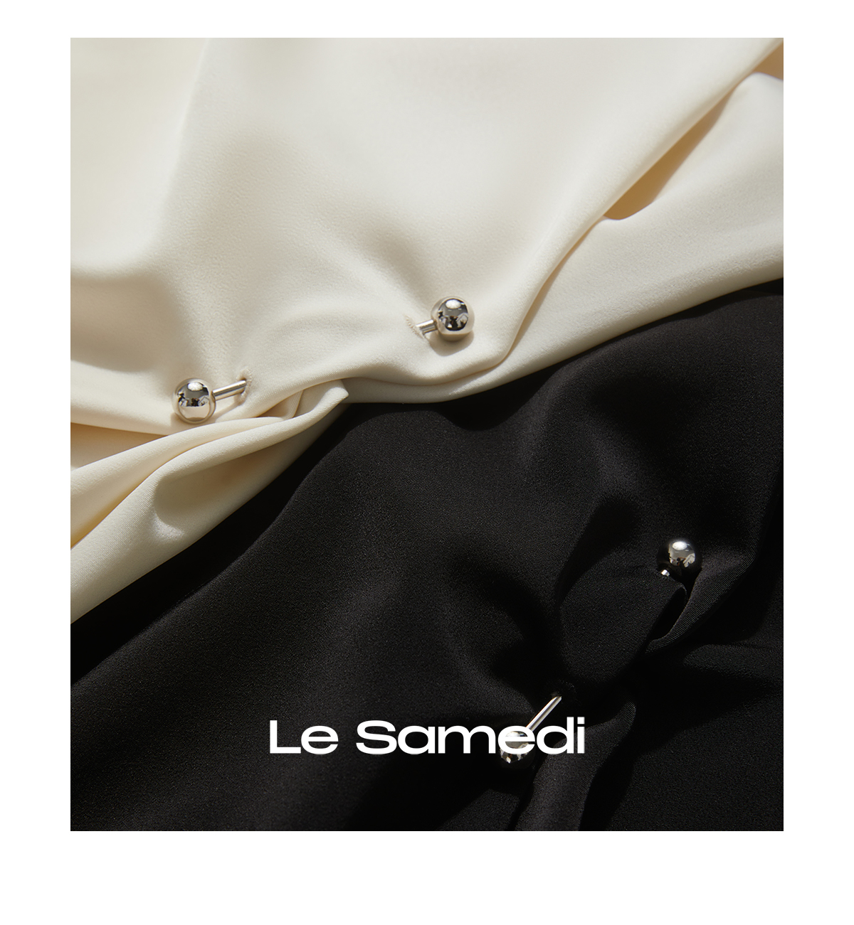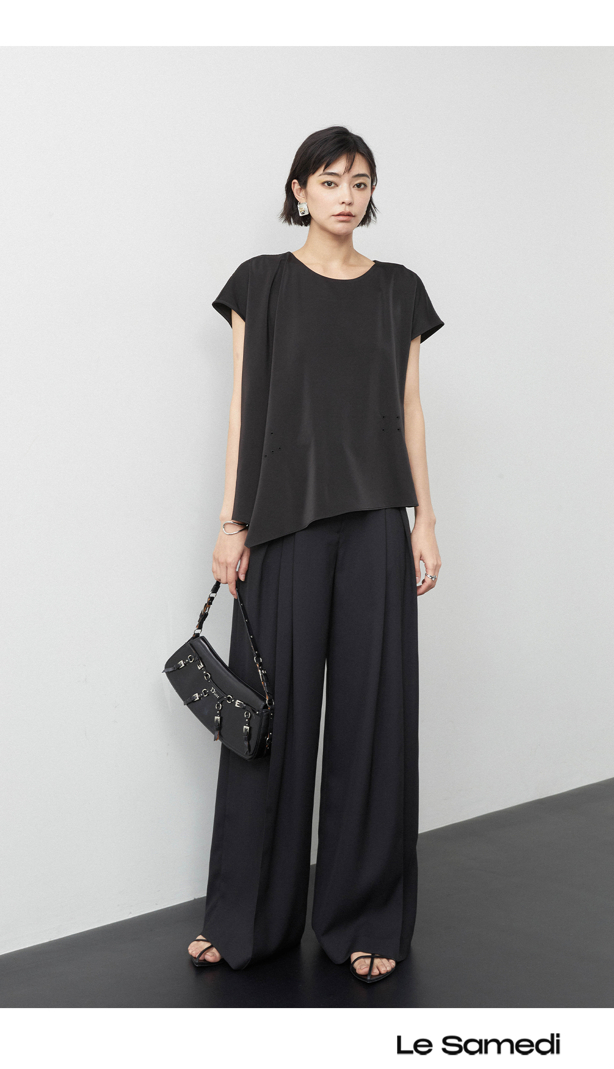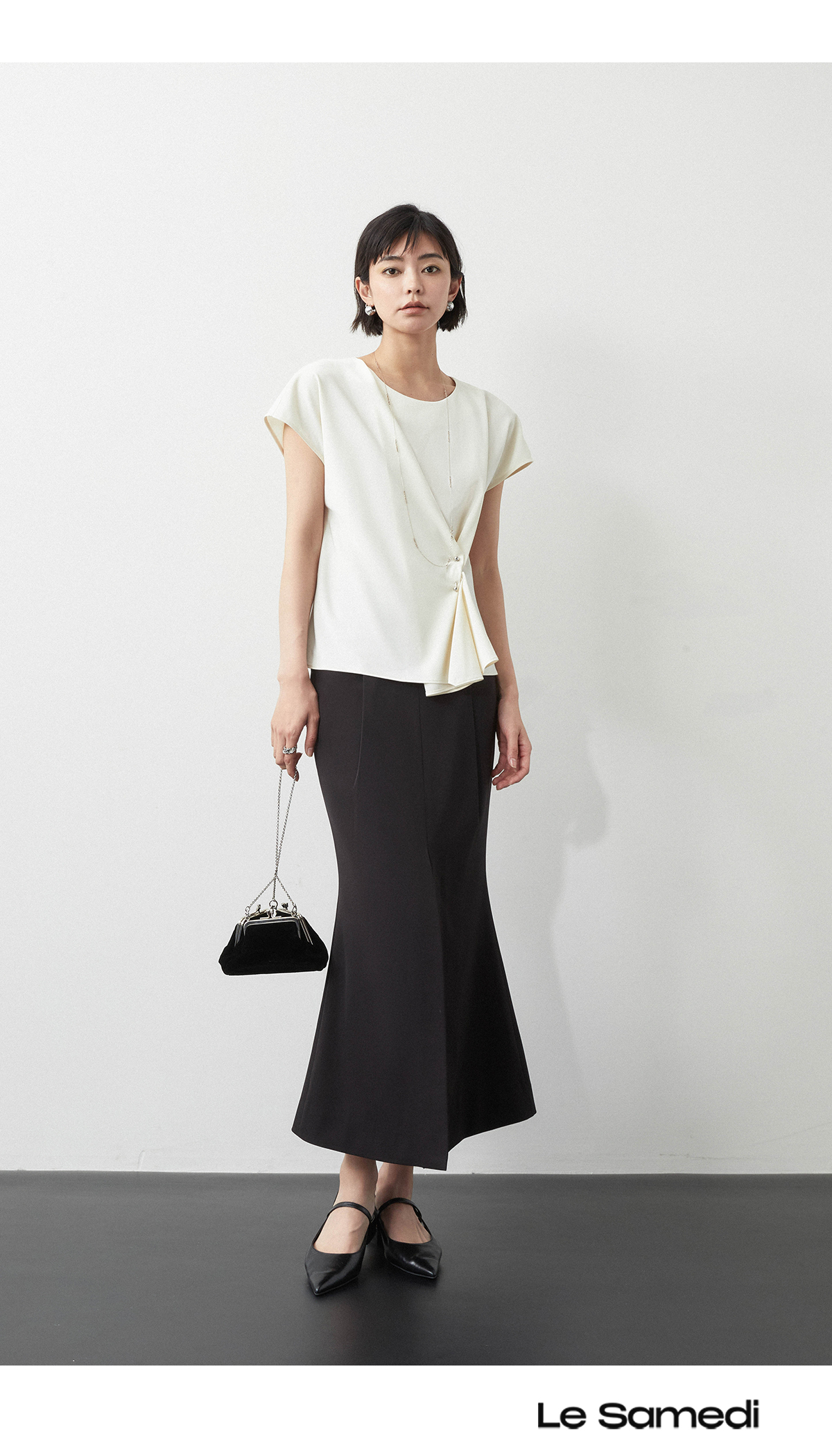 ASAYA2881 Love the elegant metal structure decorative buckle two-wear satin silk soft fashion short-sleeved top