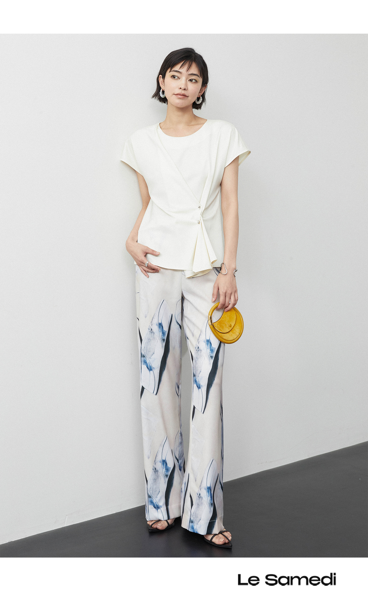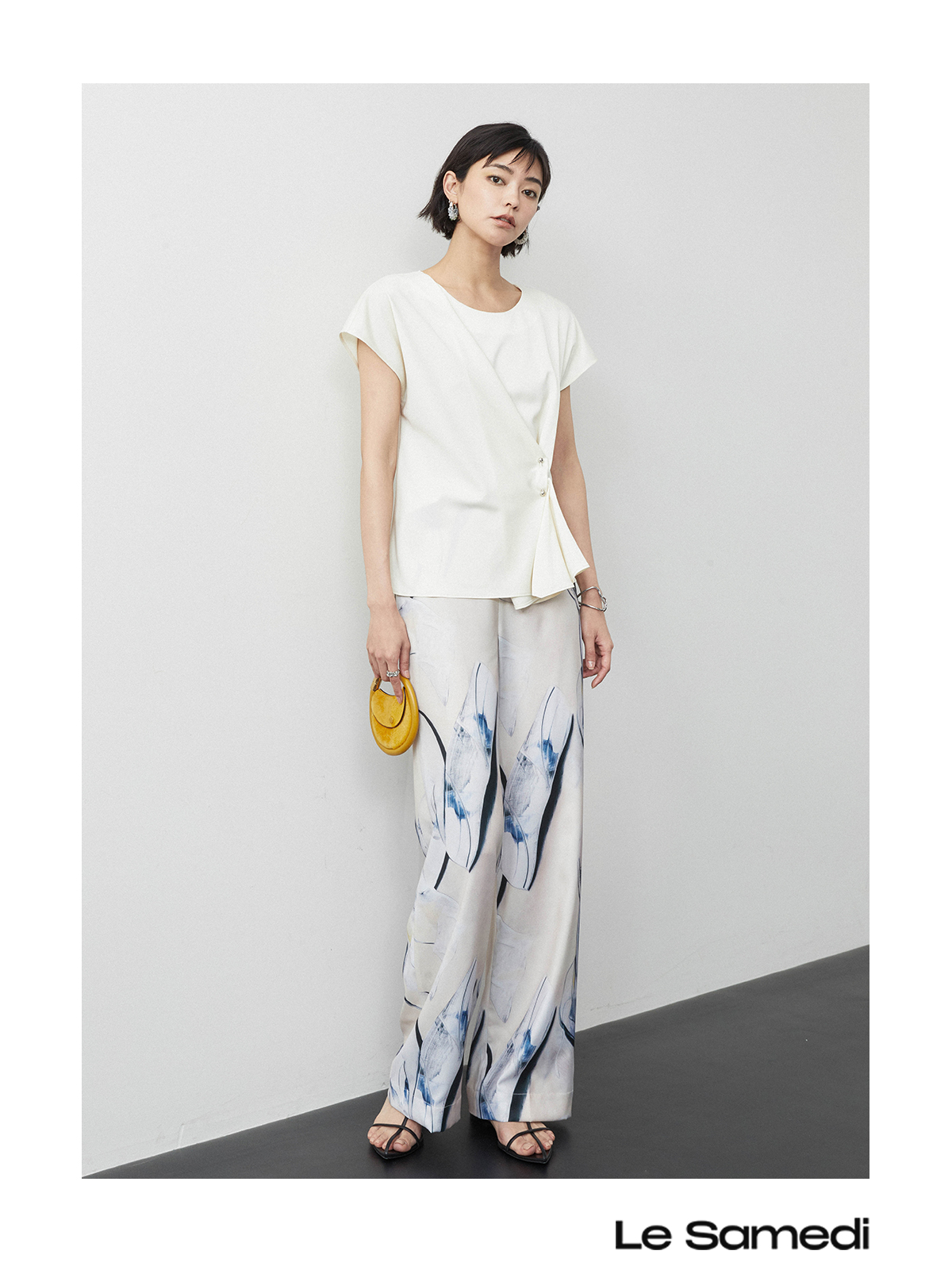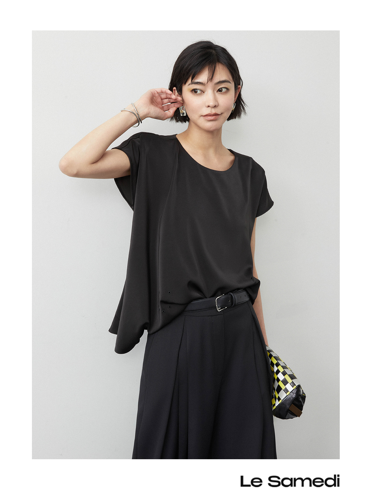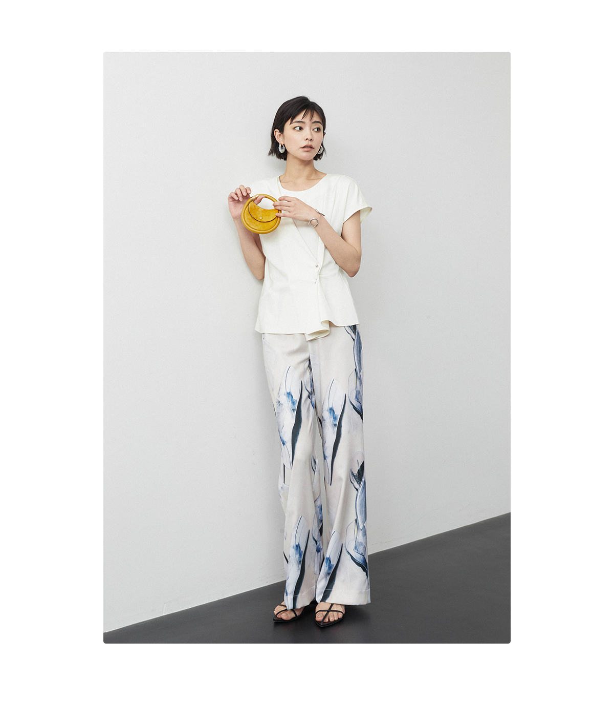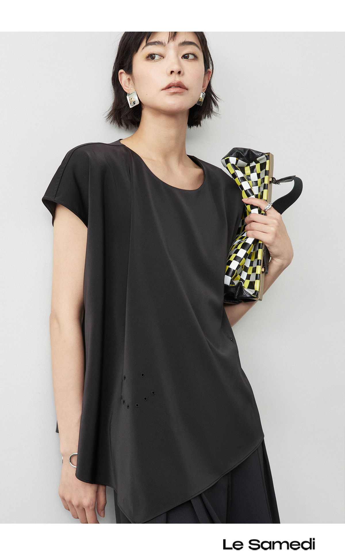 ASAYA2881 Love the elegant metal structure decorative buckle two-wear satin silk soft fashion short-sleeved top