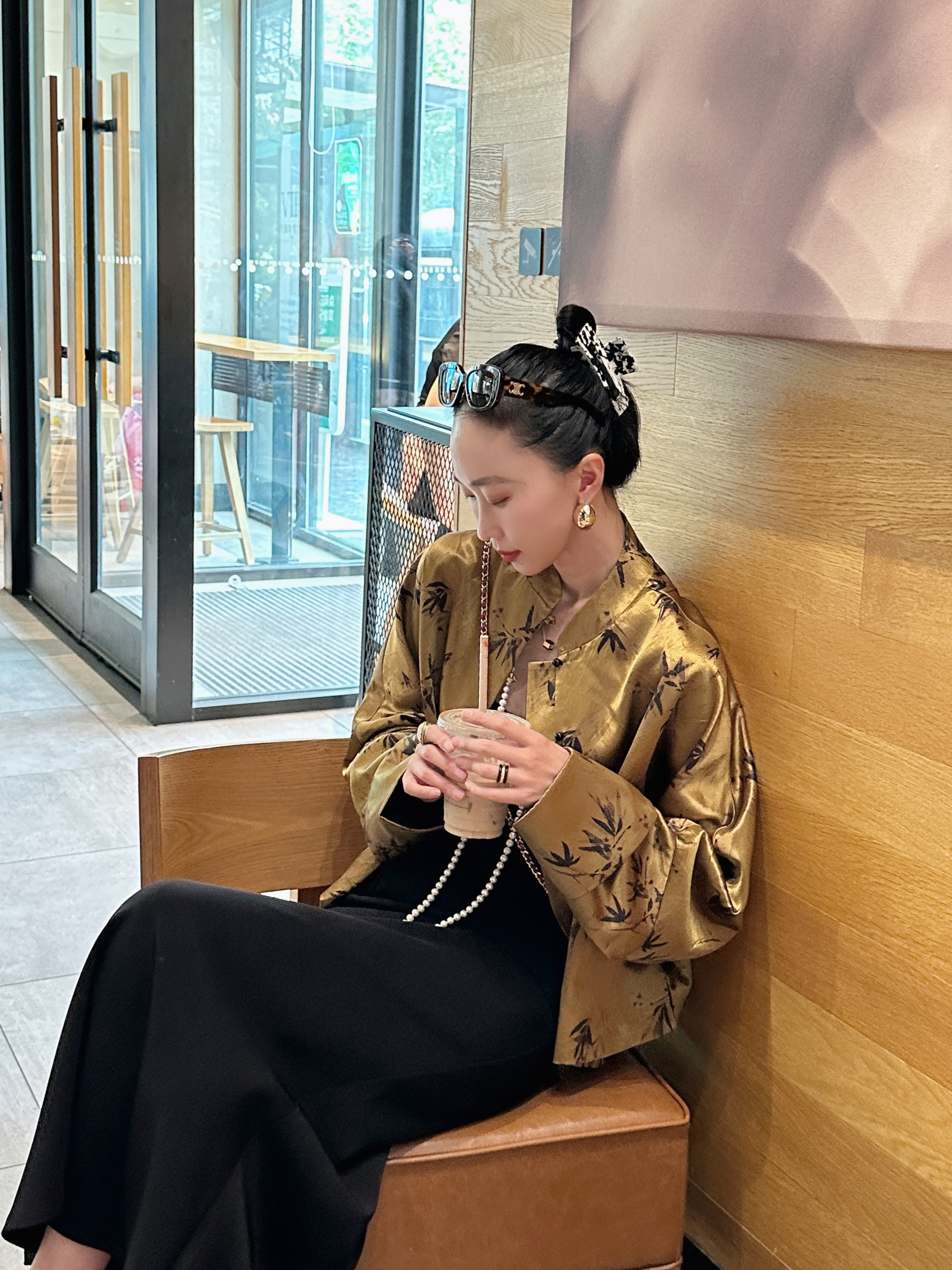 ASAYA2841 Leopard print high-end new Chinese style acetate loose coat