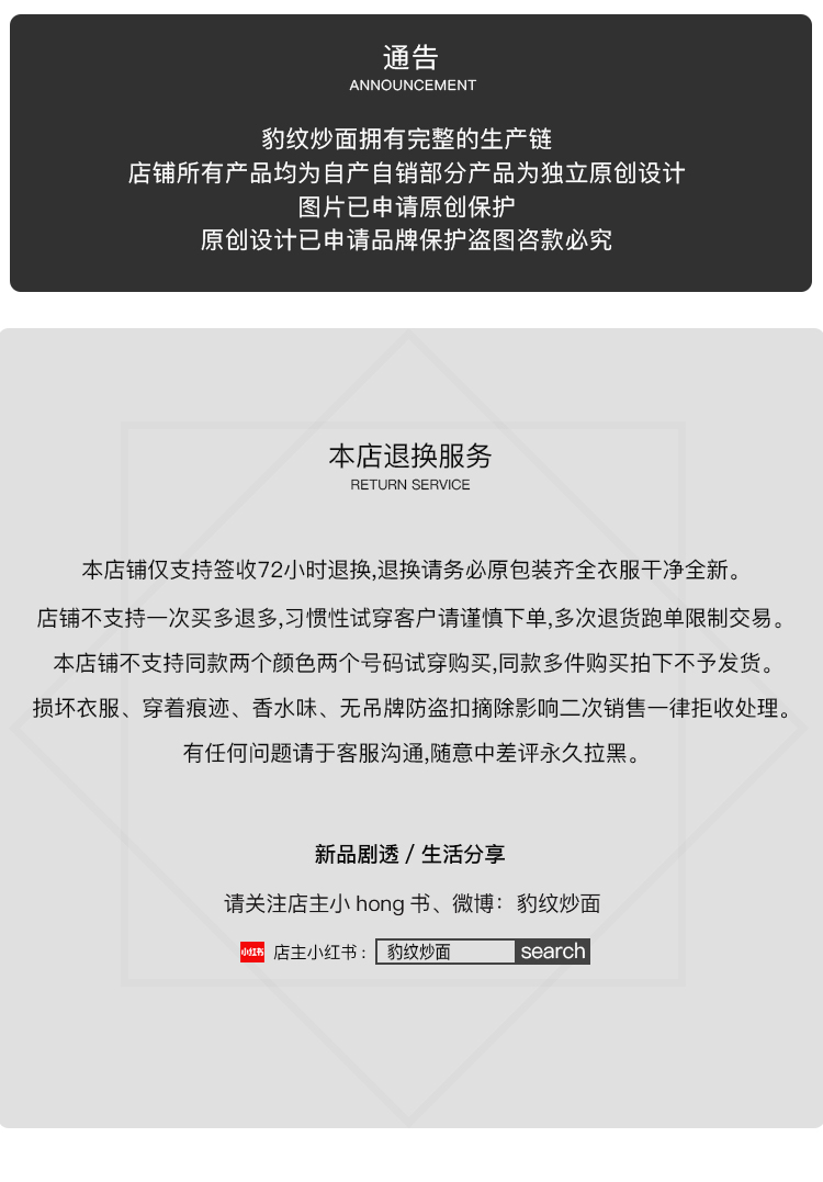 建议低温手洗,切勿用力搓洗,不可用力拧干,请勿暴晒 深色衣物与浅色衣物分开洗涤,避免染色串色,不可长时间浸泡 |
