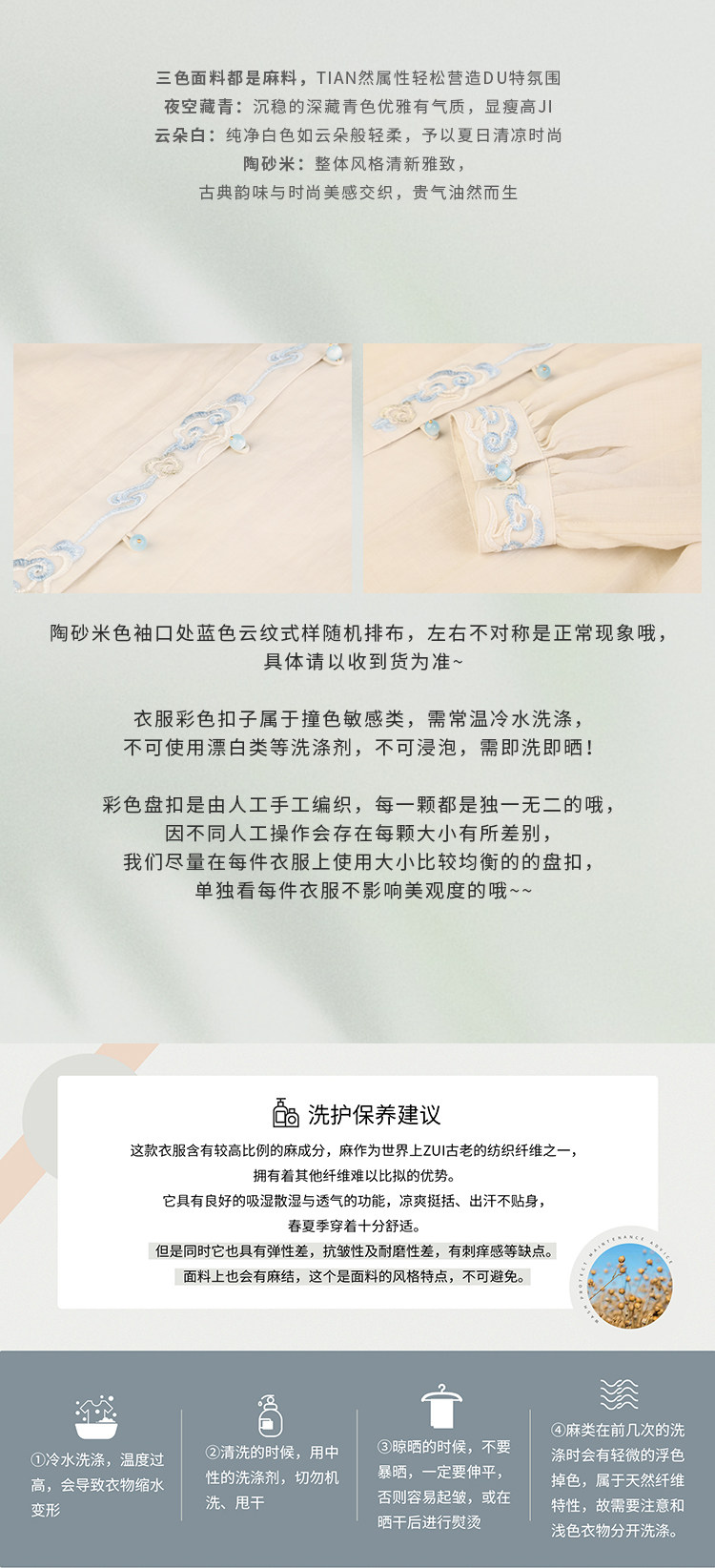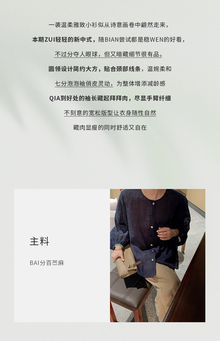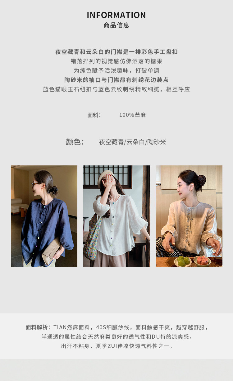 面料:100%苎麻