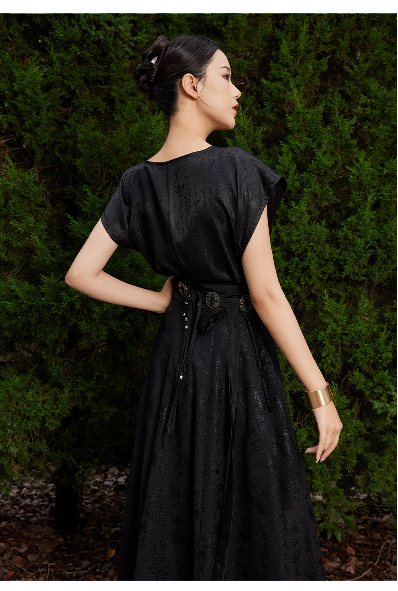 ASAYA3144 Xia Hanfu women’s improved Tangtan collar original commuting silk jacquard dress