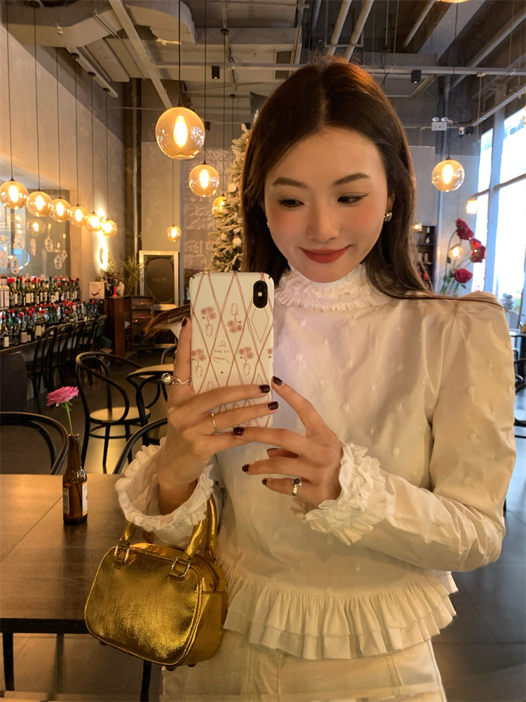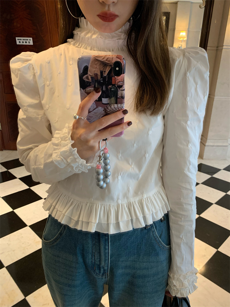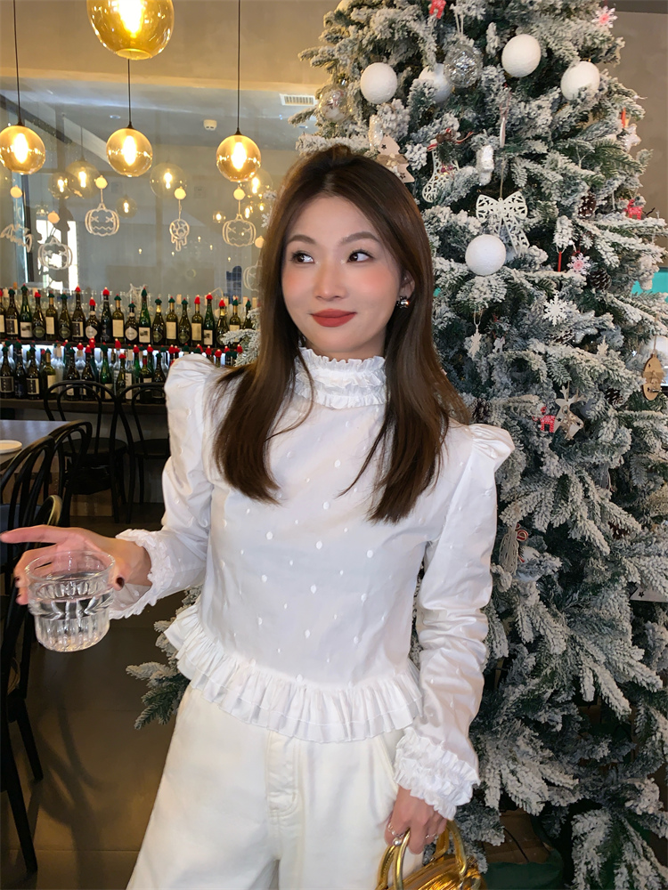 领口拼接双层花边的小立领设计,层层叠叠的立体造型,气质出尘脱俗!
