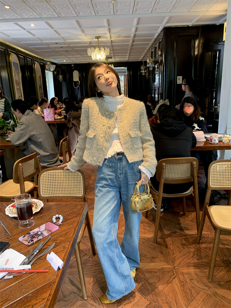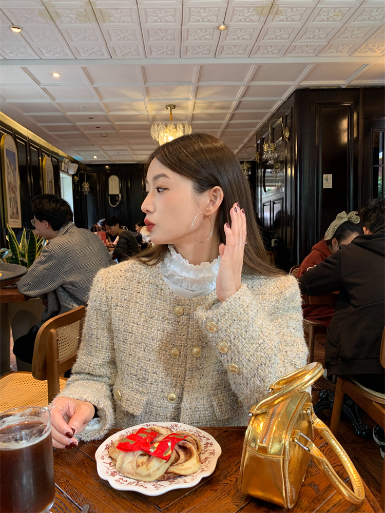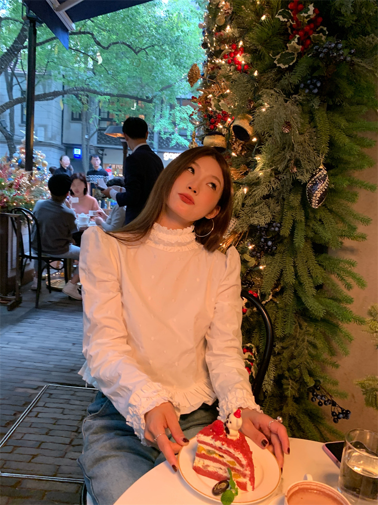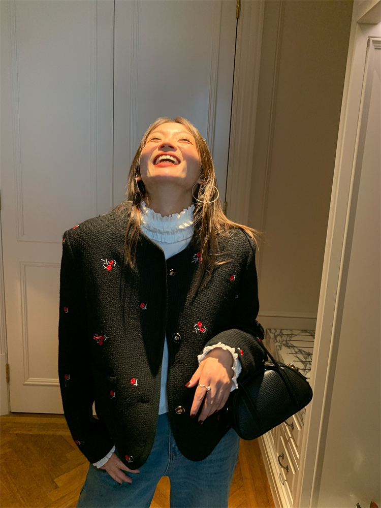 给人的DI一感觉就是财阀名媛feel,木耳边的拼接细节感很强,不费力又gao及~
